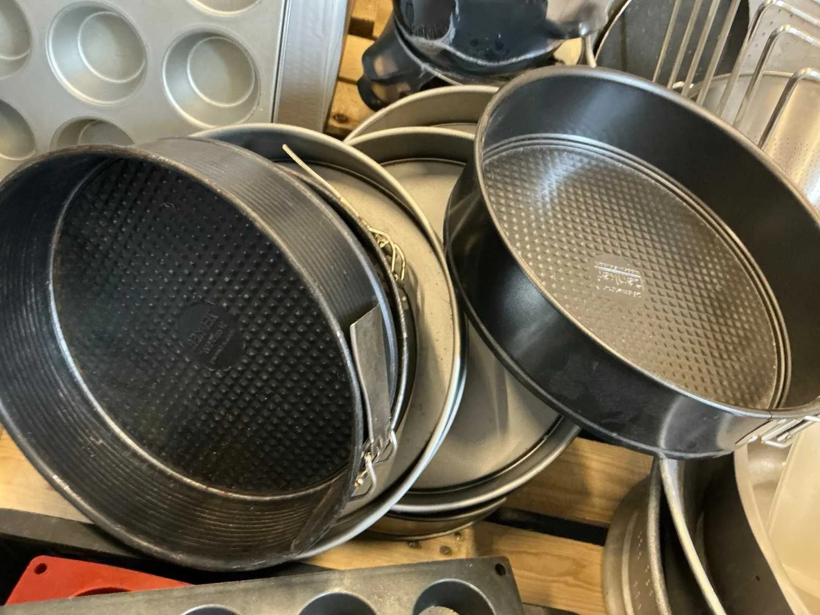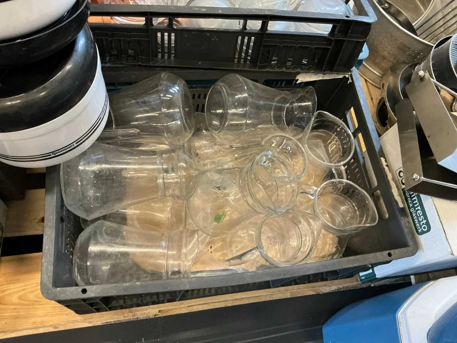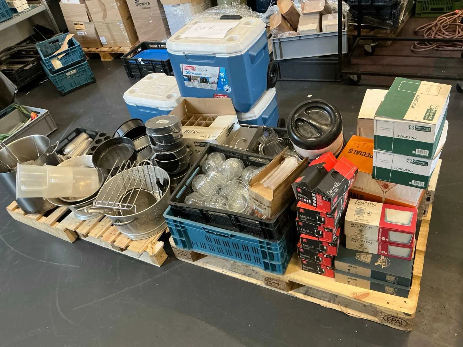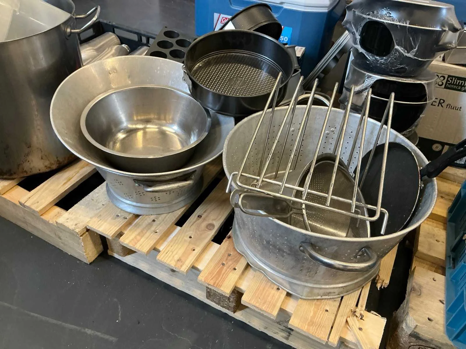 Diverse pannen, bakspullen, glaswerk, kannen etc.