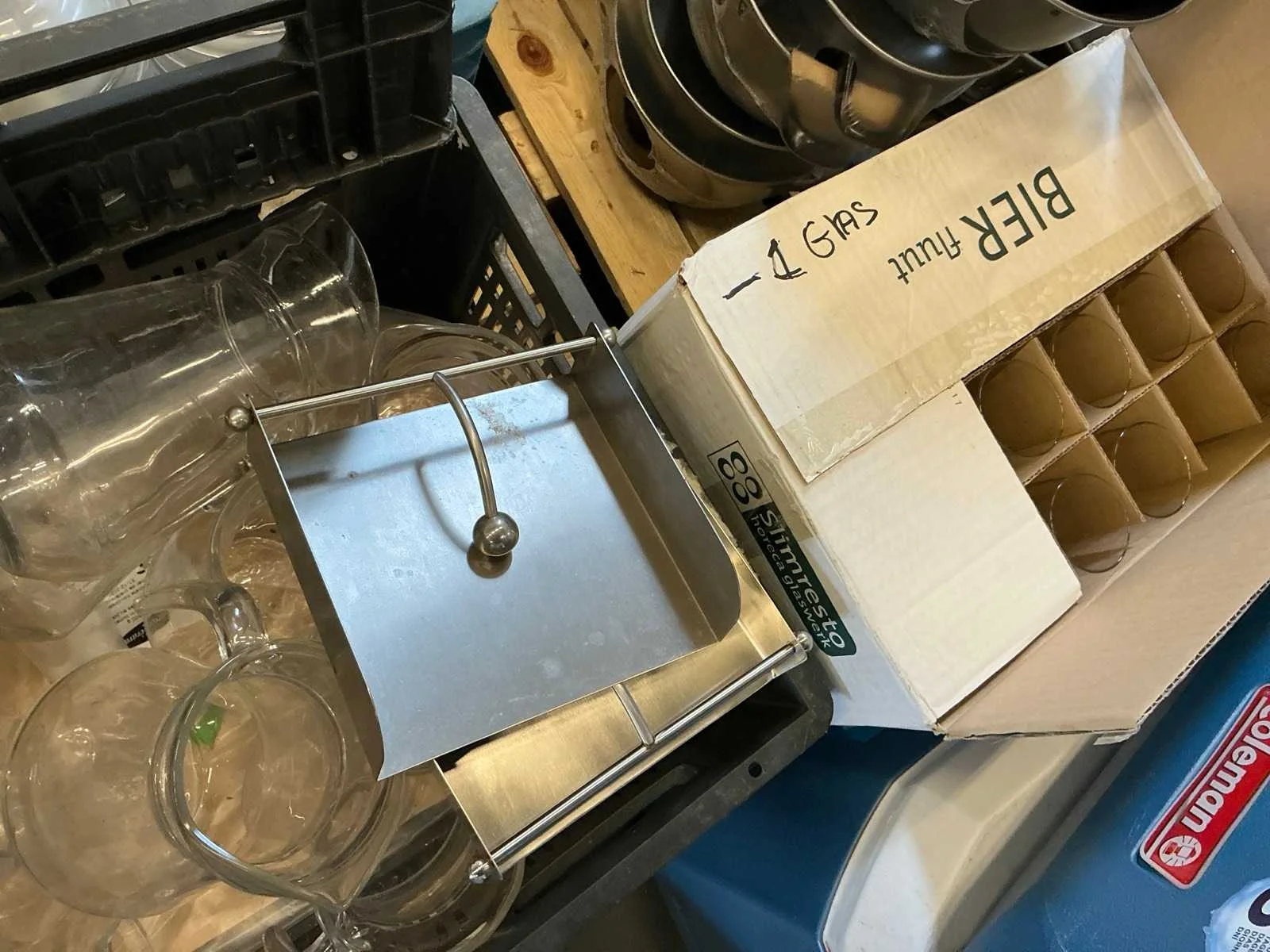 Voorzien van: diverse horeca pannen, mosselpannen, frietbakken, slagroomspuiten, koelboxen, bakspullen, glaswerk, flessen, keukengerei, servethouders, menukaarthouders Nee