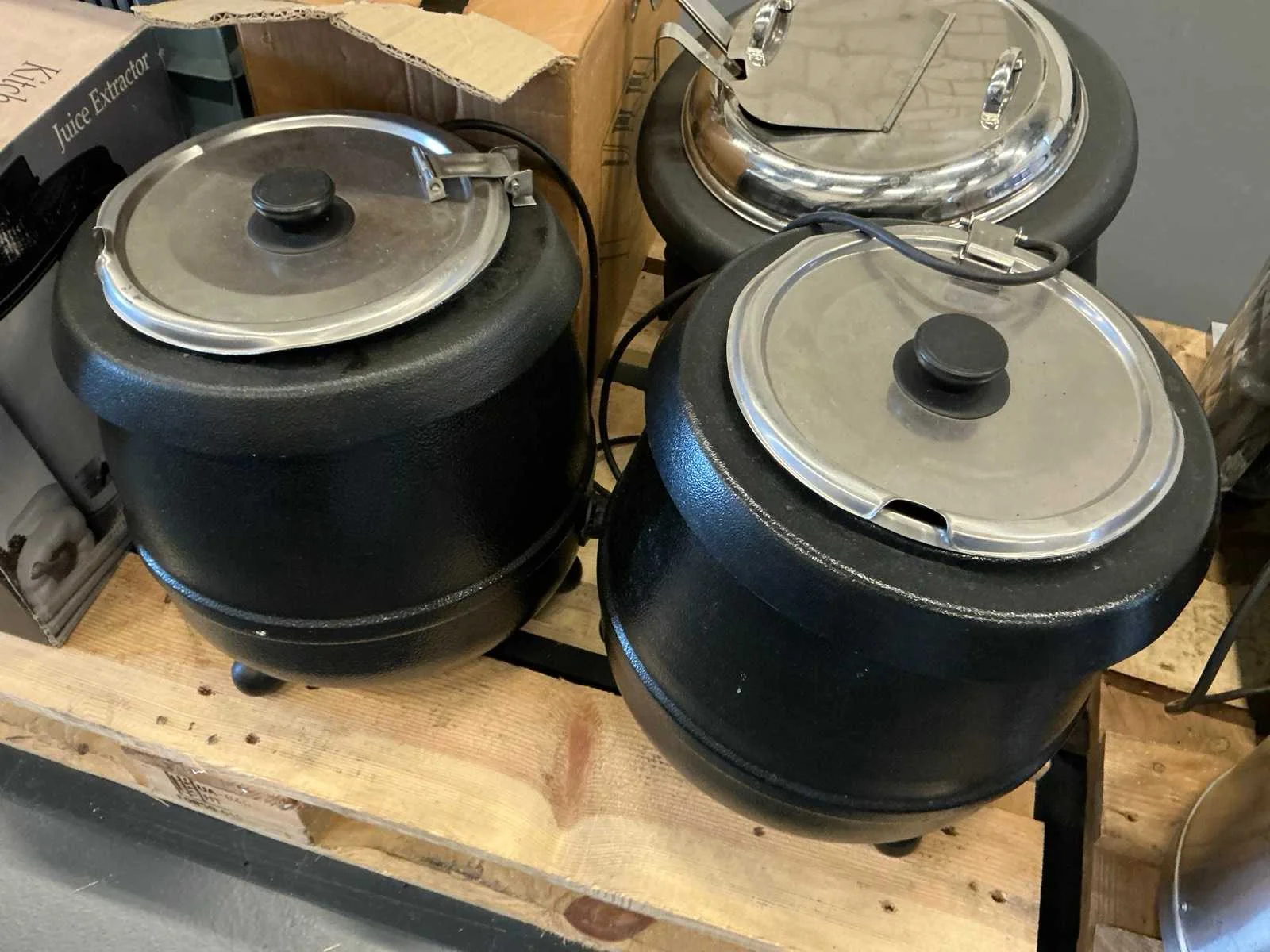Diverse koffiemachines en toebehoren, thermoskannen, juicer, soepketels, juicer, broodrooster usa