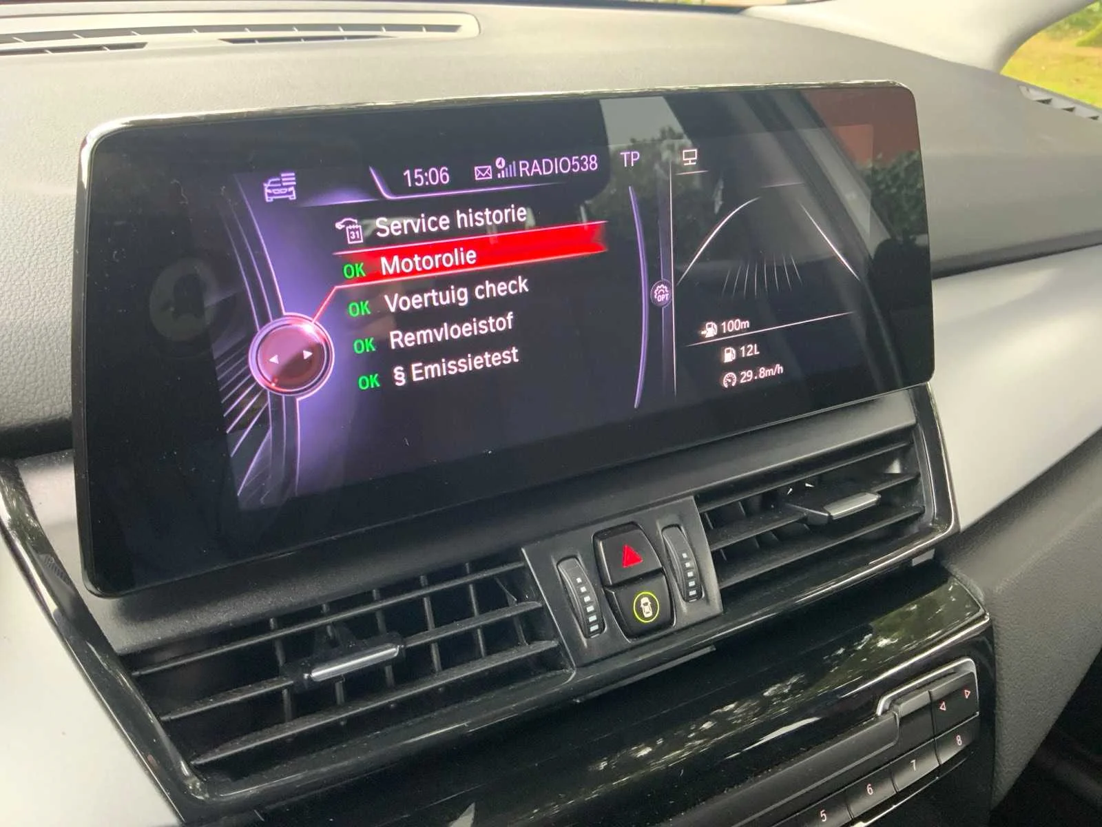 De auto is voorzien van cruisecontrol, LED verlichting, elektrisch inklapbare buitenspiegels, vernieuwd scherm met CarPlay (originele scherm los meegeleverd en kan terug geplaatst worden), parkeersensoren rondom, achteruitrijcamera, start / stop knop, automatische verlichting, afneembare trekhaak, stoffen bekleding, multifunctioneel stuurwiel, regensensor, isofix, in delen neerklapbare achterbank, wifi, Bluetooth, All Season Banden (2024) koppeling is onlangs vervangen (documentatie aanwezig), geblindeerde ramen achter, climate control Nee Kenteken: Z-005-RZ Merk: BMW Model: 2-serie Active Tourer Bouwjaar: 2017 Afgelezen kilometerstand: 181425km Cilinderinhoud: 1499cc Vermogen (kW): 100kW Brandstof: benzine Chassisnummer: WBA2A31040V854754 Datum eerste toelating: 2017-09-22 Datum eerste toelating (NL): 2024-06-21 APK vervaldatum: 2026-06-21 Vermogen (pk): 136hp Aandrijving: FWD Aantal zitplaatsen: 5 Maximaal trekgewicht ongeremd: 695kg Maximaal trekgewicht geremd: 1300kg Kleur: Wit Transmissie: Handgeschakeld Stuurwiel: Links multifunctioneel Emissieklasse: 6 Aantal deuren: 4 Aantal sleutels: 2 Ledig gewicht: 1315kg Velgmaat: 215/55R16 Bruto BPM (NL): 423€ Rest BPM: 99€ Aantal cilinders: 3 Carrosserie: Stationwagen Nationaliteit documenten: Nederlands Onderhoudshistorie: Gedeeltelijk aanwezig Carfax Link: https://was.carfax.eu/v0/api/ccdid/5100016408/svc/201/vinreg/Z005RZ/checksum/eyJhbGciOiJIUzI1NiIsInR5cCI6IkpXVCJ9.eyJleHAiOjE3NjI3MTY3Nzd9.Gv7P_-1UIv8bOFxNmpBXS2osgjUt20Se7HOg6sUXUGM Start en rijdt: Ja startinformatie : Start naar behoren Zichtbare schade: Krassen in lak links * armsteun blijft niet omhoog staan Self drive export possible : true Airconditioning: true