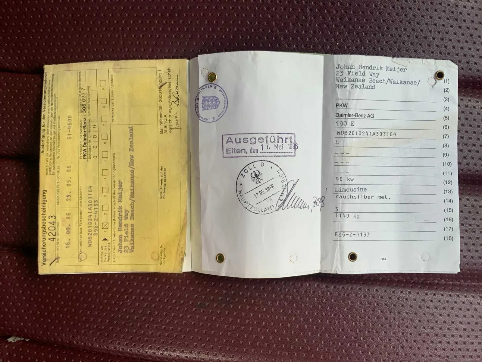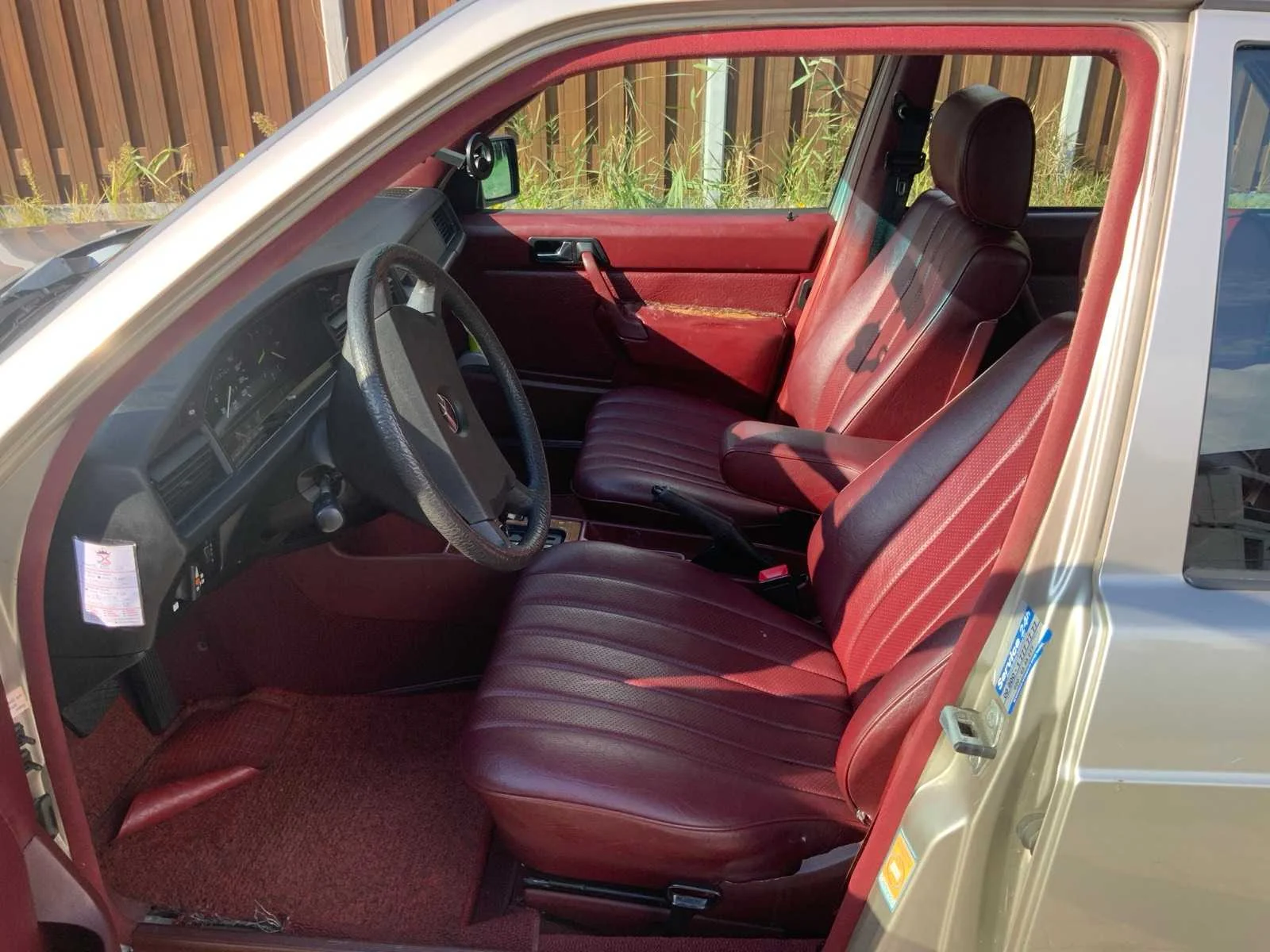Gebruikerssporen naar leeftijd en kilometerstand * lakschade / roestplek links achter * roestplek rechts achter wielkas * verwering lak op dak en motorkap * scheur in leder rechter deur * diverse drukknoppen en schakelaars hangen los zoals de bedieningsknoppen elektrische ramen * onderhouds historie gedeeltelijk aanwezig * wordt nog minimaal mee gereden Nee Kenteken: RP-03-KV Merk: Mercedes-benz Type: 190E Bouwjaar: 1986 Chassisnummer: WBD2010241A303104 Afgelezen kilometerstand: 208749 Brandstof: benzine Datum eerste toelating: 1986-06-30 Datum eerste toelating (NL): 1987-11-03 APK vervaldatum: 2026-10-03 Nationaliteit documenten: Nederlands Kentekenpapieren compleet?: true Carrosserie: Limousine Aandrijving: RWD Transmissie: Automaat Vermogen (kW): 90kW Aantal deuren: 4 Aantal zitplaatsen: 4 Stuurwiel: Links Velgmaat: 185/65R15 Aantal sleutels: 1 Accessoires - checkbox: Rood lederen bekleding * voorzien van originele boekjes en documentatie * voorzien van originele radio (los meegeleverd * elektrische bedienbare ramen * airco Startinformatie: Start en rijdt naar behoren Kleur: beige Cilinderinhoud: 2000 Aantal cilinders: 4 Ledig gewicht: 1097