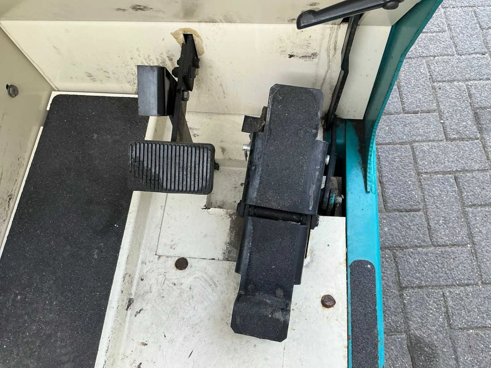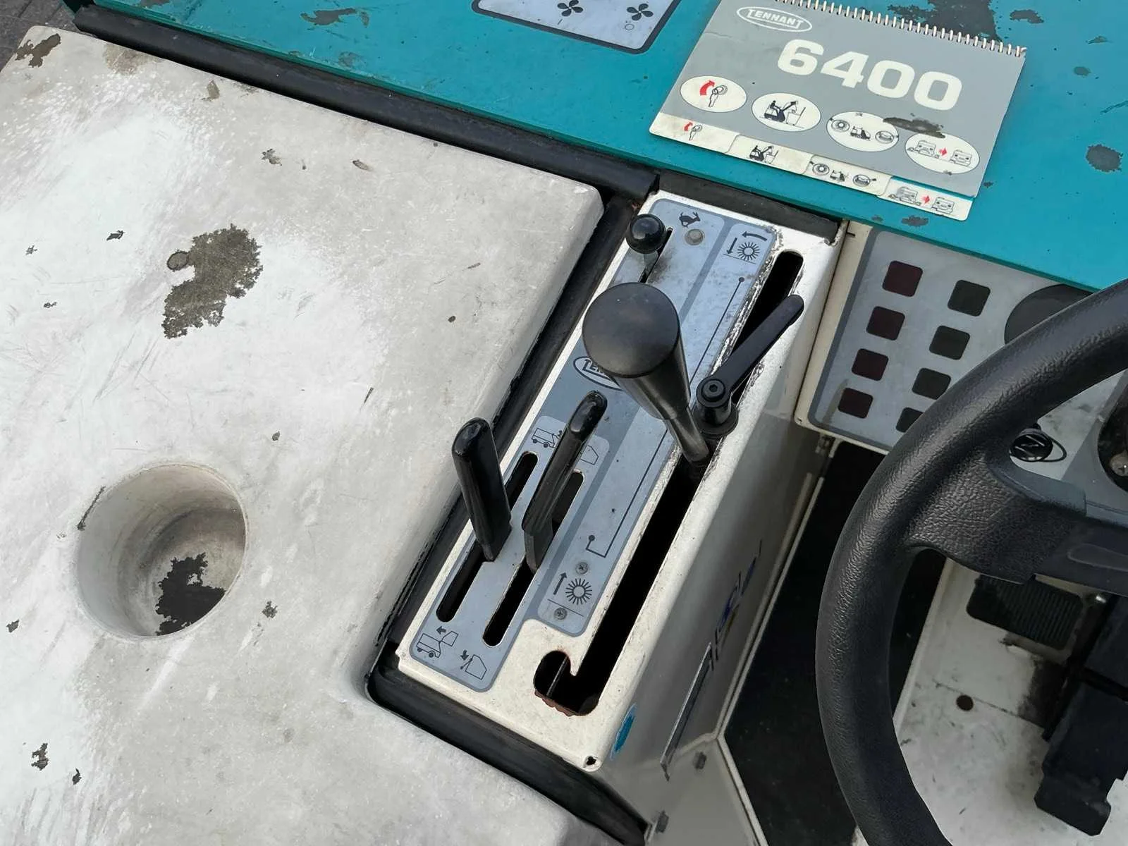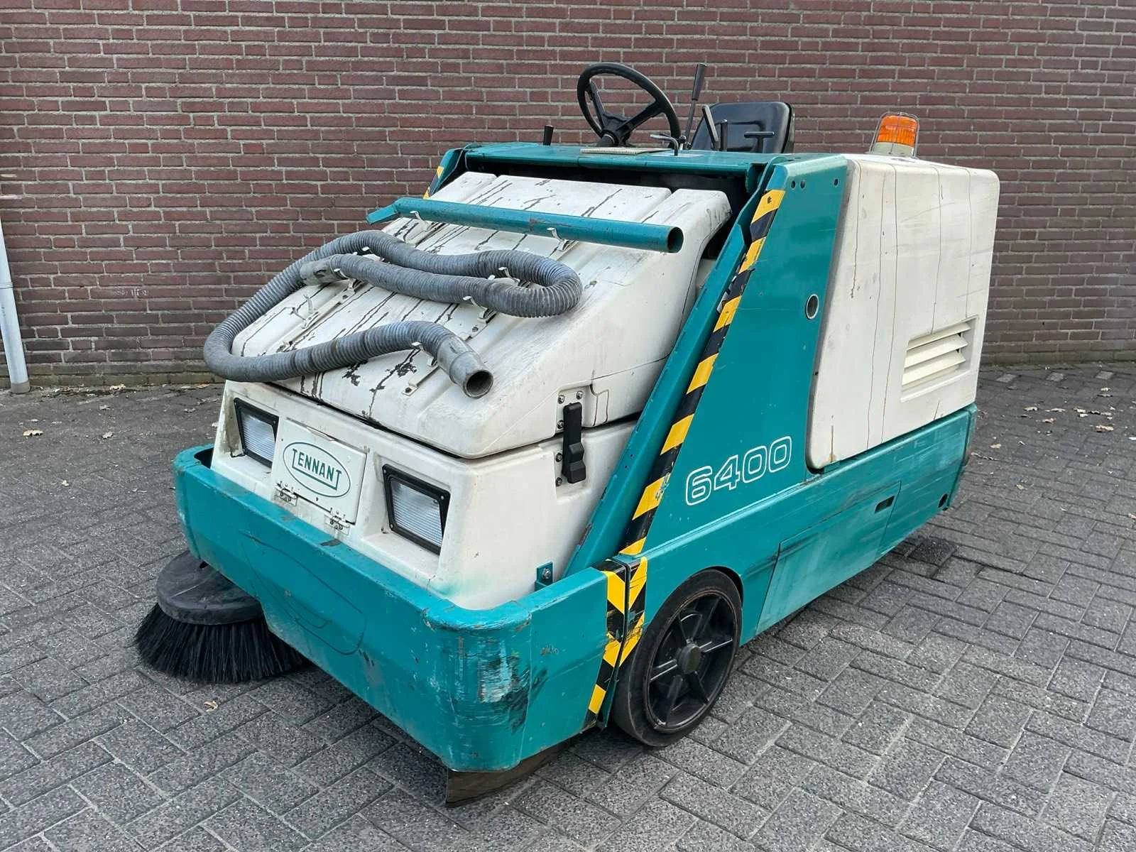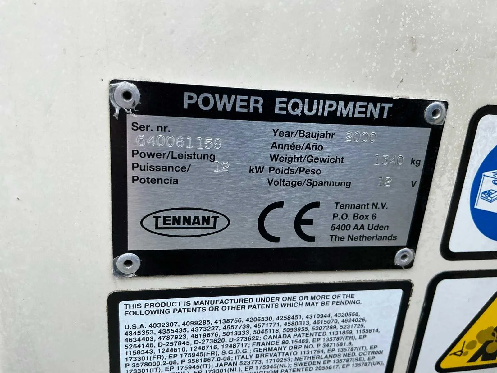 Aandrijving: LPG, veegmachine is zonder gastank. Nee Merk: Tennant Type: 6400 Bouwjaar: 2000 Serienummer: 640061159 Werkbreedte: 1300mm Afgelezen urenstand: 654hr Eigen gewicht: 1340kg Totale afmeting L: 2200mm Totale afmeting Breedte: 1300mm Totale afmeting Hoogte: 1500mm