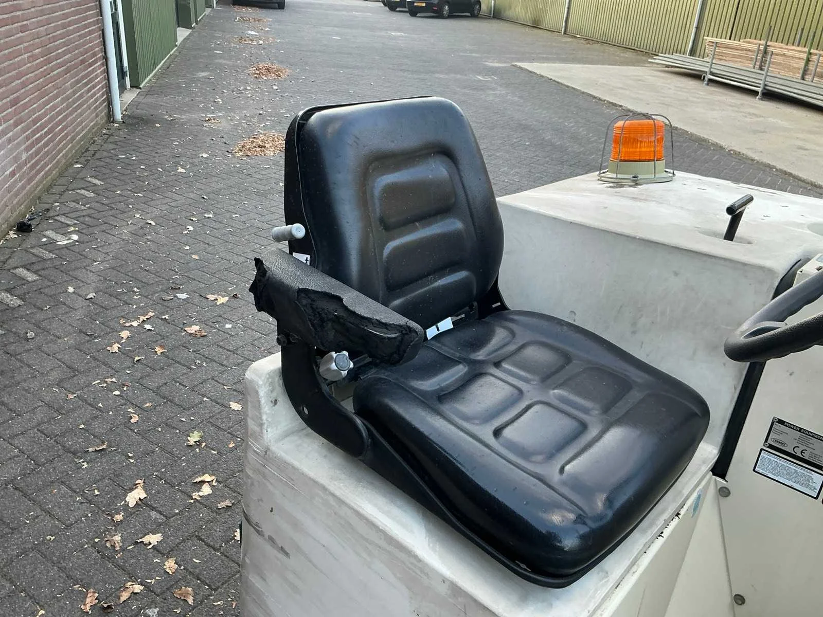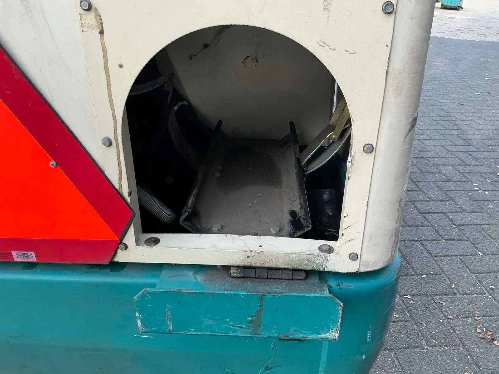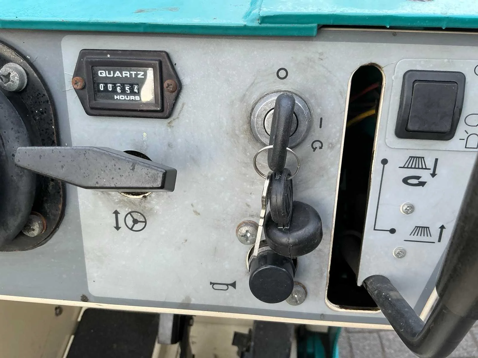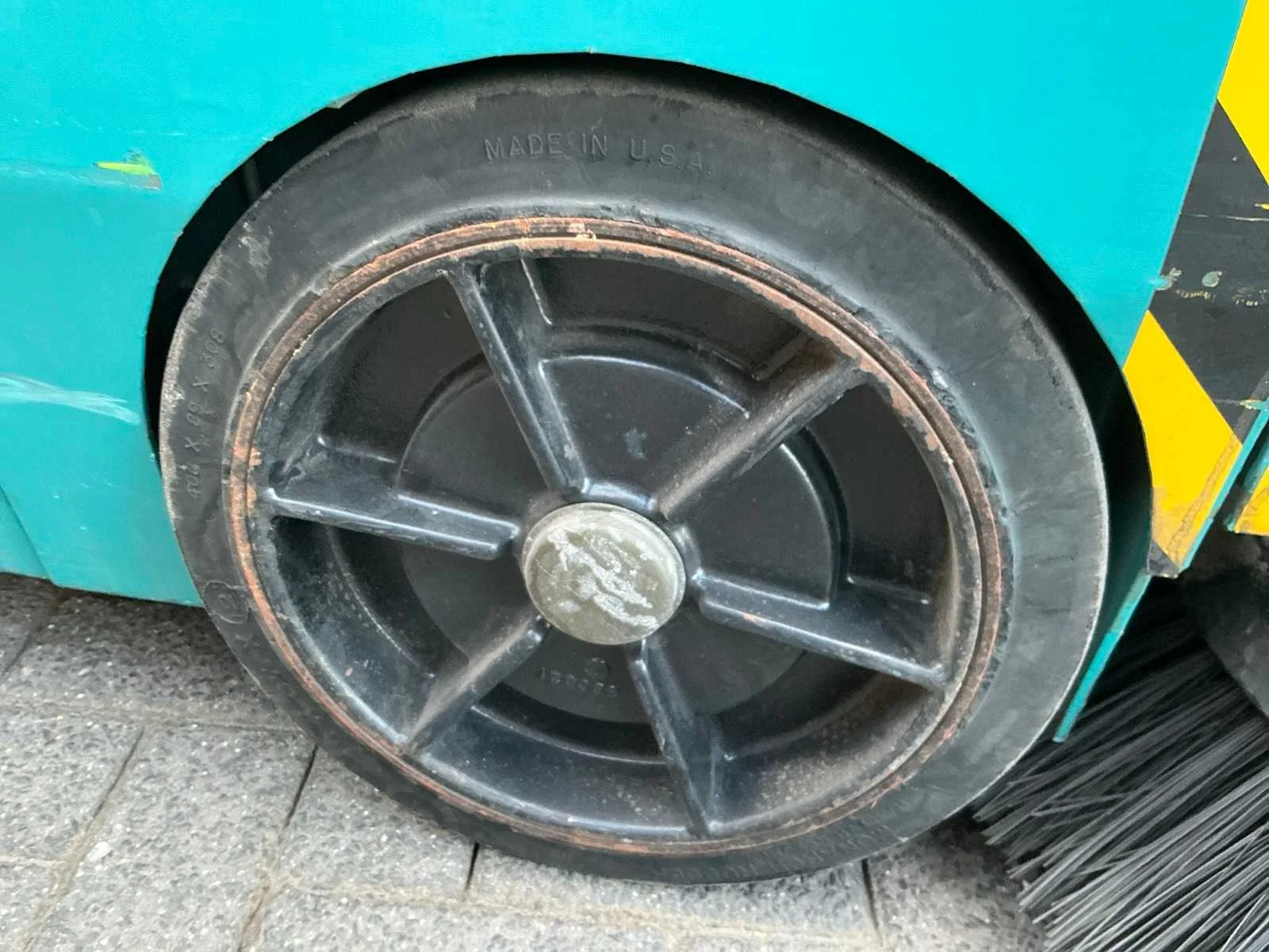 Aandrijving: LPG, veegmachine is zonder gastank. Nee Merk: Tennant Type: 6400 Bouwjaar: 2000 Serienummer: 640061159 Werkbreedte: 1300mm Afgelezen urenstand: 654hr Eigen gewicht: 1340kg Totale afmeting L: 2200mm Totale afmeting Breedte: 1300mm Totale afmeting Hoogte: 1500mm