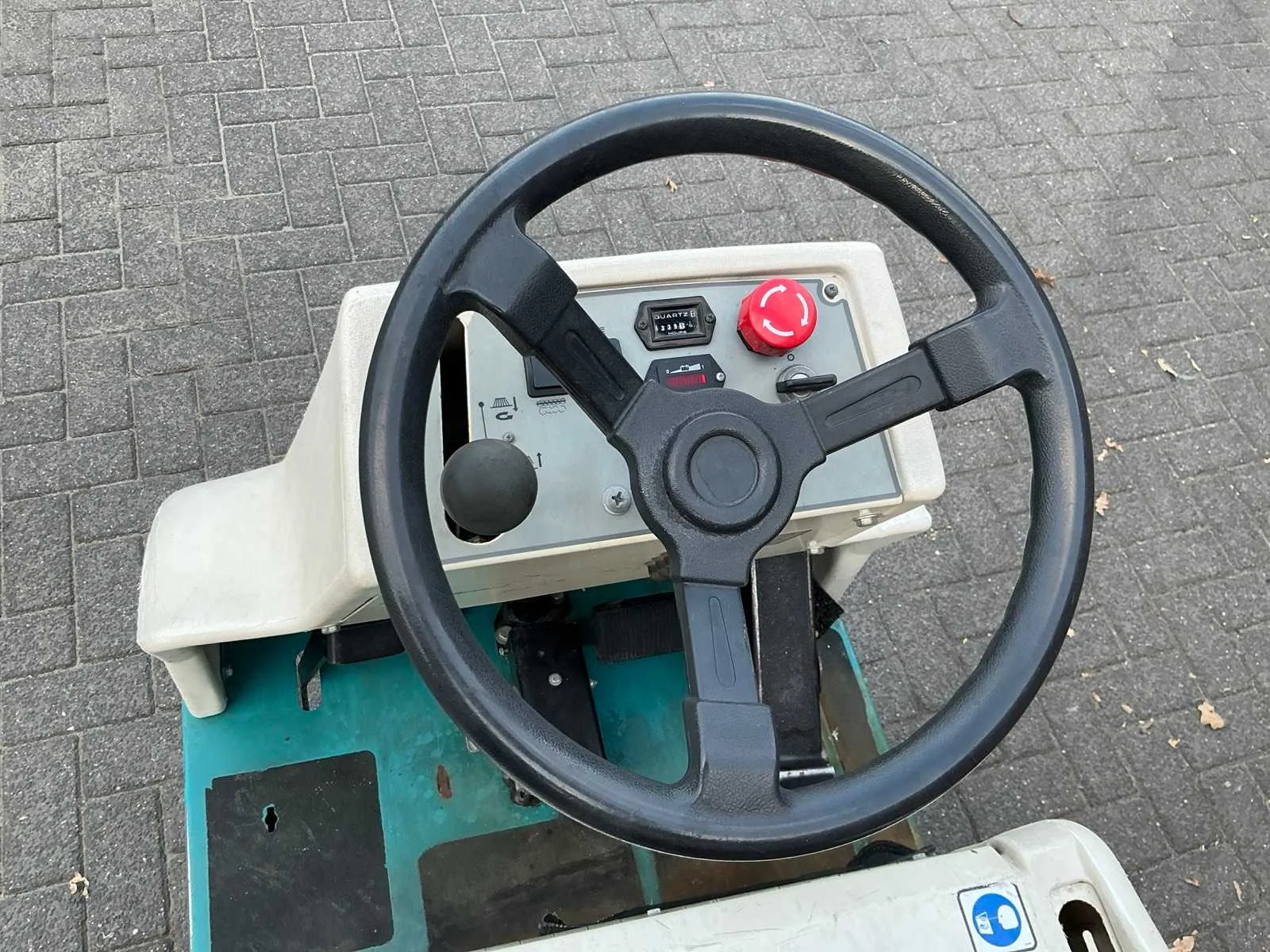 Rolrubber dient vervangen te worden. Nee Merk: Tennant Type: 6100 Bouwjaar: 2006 Serienummer: 61005001072 Werkbreedte: 800mm Elektrisch: true Afgelezen urenstand: 1339hr Accu lader: true Eigen gewicht: 460kg Totale afmeting L: 1600mm Totale afmeting Breedte: 800mm Totale afmeting Hoogte: 1300mm
