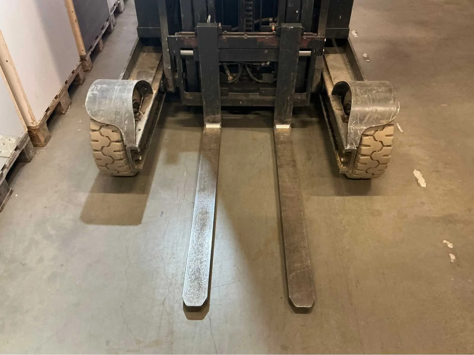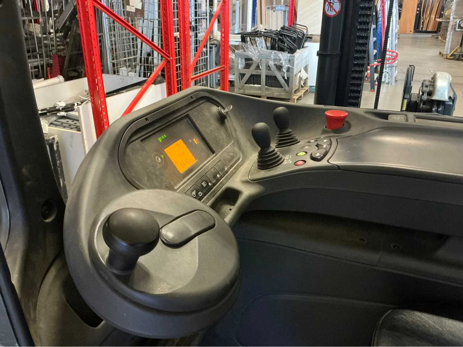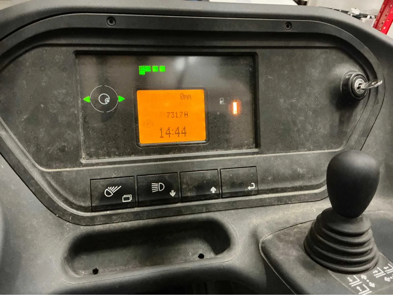 Automatisch luchtkussen met weegoptie. Automatische en optionele manuele verlichting. Verstelbaar dashboard. LCD display voor hoogtemeting. Veiligheidslicht inbegrepen. Nee Merk: Linde Type: R14 Bouwjaar: 2020 Aantal wielen: 3 Afgelezen urenstand: 731 Accu lader: true Free-lift: true Side-shift: true Hydraulisch verstelbare lepels: true Triple mast: true Eigen gewicht: 2503kg Hefvermogen: 1400kg Lepellengte: 1150mm Min. hefhoogte: 0mm Max. hefhoogte: 5250mm Minimale doorrijhoogte: 2240mm Totale afmeting L: 2500mm Totale afmeting Breedte: 1390mm Totale afmeting Hoogte: 2400mm Elektrisch: true Vol rubber banden: true