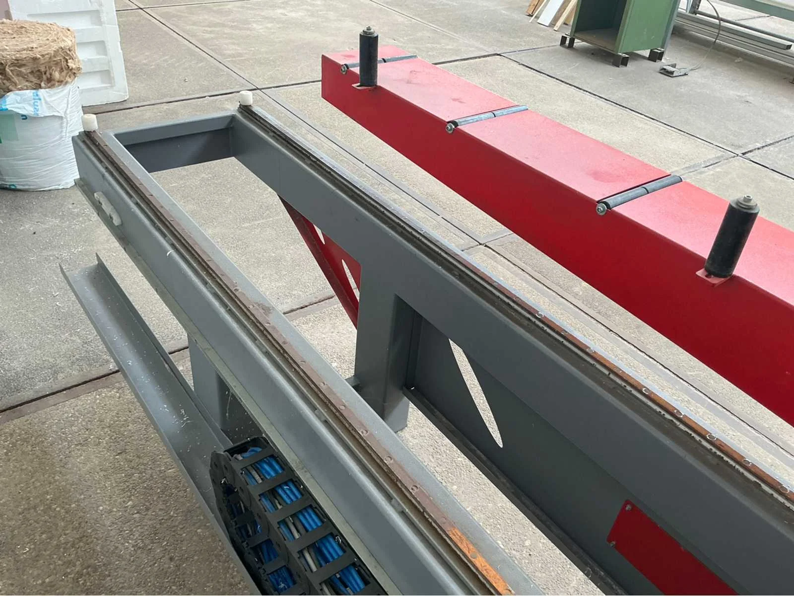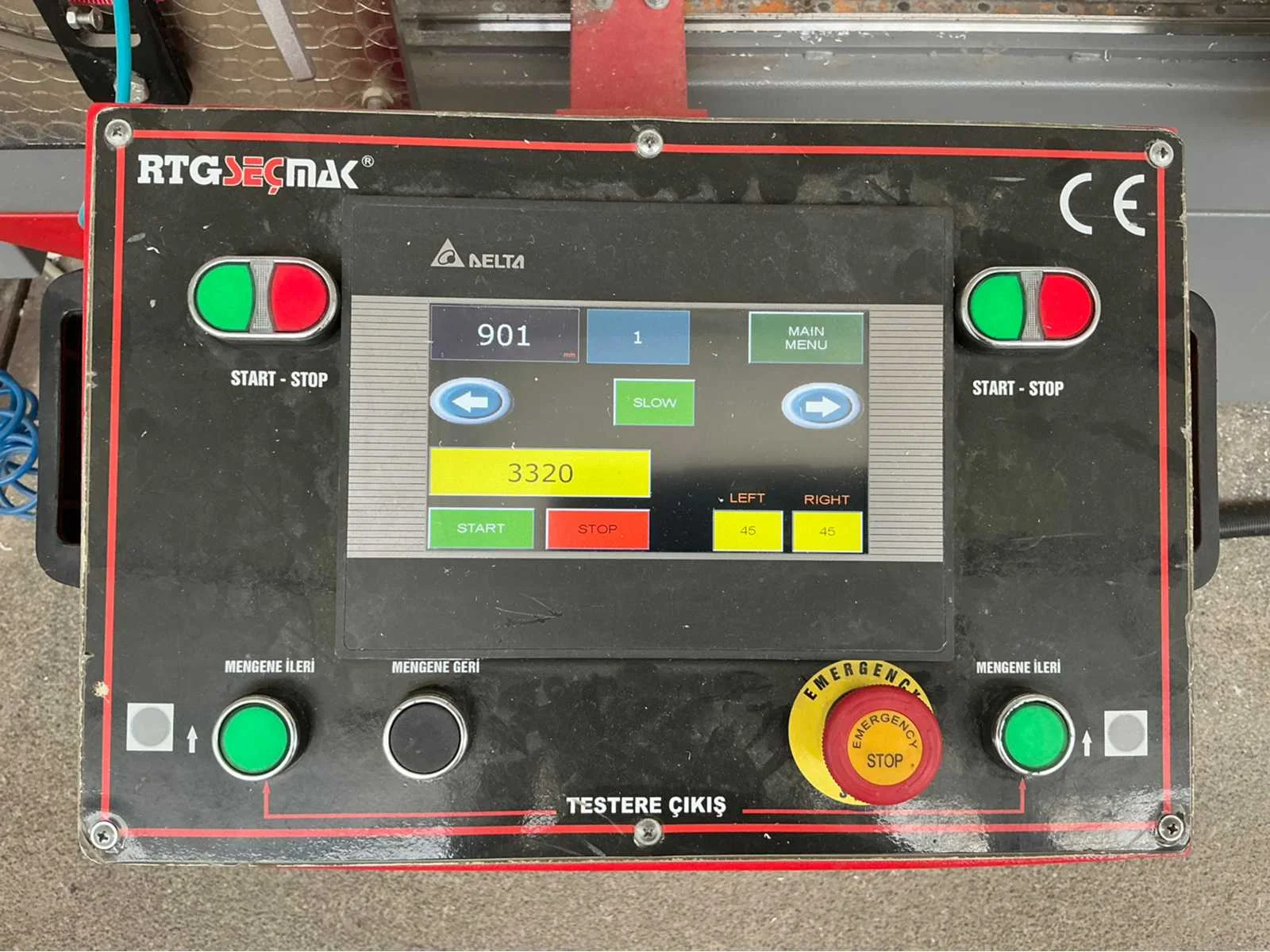 Werklengte: 6 meter. Beschikt over automatische beschermkappen. Mogelijkheid om in een hoek van 90 graden en 40 graden zagen. Beschikt over schoonmaak luchtspuiten 2x. Werkbreedte is uitschuifbaar. Nee Merk: RTG SEÇMAK Bouwjaar: 2018 Werkbreedte: 550mm Vermogen: 0.63kW Aansluiting: 380V Totale afmeting L: 6750mm Totale afmeting Breedte: 1550mm Totale afmeting Hoogte: 1420mm