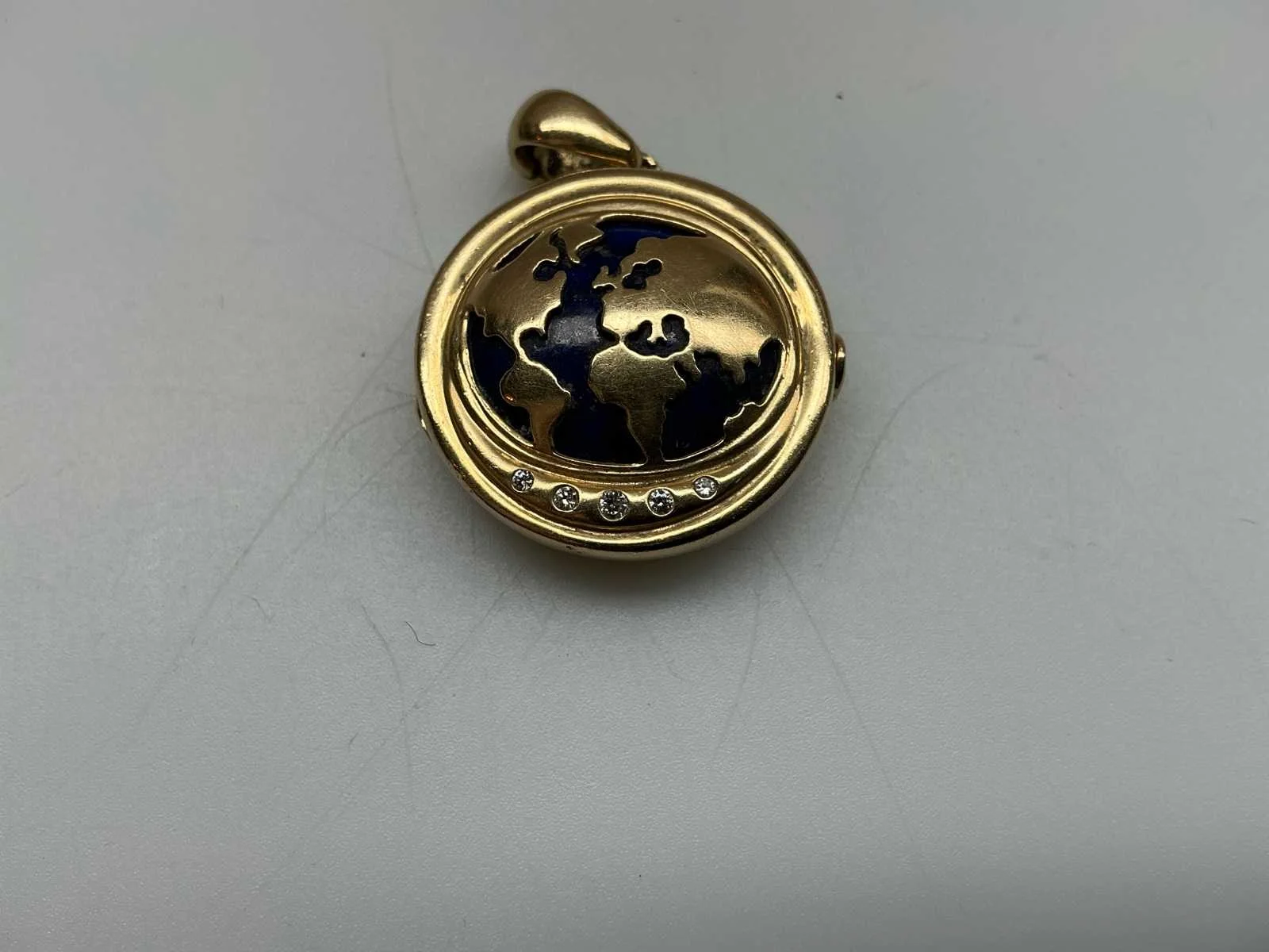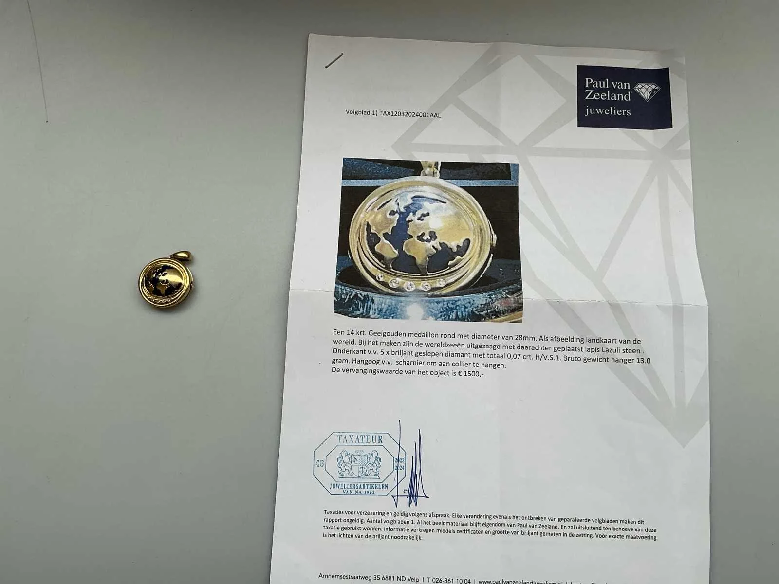 Diameter: 0,28mm. Inclusief taxatie rapport Nee Titel van werk: Gouden Medallion met 5 diamantjes Karaat: 14 Kleur: Geel Gewicht: 13g Materiaal: Goud