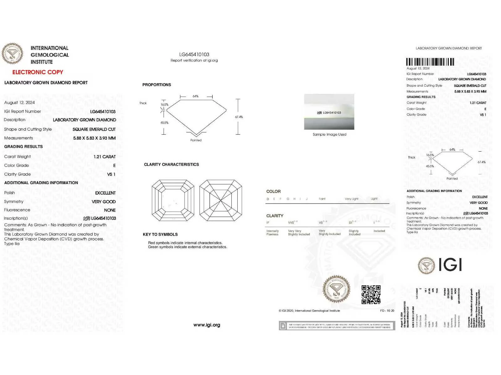 Diamant:(Lab-grown) Aantal: 1 stuk Slijpvorm: Square Emerald Gewicht (carat): 1.20 carat Kleur: E Zuiverheid: VS1 Polish: Excellent Certificaat: IGI Conditie: Nieuw Verpakking: Komt met een Edelsteendoos Toelichting: De kwaliteit is overgenomen van het rapport behorend bij item. ; De winkelwaarde die bij de sieraden en diamanten vermeld staat is de historische retailprijs. Dit is de prijs waarvoor het sieraad in het verleden of in sommige gevallen nog steeds bij de juwelier in de etalage heeft gelegen/ligt. Historische retailprijzen:€ 3120,- Nee