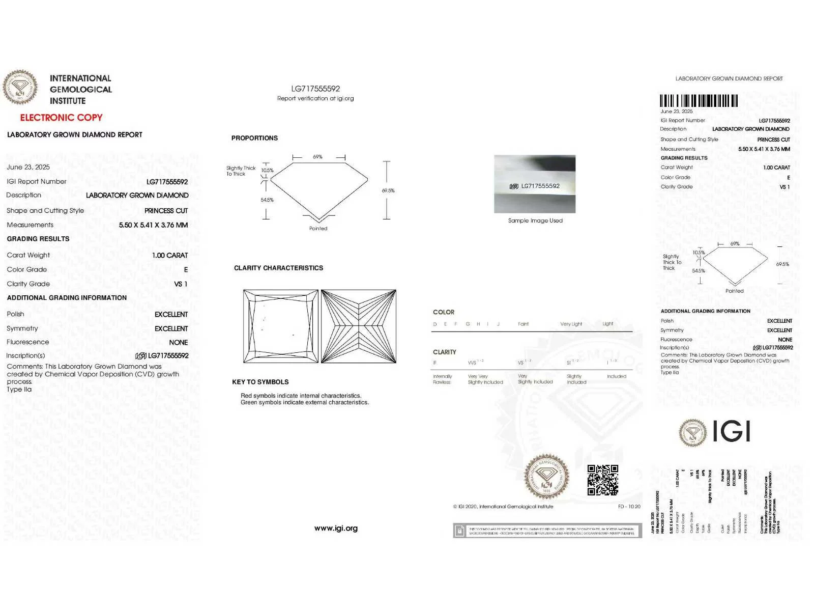 Diamant:(Lab-grown) Aantal: 1 stuk Slijpvorm: Princess Gewicht (carat): 1.00 carat Kleur: E Zuiverheid: VS1 Polish: Excellent Certificaat: IGI Conditie: Nieuw Verpakking: Komt met een Edelsteendoos Toelichting: De kwaliteit is overgenomen van het rapport behorend bij item. ; De winkelwaarde die bij de sieraden en diamanten vermeld staat is de historische retailprijs. Dit is de prijs waarvoor het sieraad in het verleden of in sommige gevallen nog steeds bij de juwelier in de etalage heeft gelegen/ligt. Historische retailprijzen: € 2840,- Nee