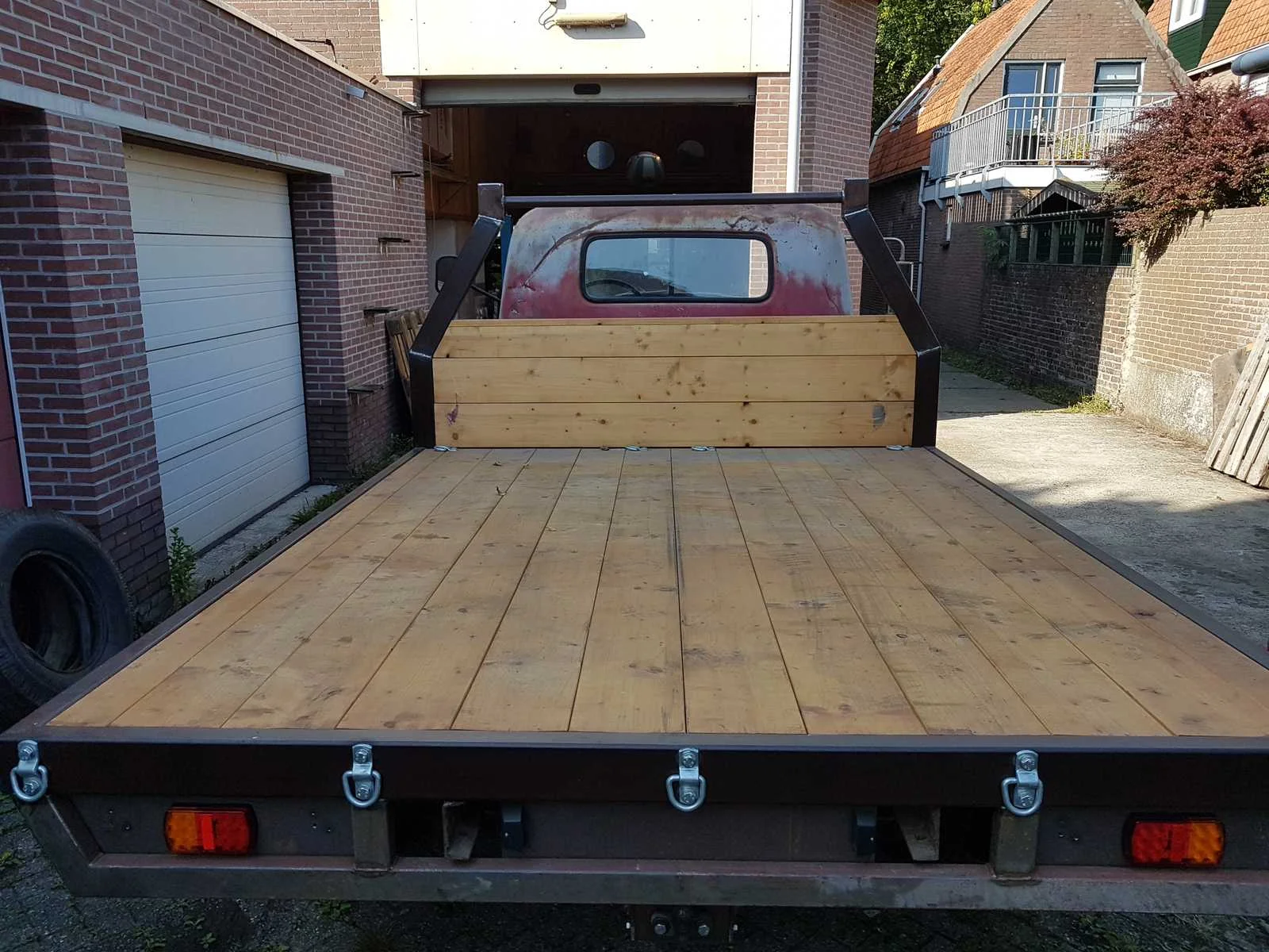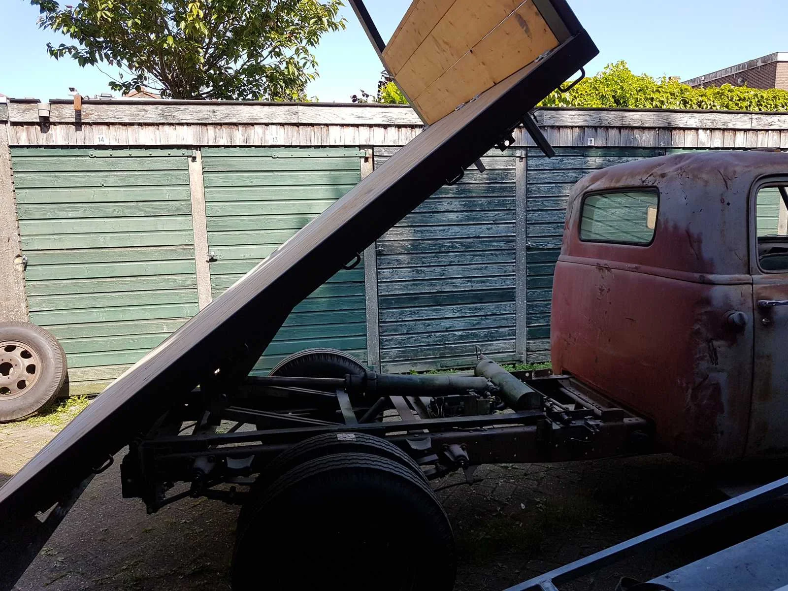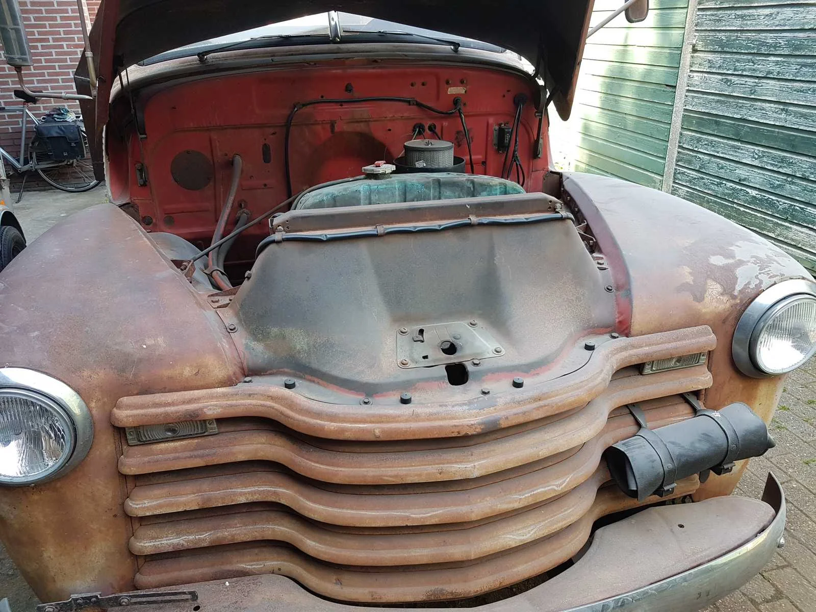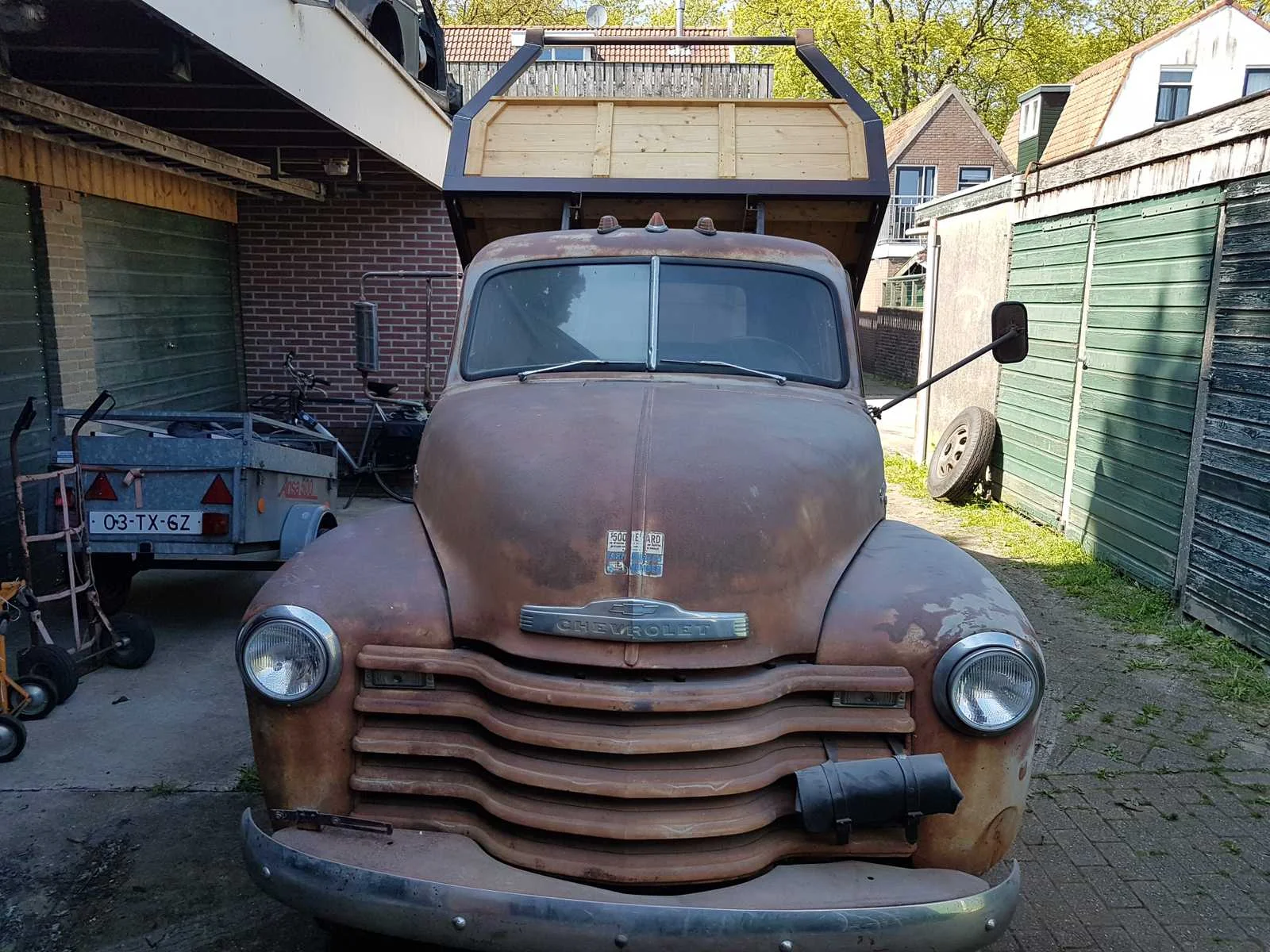 Chevrolet 3300, bouwjaar 1949 Deze klassieke Chevrolet 3300 pick-up uit 1949 verkeert in gerestaureerde staat waarbij al veel werkzaamheden zijn uitgevoerd. De wagen is voorzien van een nieuwe benzinetank met sensor, nieuwe carburateur en benzinepomp, een vernieuwde laadvloer, een nieuwe accu, nieuwe kruisjes in de aandrijfas, nieuwe fuseepennen en bussen, vernieuwde ophangpunten voor de bladveren, nieuwe koplampen en achterlichten, een trekhaak voor en achter, nieuwe banden en een nieuwe hoofdremcilinder met remcilinders en leidingen. Voor de verdere afronding dienen nog enkele werkzaamheden uitgevoerd te worden, waaronder het aansluiten van de ruitenwissermotor (nieuwe zit erbij), het monteren van de snelheidsmeter (nieuwe zit erbij), het herstellen van een lichte lekkage aan de oliedrukmeter en het afstellen van zowel sporing als remmen. De originele motor is aanwezig en voorzien van een gereviseerde cilinderkop. De auto wordt geleverd met Amerikaanse Title en alle benodigde papieren voor een RDW-keuring zijn aanwezig. Nee Merk: Chevrolet Type: 3300 Bouwjaar: 1949 Chassisnummer: 5VKB1173 Aantal deuren: 2 Ledig gewicht: 8000kg