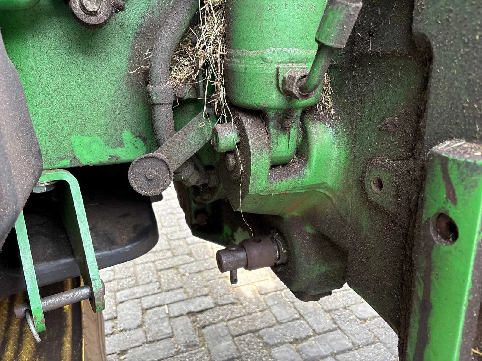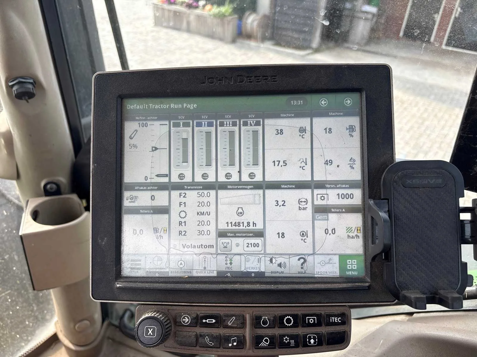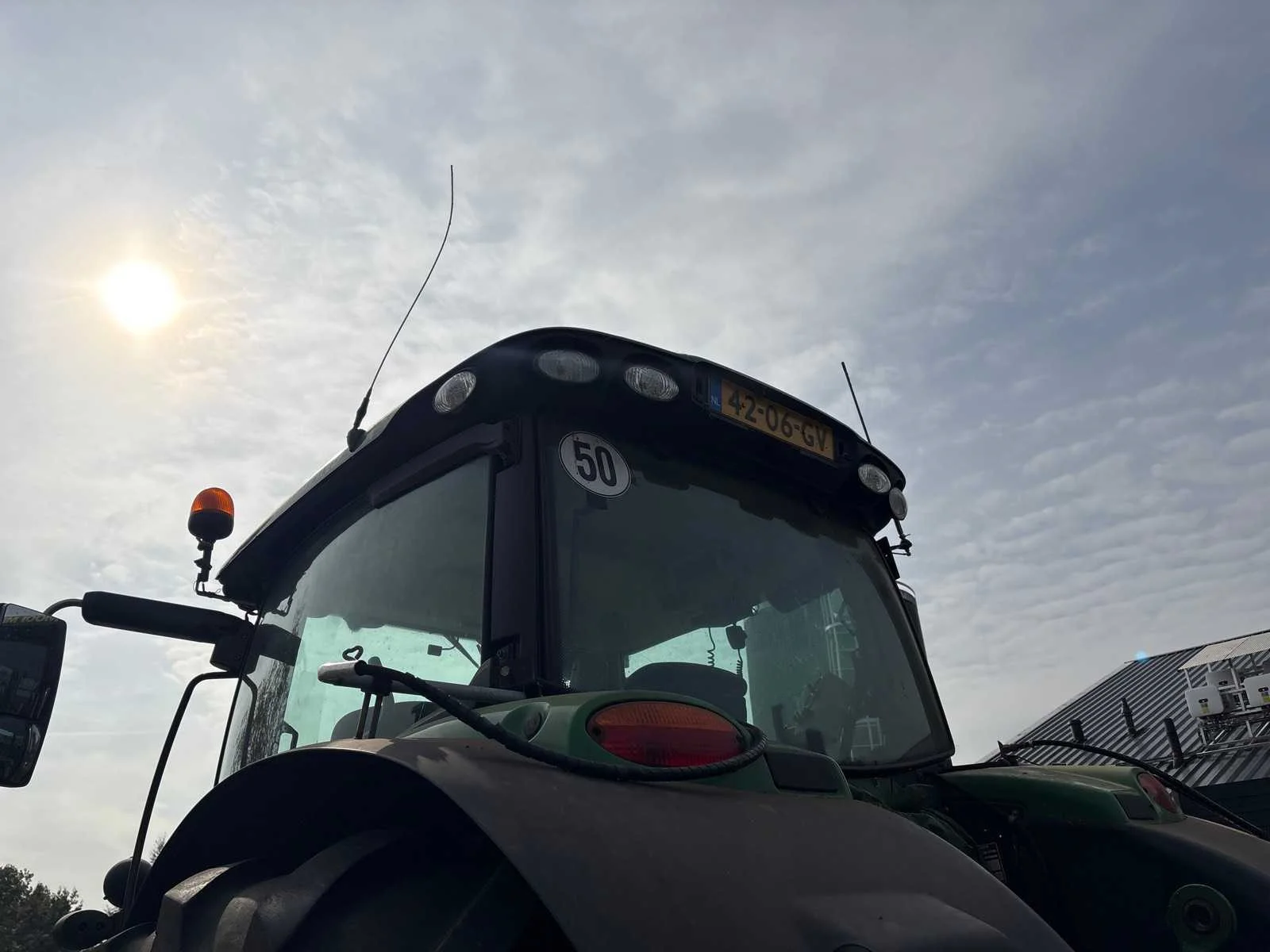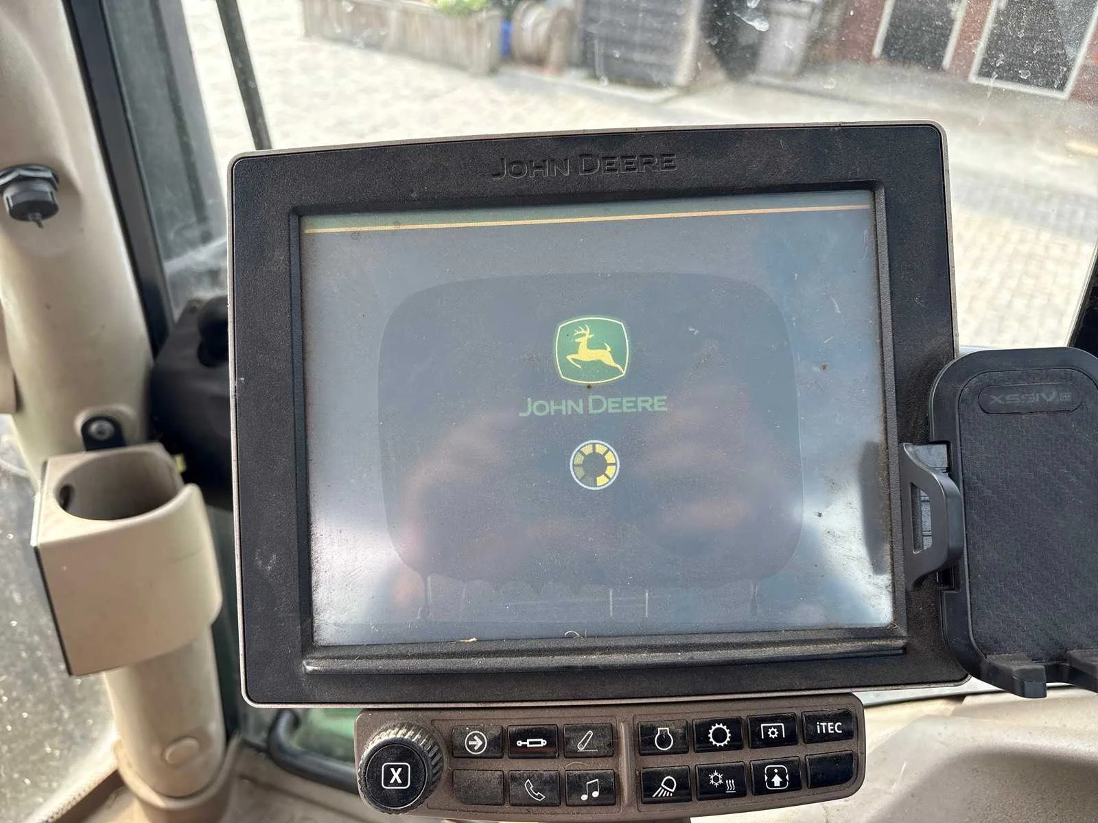 John Deere 6215R voorzien van luchtdrukwisselsysteem, 4DW hydraulische ventielen, Adblue, aanhangwagen luchtremysteem, hydraulische remventiel, Isobus, fronthefinrichting met PTO, werkverlichting rondom, spatbordbediening, bedieningsterminal. Deze landbouwtrekker is uitgerust met een 6,8 liter 6-cilinder motor met turbo en nabehandeling (SCR/DPF). Het nominale vermogen bedraagt 215 pk (160,3 kW), met een maximaal vermogen van 255 pk (190,2 kW) bij gebruik van IPM. Het netto motorvermogen ligt rond de 214 pk (159,6 kW). Het maximale koppel bedraagt ongeveer 1.000 Nm bij 1.600 tpm. De trekker is voorzien van een AutoPowr-transmissie en een maximumsnelheid tot 50 km/u. De aandrijving is 4WD met voor- en achterdifferentieelvergrendeling. Het hydraulieksysteem betreft een gesloten centrum, druk- en flowgecompenseerd systeem met een pompcapaciteit van ca. 155 L/min. De achterhef heeft een hefvermogen van 5.440 kg (gemeten op 610 mm), de voorhef 3.300 kg. PTO-aftakassen zijn aanwezig met 540 / 1.000 / 1.000E tpm achter en 1.000 tpm voor. De afmetingen bedragen 5,05 m lengte, 3,16 m hoogte, 1,89 m breedte en een wielbasis van 2,80 m. Het leeggewicht ligt tussen 7.800 en 8.500 kg (zonder ballast), met een maximaal toelaatbaar totaalgewicht van 13.450 kg. De vooras spoorbreedte is instelbaar tussen 1.524 en 2.235 mm. (LET OP! dit voertuig heeft een kenteken registratie, bij afhalen dient u dit ter plaatste bij een derde partij te naam te stellen of te exporteren, hier zijn extra kosten aan verbonden) Nee Merk: John Deere Type: 6215R Bouwjaar: 2015 Serienummer: L06215RTFR826316 Kenteken: 42-06-GV Motorvermogen (kW): 160kW Afgelezen urenstand: 11481 Aantal hydraulische ventielen voor: 2 Aantal hydraulische ventielen achter: 10 Bandenmaat voor: 710/60R30 Bandenmaat achter: 900/60R42 Fronthefinrichting: true Frontaftakas: true Cabine: true Totale afmeting L: 6200mm Totale afmeting Breedte: 3000mm Totale afmeting Hoogte: 3900mm Kentekenpapieren compleet?: true Chassisnummer: L06215RTFR826316 Datum eerste toelating: 2015-06-30 Nationaliteit documenten: NL