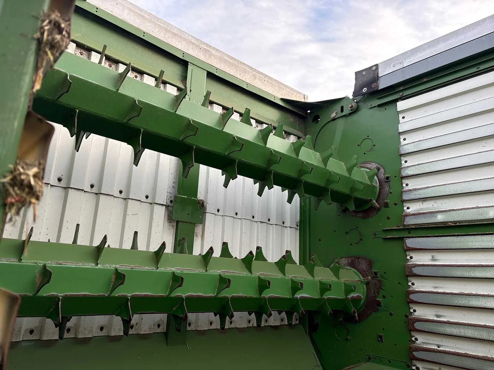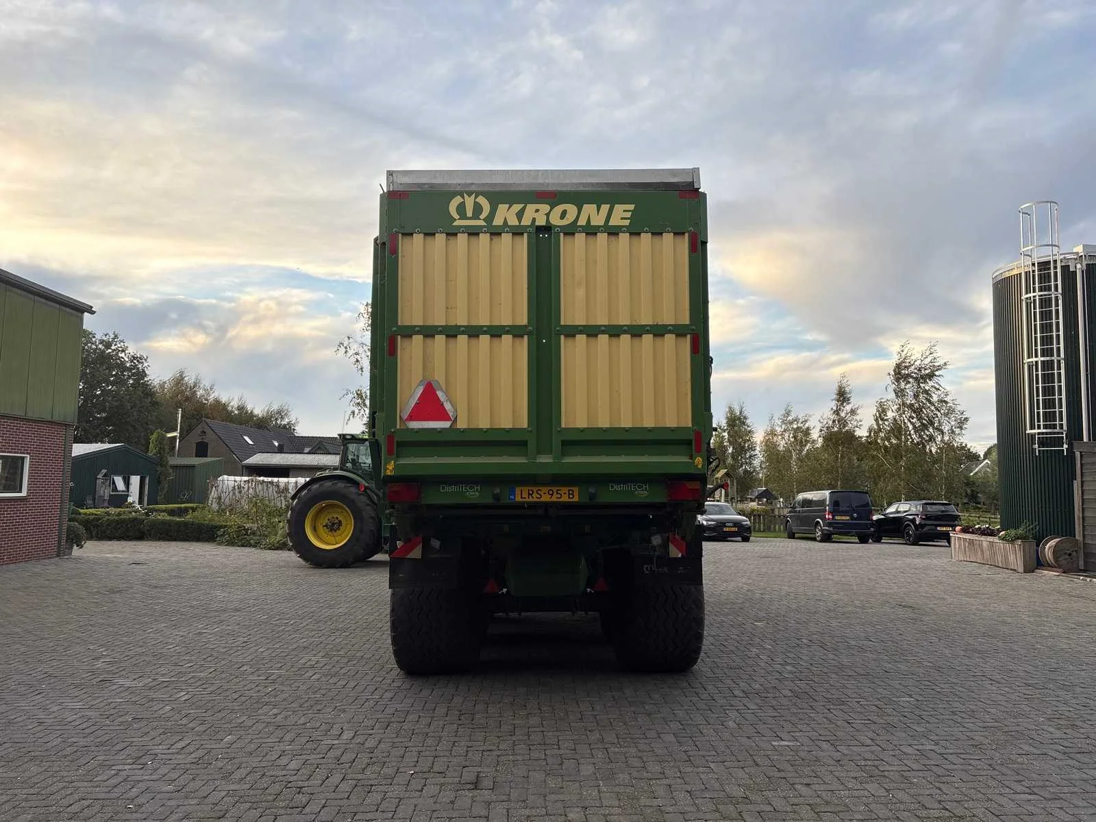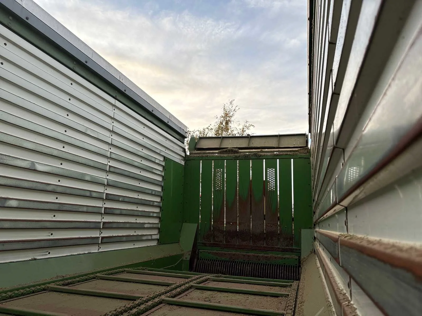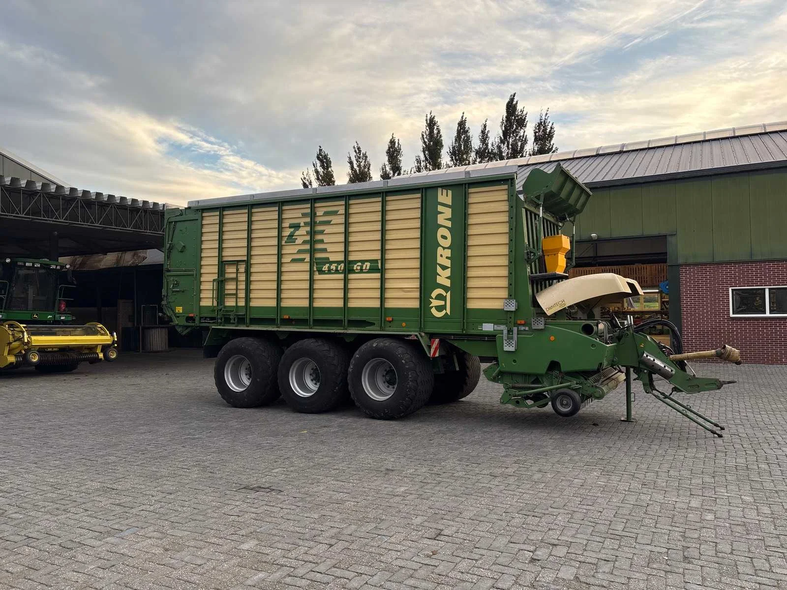 Deze Krone ZX 450 opraapwagen is uitgerust met een hydraulisch tridemstel (3-assig) met liftas en gedwongen besturing. De wagen staat op 800/45R26.5 banden en beschikt over een weeginrichting in combinatie met doseerwalsen. Verder is de machine voorzien van een Gamma bedienterminal, granulaat dosseerapparaat en wordt geleverd met Nederlands kenteken (LRS-95-B). De opraapwagen heeft een opslagcapaciteit van 27.000 liter en is voorzien van maximaal 46 messen. Het eigen gewicht bedraagt 28.500 kg. De totale afmetingen zijn 10.000 mm lengte, 3.000 mm breedte en 3.900 mm hoogte. Serienummer: ZX873071. Nee Merk: Krone Type: ZX 450 Bouwjaar: 2013 Serienummer: ZX873071 Kenteken: LRS-95-B Opslagcapaciteit: 27000 Met onderstel: true Bandenmaat: 800/45R26.5 Maximaal aantal messen: 46 Verdeelwals: true Doseerapparaat: true Eigen gewicht: 28500 Totale afmeting L: 10000 Totale afmeting Breedte: 3000 Totale afmeting Hoogte: 3900