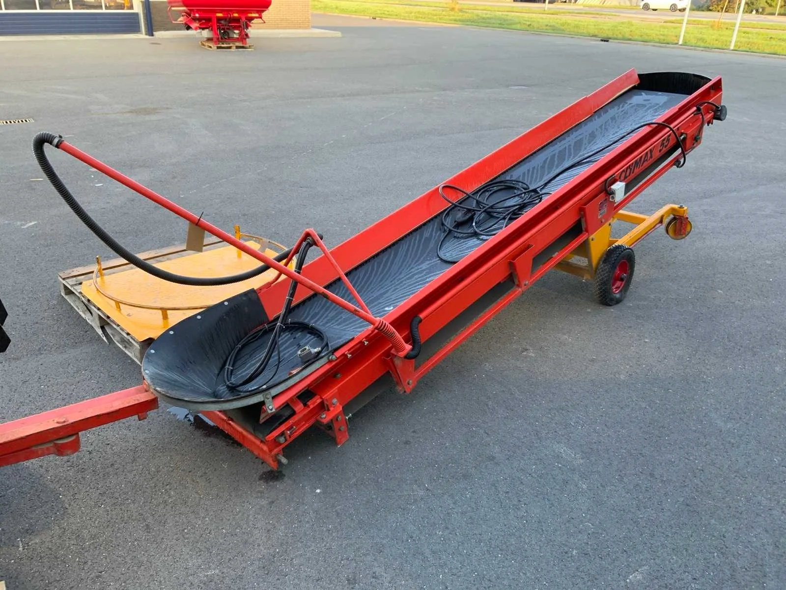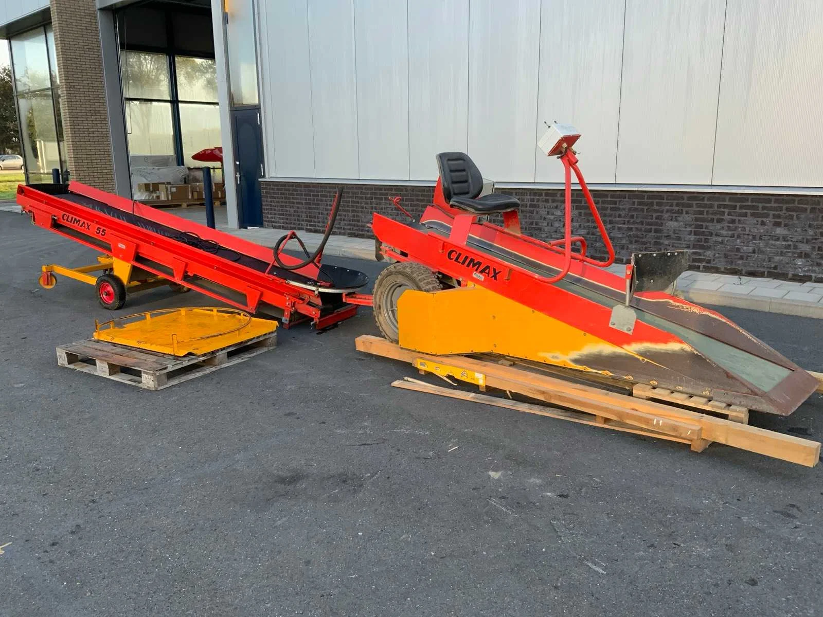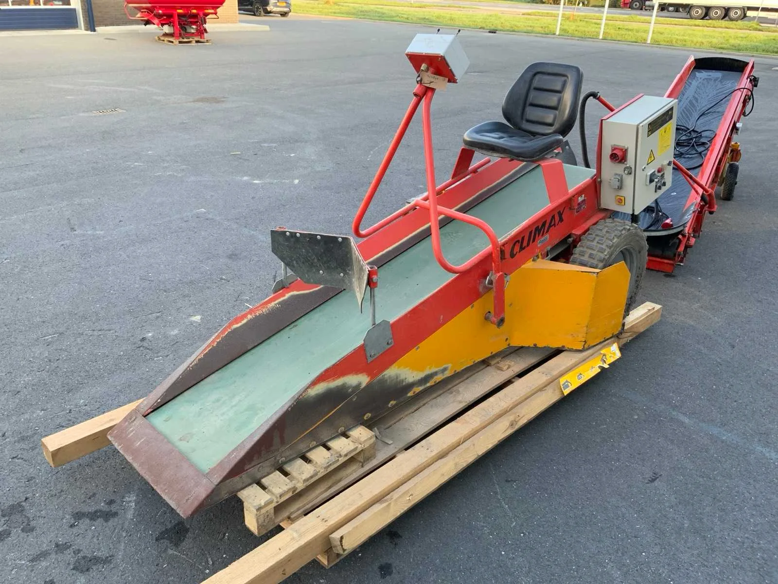 Bandbreedte opschepmachine circa 50cm - lengte circa 300cm; bandbreedte opvoerband circa 60 cm - lengte 420cm; voorzien van opschep machine en opvoerband; draaiplateau operationele breedte van 114cm en lengte van 90cm Nee Merk: Climax Type: C055 VW Bouwjaar: 1997 Serienummer: 130370014 Werkbreedte: 6300mm Totale afmeting Breedte: 1250mm Totale afmeting Hoogte: 1550mm
