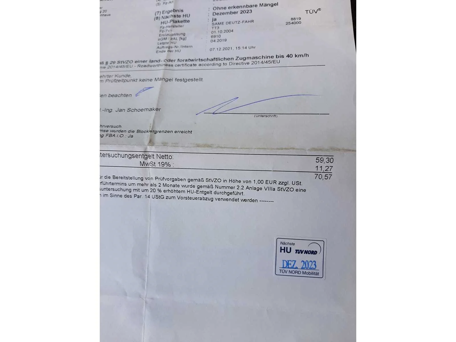 Voorzien van 6-Cil. “Deutz” Dieselmotor 45km/h; aftakas 540/1000 rpm; luchtsysteem; voorlader voorbereiding; 4 dubbelwerkende hydraulische ventielen; airco; dakraam; Nee Merk: Deutz-Fahr Type: Agrotron 108 Bouwjaar: 2006 Serienummer: 81101051 Bandenmaat voor: 540/65R24 Bandenmaat achter: 600/65R38 Fronthefinrichting: true Frontaftakas: true Cabine: true Luchtgeveerde stoel: true Nationaliteit documenten: Duits