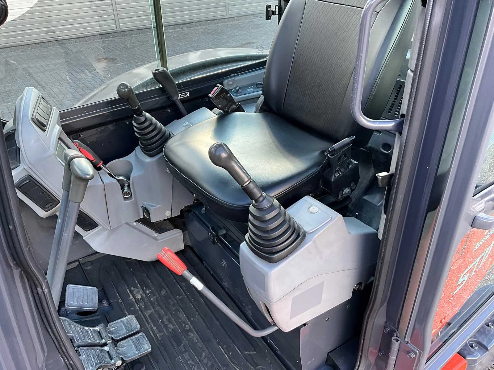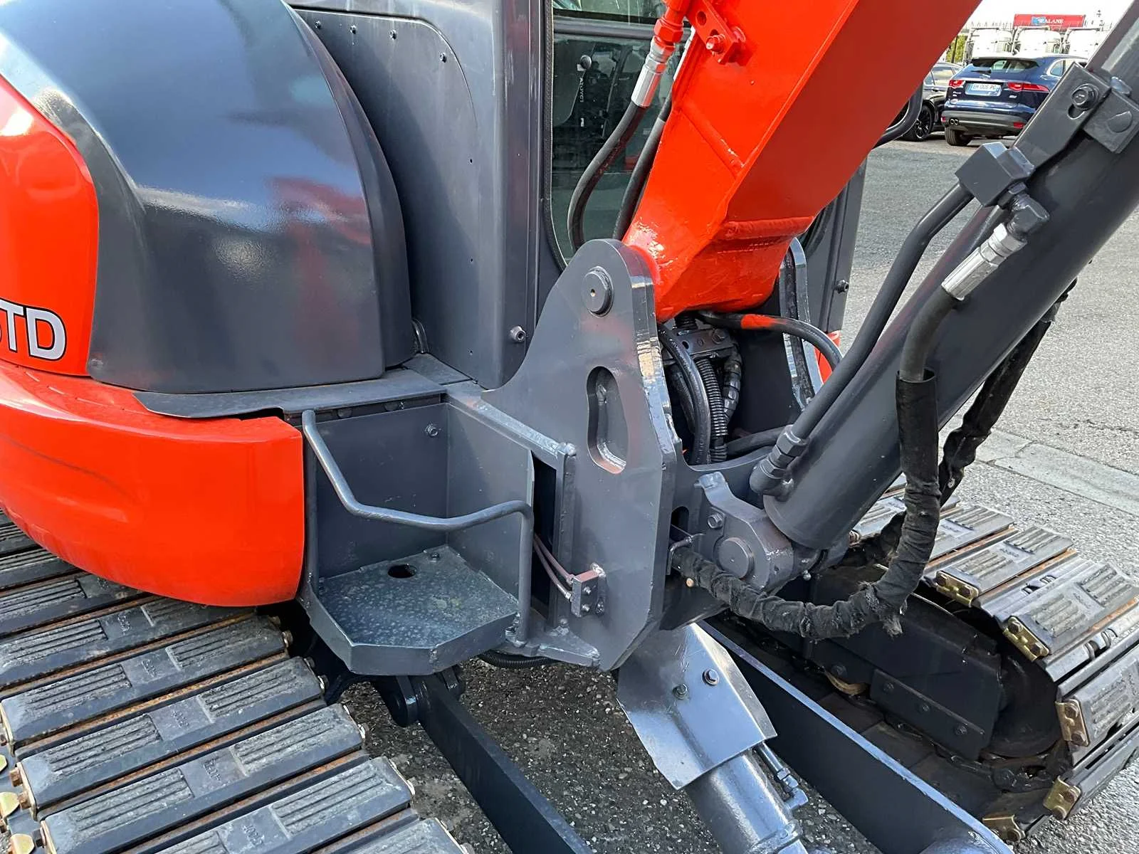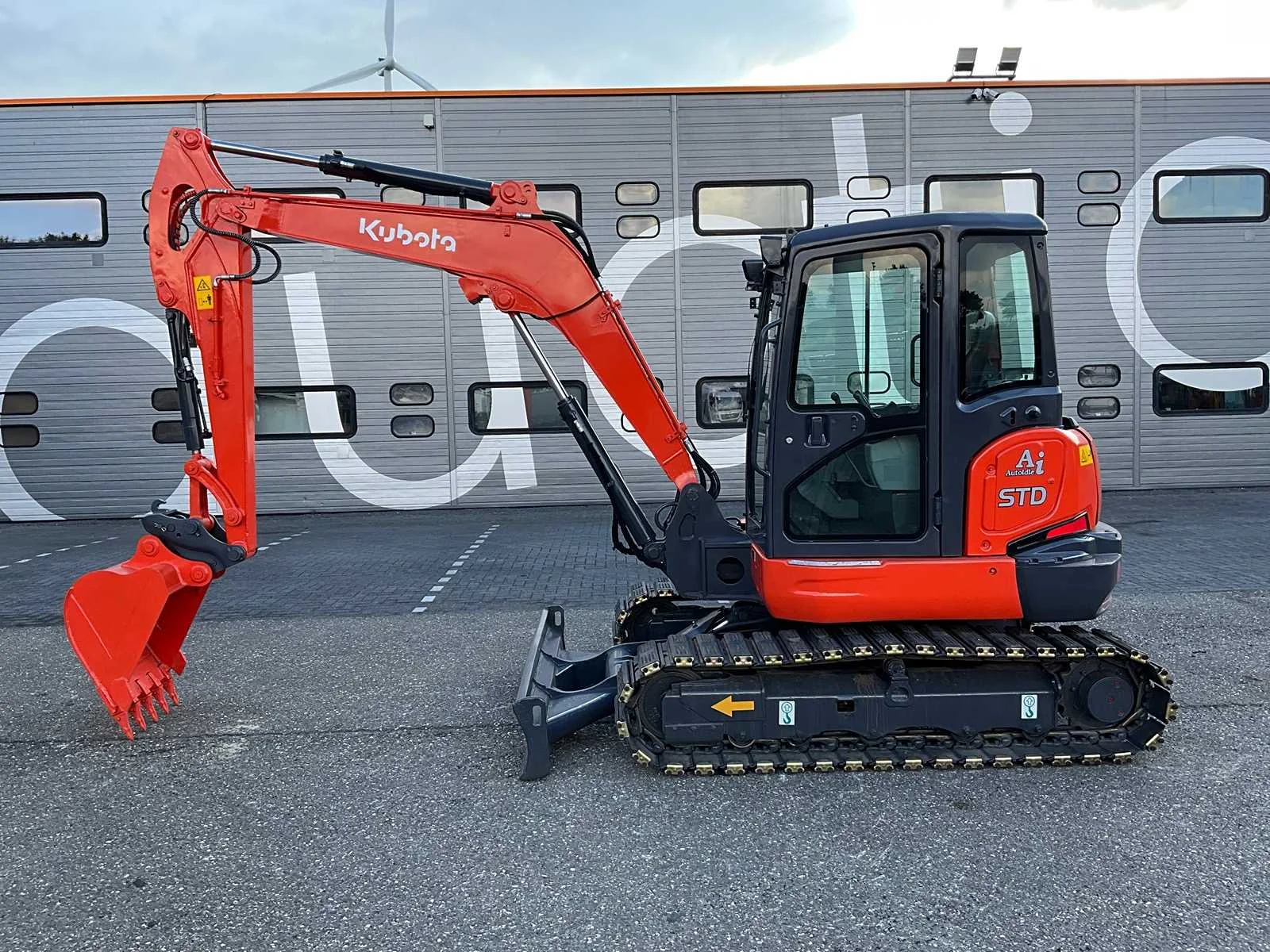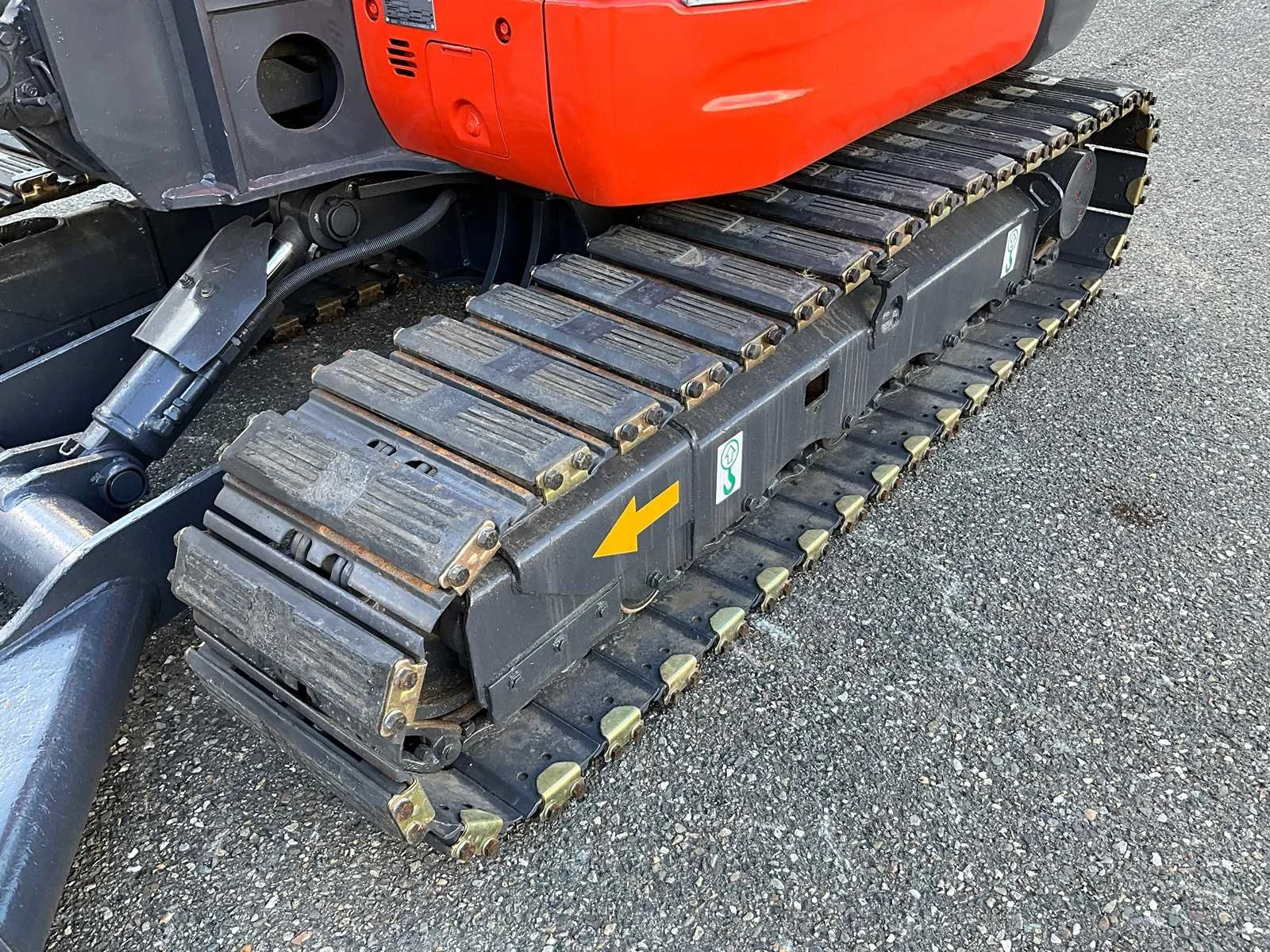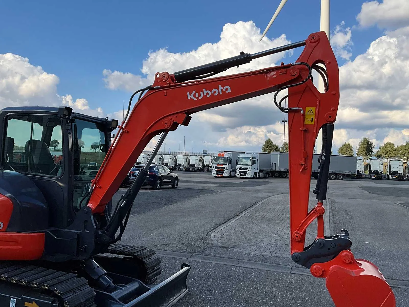 Dieplepelbak met tanden 700mm, mechanische snelwissel, extra hydraulische functie, schuifblad 1950mm, rubber pads op stalen rupsen, Auto Idle toert niet op, 2e rijsnelheid Nee Merk: Kubota Type: KX165-5 Bouwjaar: 2014 Serienummer: 60621 Merk motor: Kubota Motorvermogen (kW): 35.5kW Aantal cilinders: 4 Brandstof: diesel Bedrijfsgewicht: 5540kg Met graafbak: true Graafbak afm. b: 700mm Rups breedte: 400mm Cabine: true Afgelezen urenstand: 4326 Totale afmeting L: 5700mm Totale afmeting Breedte: 2000mm Totale afmeting Hoogte: 2600mm