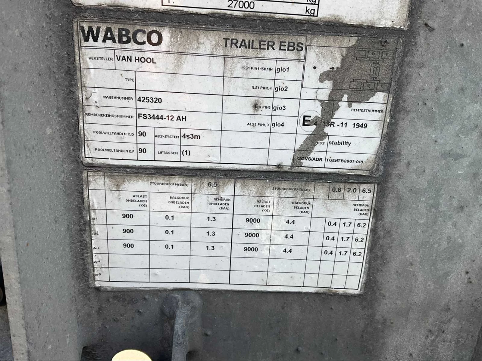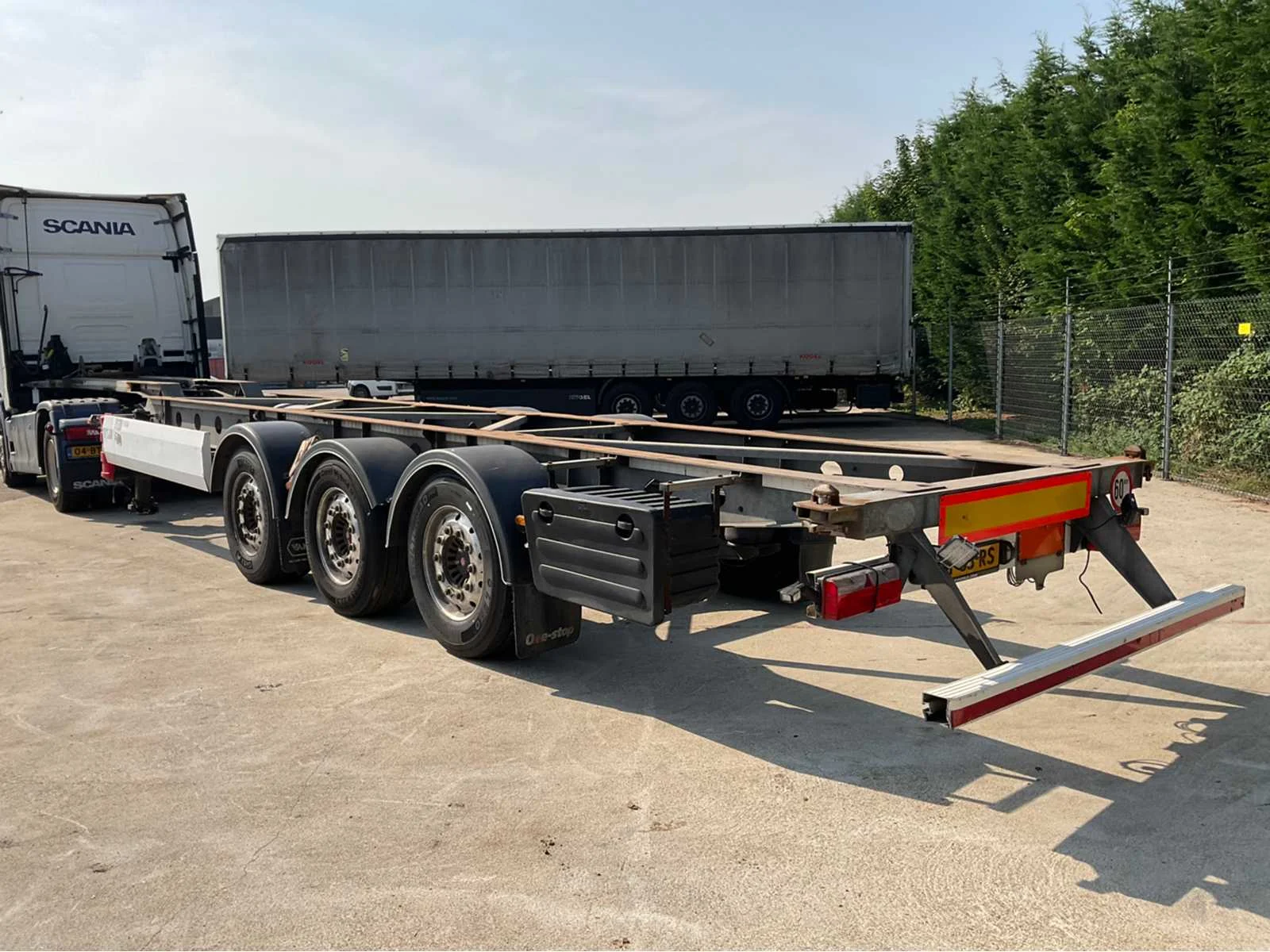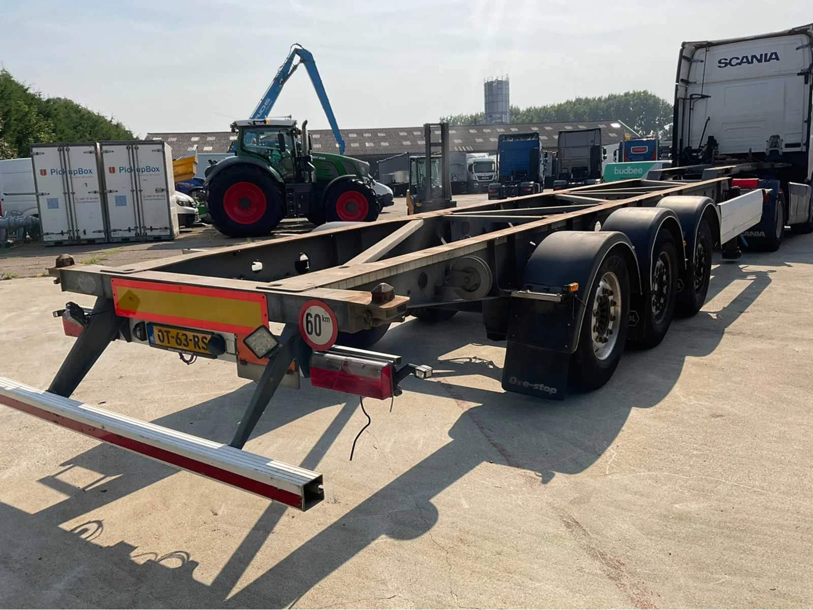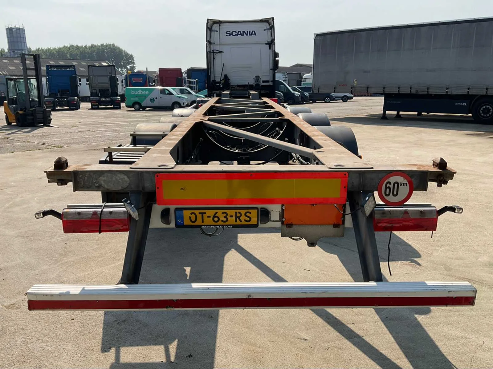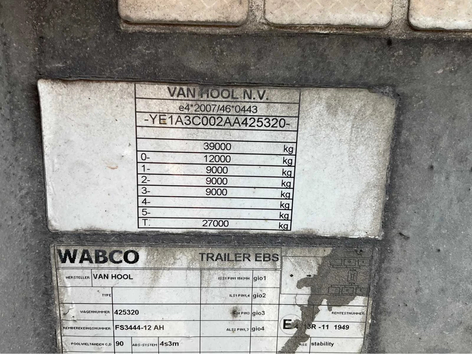 Max massa 39000kg, No Merk: Van hool Type aanhangwagencarrosserie: container chassis Bouwjaar: 2017 Chassisnummer VIN: YE1A3C002AA425320 Kenteken: OT-63-RS Datum eerste toelating (NL): 2023-01-02 Datum eerste toelating: 2017-04-04 APK vervaldatum: 2025-08-14 Laadvermogen: 35340kg Totale afmeting L: 12950mm Totale afmeting Breedte: 2500mm Totale afmeting Hoogte: 1200mm
