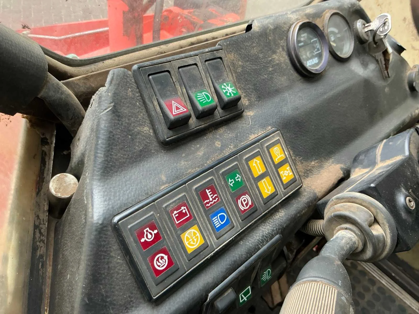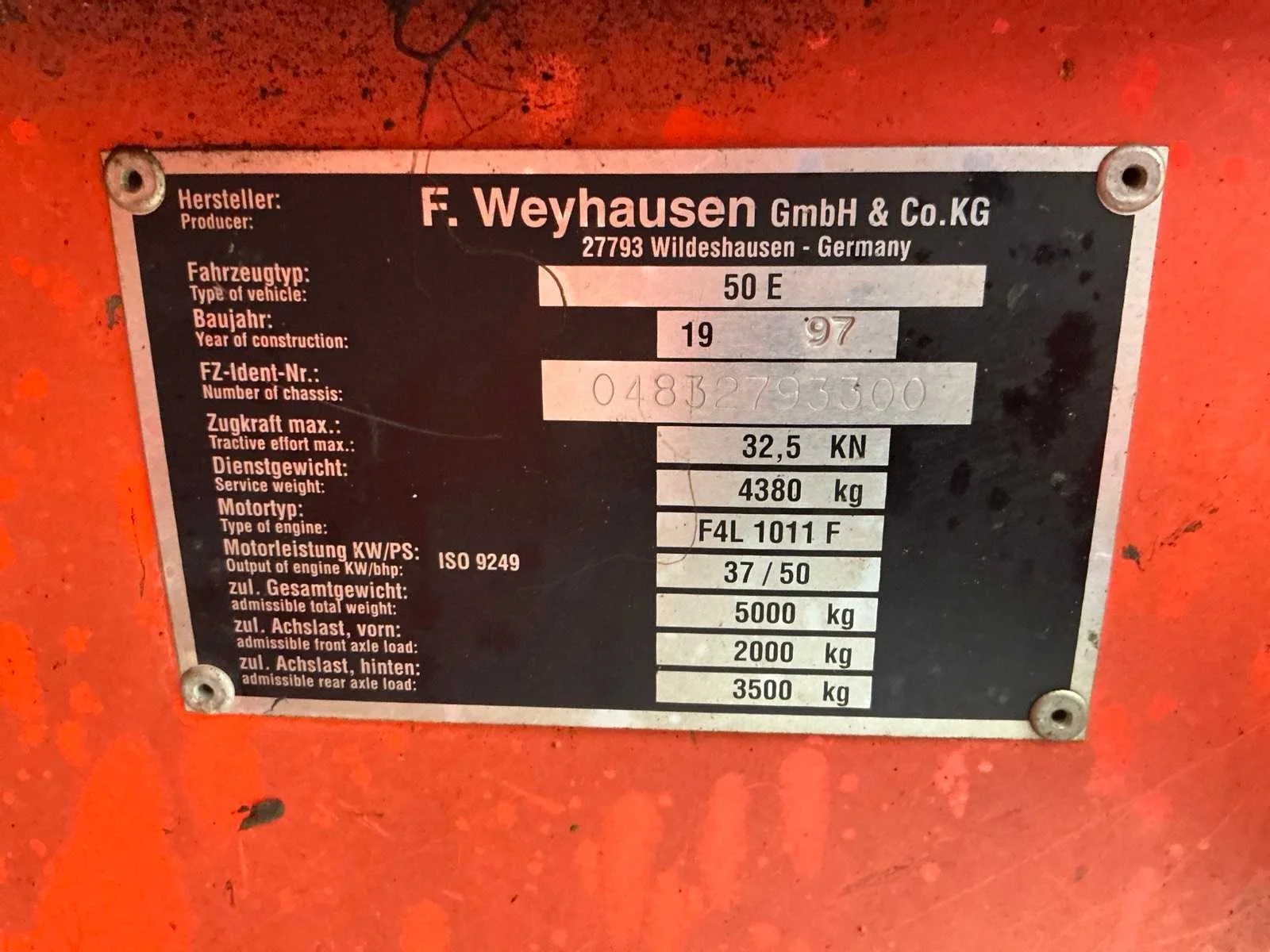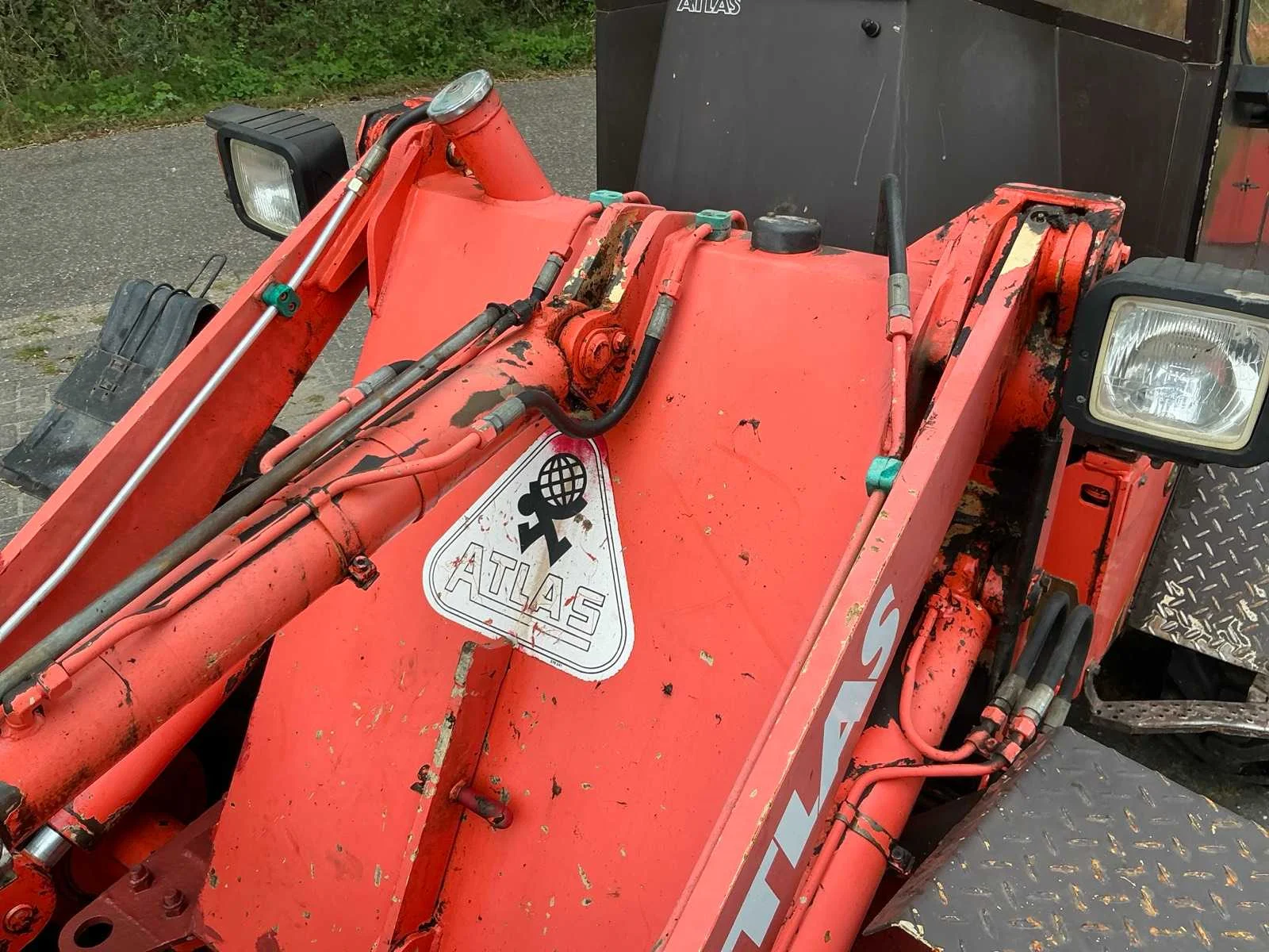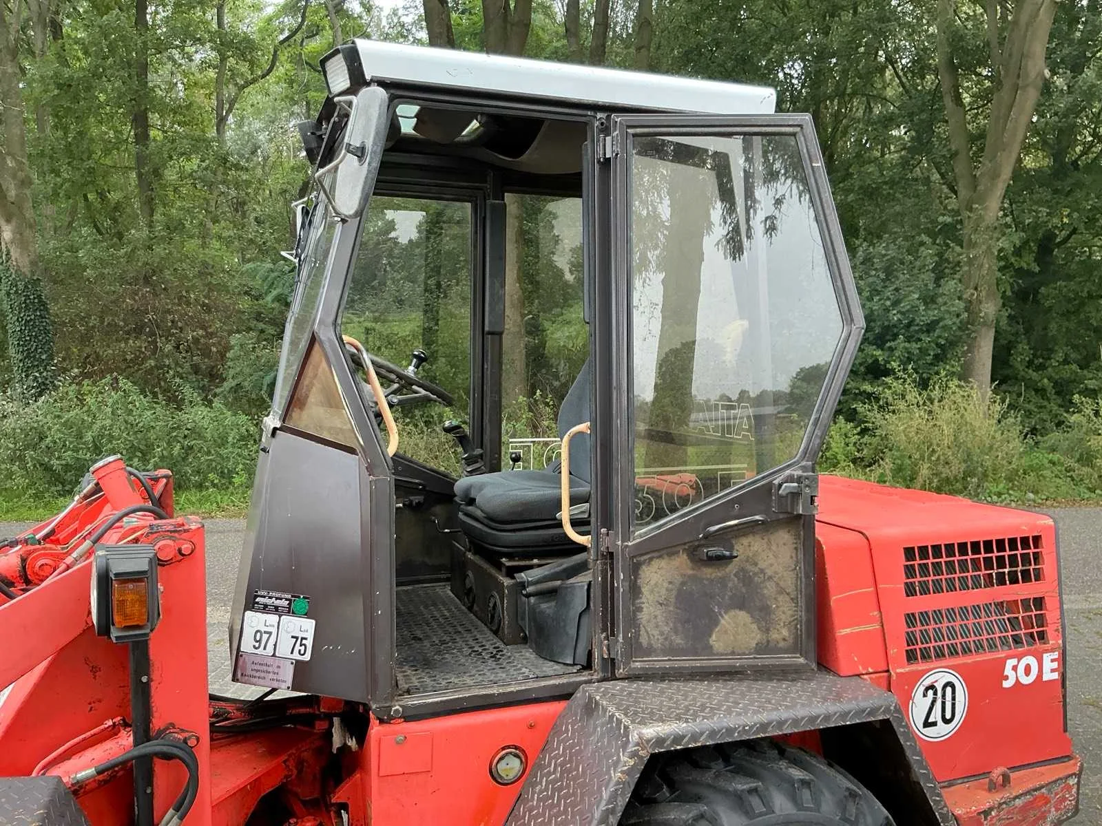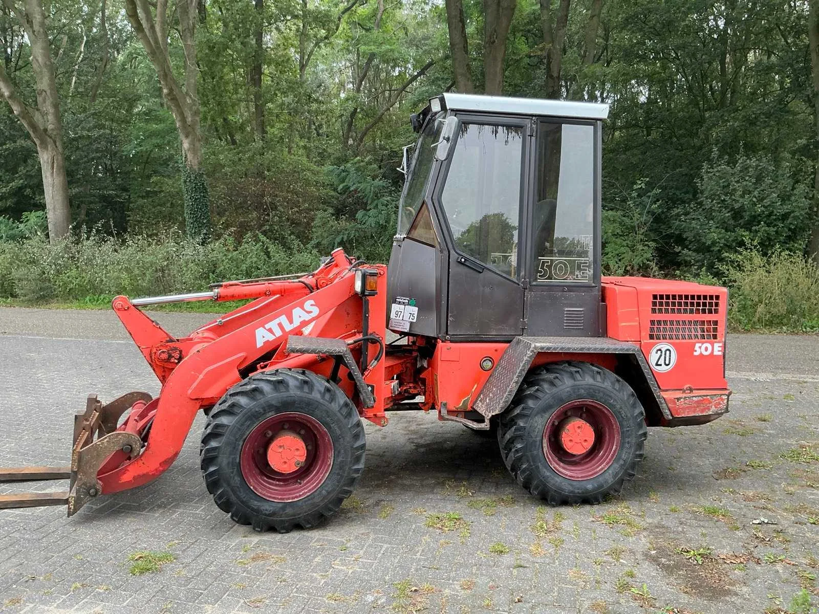 Vierwielaandrijving, 2 versnellingen, max rijsnelheid 20 km/u, hydraulische snelwissel, Voorzien van vorkenbord en graafbak. Nee Merk: Atlas Type: 50 E Bouwjaar: 1997 Serienummer: 04832793300 Merk motor: Deutz F4L 912 Kenteken: TKZ-35-H Motorvermogen (kW): 40kW Aantal cilinders: 4 Brandstof: diesel Bedrijfsgewicht: 4380kg Graafbak afm. l: 1950mm Graafbak afm. b: 700mm Graafbak afm. h: 770mm Bandenmaat: 12.5-18 Cabine: true Afgelezen urenstand: 9506 Eigen gewicht: 5000kg Totale afmeting L: 4100mm Totale afmeting Breedte: 1800mm Totale afmeting Hoogte: 2600mm