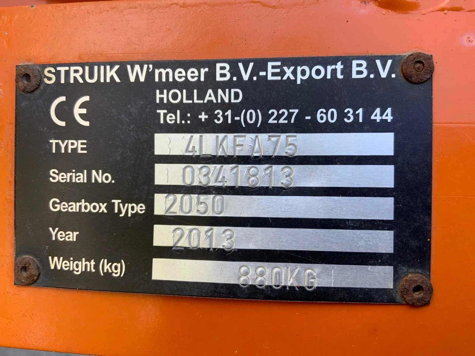 No Merk: Struik Type: 4LKFA75 Bouwjaar: 2013 Werkbreedte: 3200mm Eigen gewicht: 880kg Totale afmeting L: 2000mm Totale afmeting Breedte: 3650mm Totale afmeting Hoogte: 1300mm