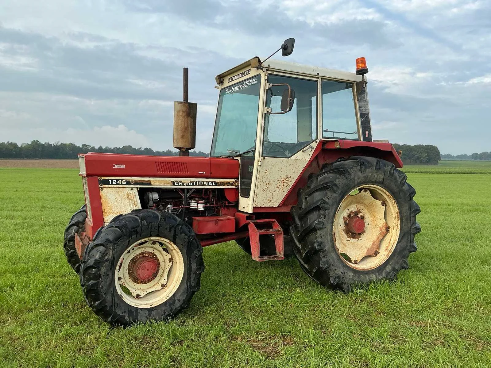 Voorzien van: originele Franse trekker, Franse documentatie, 6 cilinder turbo, volledig functioneel, 7-polige stekker achterzijde, dubbele hefcilinders, trekhaak, Cat.2 hefinrichting, topstang, 540/1000 PTO. Nee Merk: International Type: 1246 Bouwjaar: 1975 Serienummer: 011408 Motorvermogen (kW): 91kW Afgelezen urenstand: 11907 Versnellingsbaktype: Middel schakeling Aantal hydraulische ventielen achter: 2 Bandenmaat voor: 360/70 R24 Bandenmaat achter: 520/70 R38 Cabine: true Eigen gewicht: 4850kg Totale afmeting L: 4200mm Totale afmeting Hoogte: 2800mm Chassisnummer: 011408