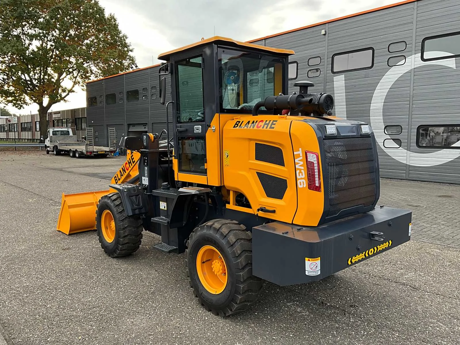 Dichte bak met tanden 1800mm, trommel remmen, 4WD, 2 rijsnelheden, LED verlichting, joystick bediening Nee Merk: Blanche Type: TW36 Bouwjaar: 2025 Serienummer: 25D046 Motorvermogen (kW): 42kW Aantal cilinders: 4 Brandstof: Diesel Bedrijfsgewicht: 3000kg Graafbak afm. b: 1800mm Bandenmaat: 20.5/70-16 Cabine: true Totale afmeting L: 5500mm Totale afmeting Breedte: 1900mm Totale afmeting Hoogte: 2700mm