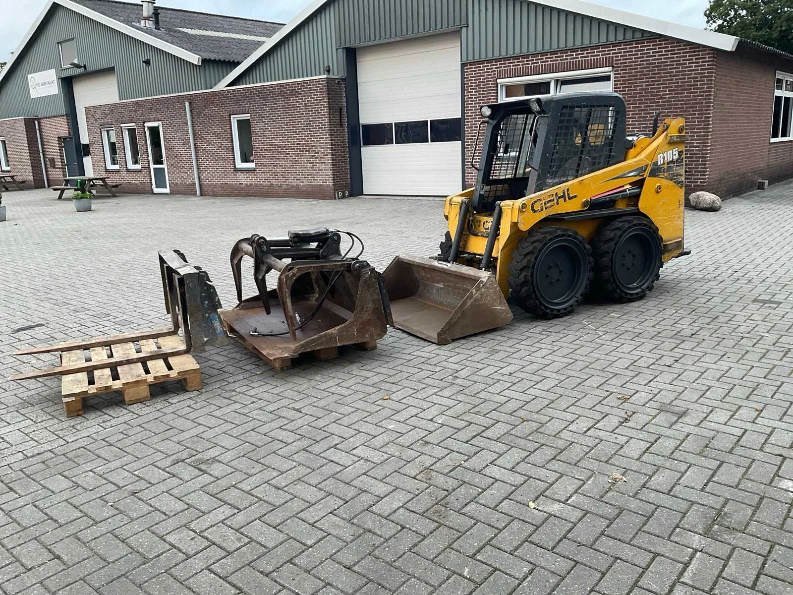 1x bak 1x pelikaanbak 1x vorkenbord Nee Merk: Gehl Type: R105 Bouwjaar: 2018 Serienummer: Ghl0f105h0e181147 Kenteken: T69bxv Merk motor: Yanmar Aantal cilinders: 4 Brandstof: Diesel Bedrijfsgewicht: 1814kg Afgelezen urenstand: 1955 Eigen gewicht: 1814kg Totale afmeting L: 2600mm Totale afmeting Breedte: 1300mm Totale afmeting Hoogte: 1800mm