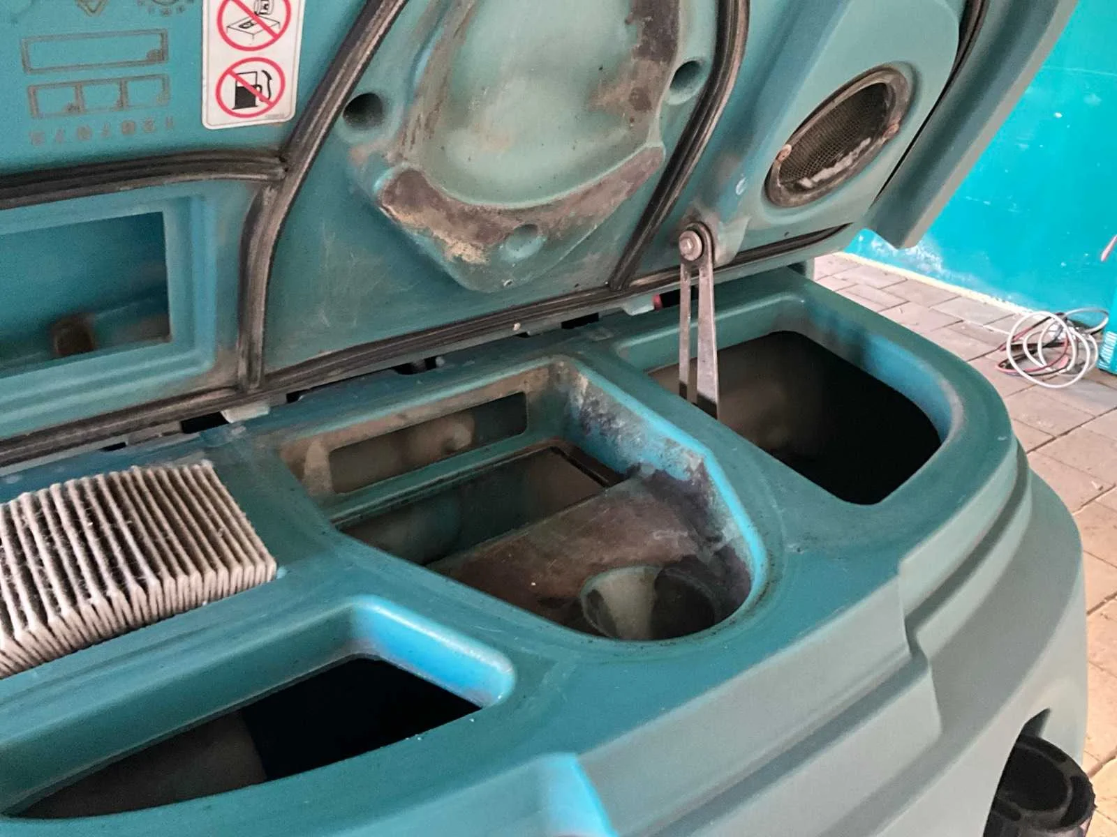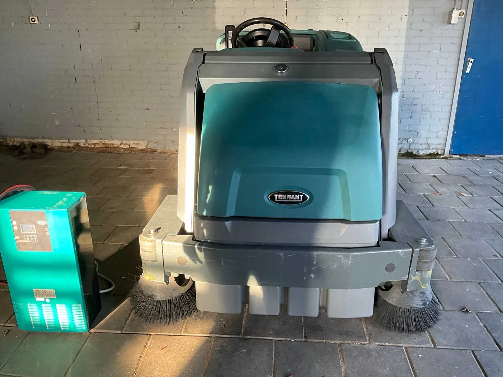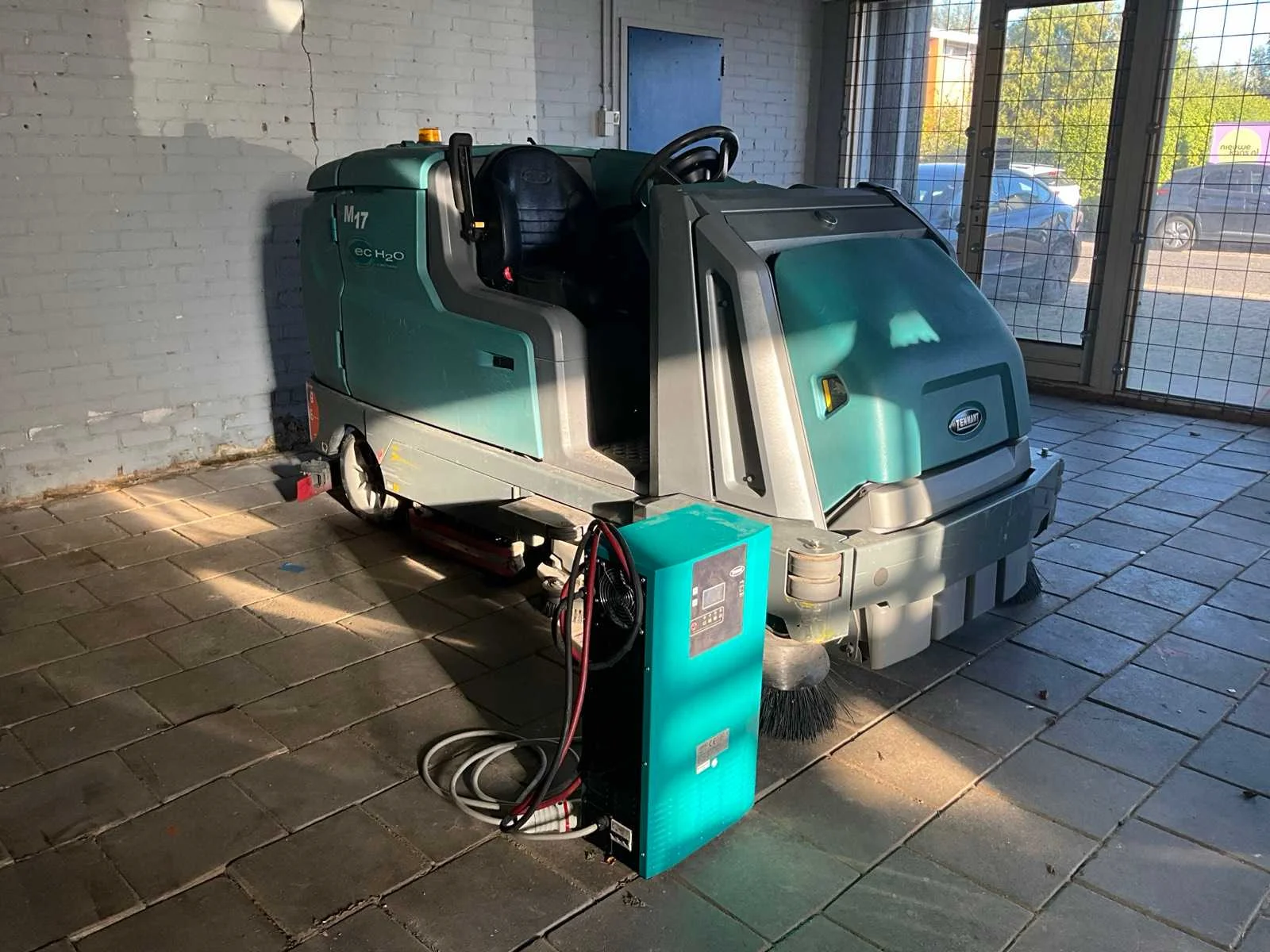 De Tennant M17 is een opzit veeg- en schrobmachine die in één werkgang vloeren veegt, schrobt en droogzuigt. Hij is ontworpen voor zware industriële en commerciële omgevingen en combineert hoge productiviteit met stof- en vuilopname in grote oppervlakken Model: Tennant M17 (opzit veeg-/schrobmachine) Bouwjaar: 2017 Serienummer: M17-U00167 Voeding: 36 V (accu) Max. vermogen: 10,3 kW Max. toegelaten gewicht (GVW): 3.245 kg Max. helling (gradeability): 11 % Beschermingsklasse: IP X3 (beschermd tegen spatwater) Reinigingsprestaties: Schrobbreedte (borsteldek): 1.015 mm (40 inch) Met 1 zijborstel (schrob): 1.220 mm (48 inch) Veegbreedte hoofdborstel: 915 mm (36 inch) Met 2 zijborstels (vegen): tot 1.700 mm (67 inch) Theoretische schrobcapaciteit: ~ 10.730 m²/uur Theoretische veegcapaciteit: ~ 14.980 m²/uur Tanks en opvang: Schoonwatertank (solution tank): 285 liter Vuilwatertank (recovery tank): 346 liter Demisting chamber: 61 liter Afvalcontainer (hopper): ~ 85 liter Hopper dumphoogte: 1.525 mm (60 inch), capaciteit 136 kg Aandrijving & motoren: Rijaandrijving: 36 V AC motor, 2,25 kW (3,0 hp) Max. transportsnelheid: 9 km/h Schrobsnelheid: ~ 6,5 km/h Achteruit: 5 km/h Hellingsvermogen: 20 % leeg / 11 % tijdens schrobben Borstels: Schijfborstels: 315 rpm, druk tot ~ 250 kg Cilindrische borstel (indien uitvoering): 500 rpm Vacuümmotoren: 2 × 0,6 kW, 14.500 rpm Nee Merk: Tennant Type: M17 Bouwjaar: 2017 Serienummer: M17-U00167 Afgelezen urenstand: 3789 Elektrisch aangedreven: true Brandstof: Elektrisch Met oplader: true Vermogen: 10,3kW Schoonwatertank: true Inhoud waterreservoir: 285l Inhoud vuilwatertank: 346l