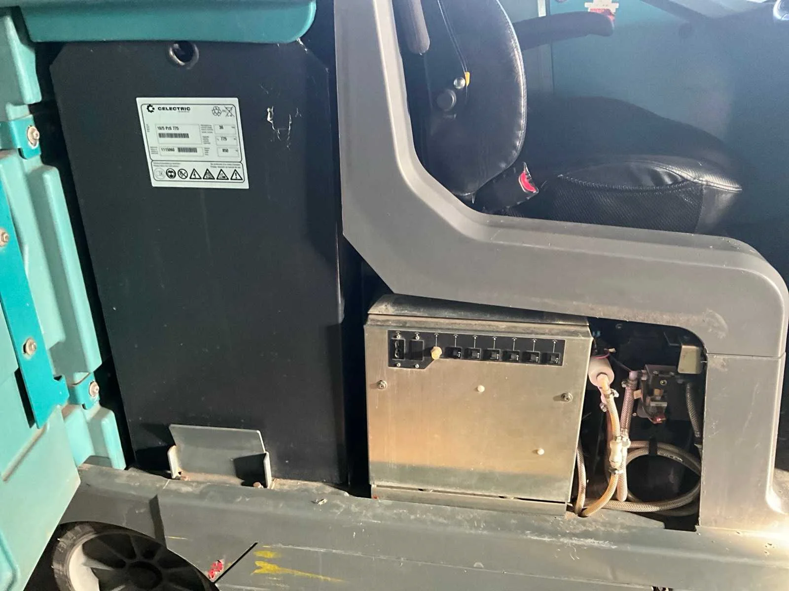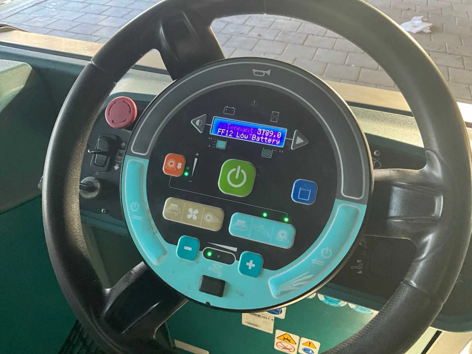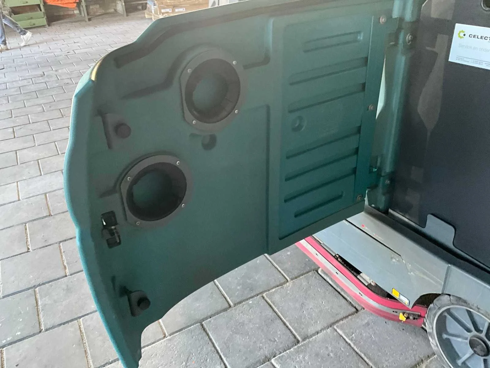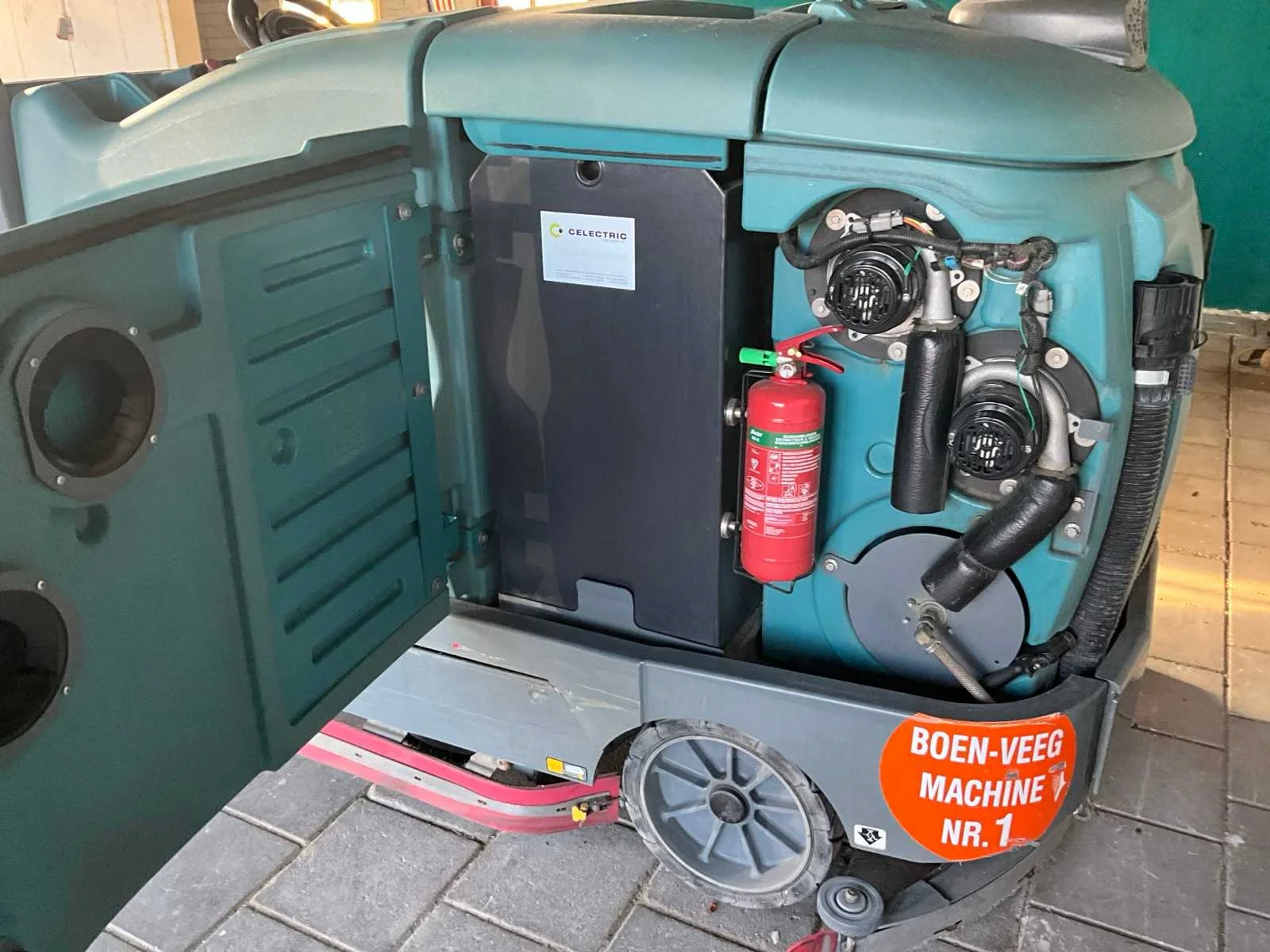 De Tennant M17 is een opzit veeg- en schrobmachine die in één werkgang vloeren veegt, schrobt en droogzuigt. Hij is ontworpen voor zware industriële en commerciële omgevingen en combineert hoge productiviteit met stof- en vuilopname in grote oppervlakken Model: Tennant M17 (opzit veeg-/schrobmachine) Bouwjaar: 2017 Serienummer: M17-U00167 Voeding: 36 V (accu) Max. vermogen: 10,3 kW Max. toegelaten gewicht (GVW): 3.245 kg Max. helling (gradeability): 11 % Beschermingsklasse: IP X3 (beschermd tegen spatwater) Reinigingsprestaties: Schrobbreedte (borsteldek): 1.015 mm (40 inch) Met 1 zijborstel (schrob): 1.220 mm (48 inch) Veegbreedte hoofdborstel: 915 mm (36 inch) Met 2 zijborstels (vegen): tot 1.700 mm (67 inch) Theoretische schrobcapaciteit: ~ 10.730 m²/uur Theoretische veegcapaciteit: ~ 14.980 m²/uur Tanks en opvang: Schoonwatertank (solution tank): 285 liter Vuilwatertank (recovery tank): 346 liter Demisting chamber: 61 liter Afvalcontainer (hopper): ~ 85 liter Hopper dumphoogte: 1.525 mm (60 inch), capaciteit 136 kg Aandrijving & motoren: Rijaandrijving: 36 V AC motor, 2,25 kW (3,0 hp) Max. transportsnelheid: 9 km/h Schrobsnelheid: ~ 6,5 km/h Achteruit: 5 km/h Hellingsvermogen: 20 % leeg / 11 % tijdens schrobben Borstels: Schijfborstels: 315 rpm, druk tot ~ 250 kg Cilindrische borstel (indien uitvoering): 500 rpm Vacuümmotoren: 2 × 0,6 kW, 14.500 rpm Nee Merk: Tennant Type: M17 Bouwjaar: 2017 Serienummer: M17-U00167 Afgelezen urenstand: 3789 Elektrisch aangedreven: true Brandstof: Elektrisch Met oplader: true Vermogen: 10,3kW Schoonwatertank: true Inhoud waterreservoir: 285l Inhoud vuilwatertank: 346l