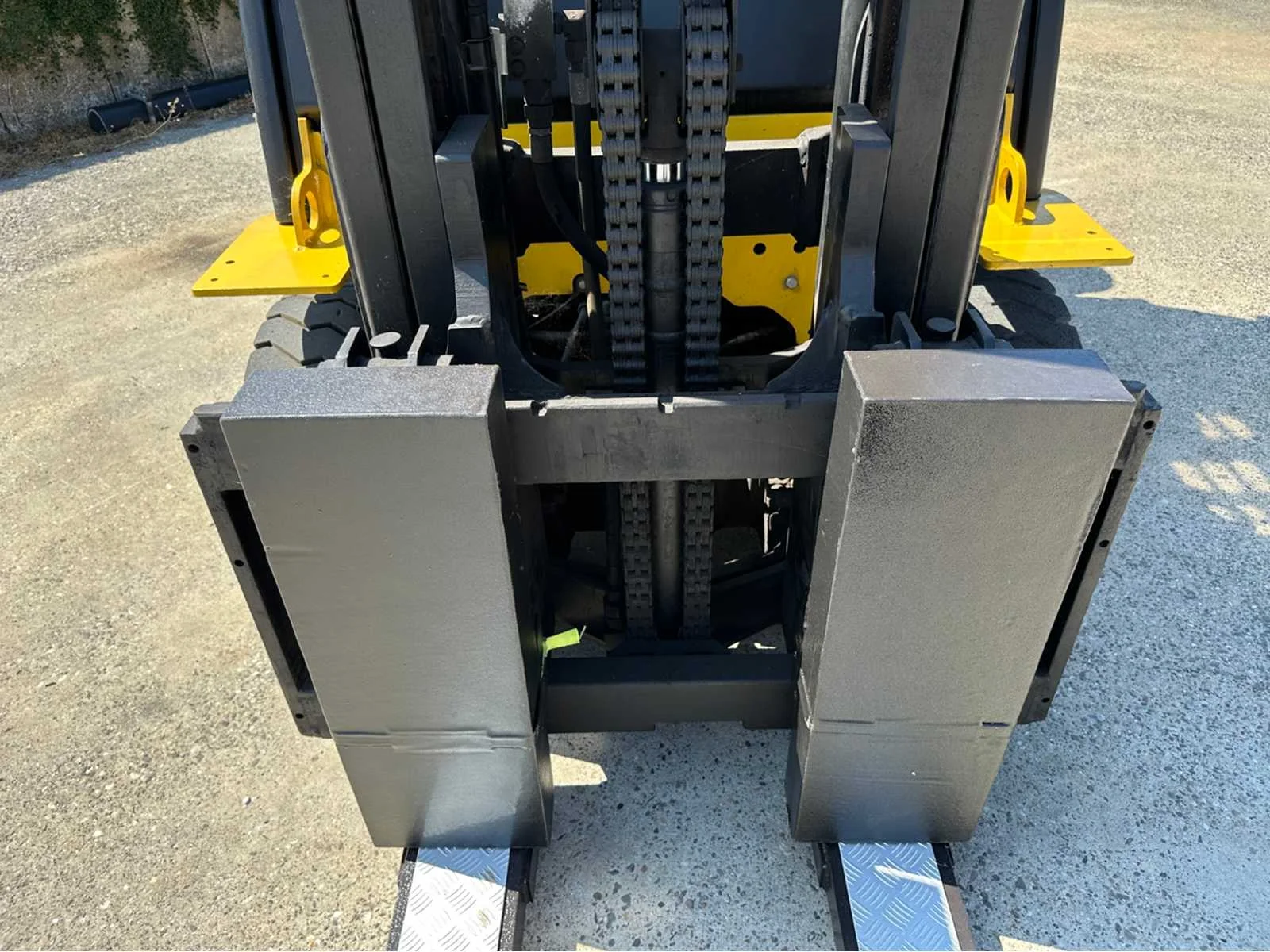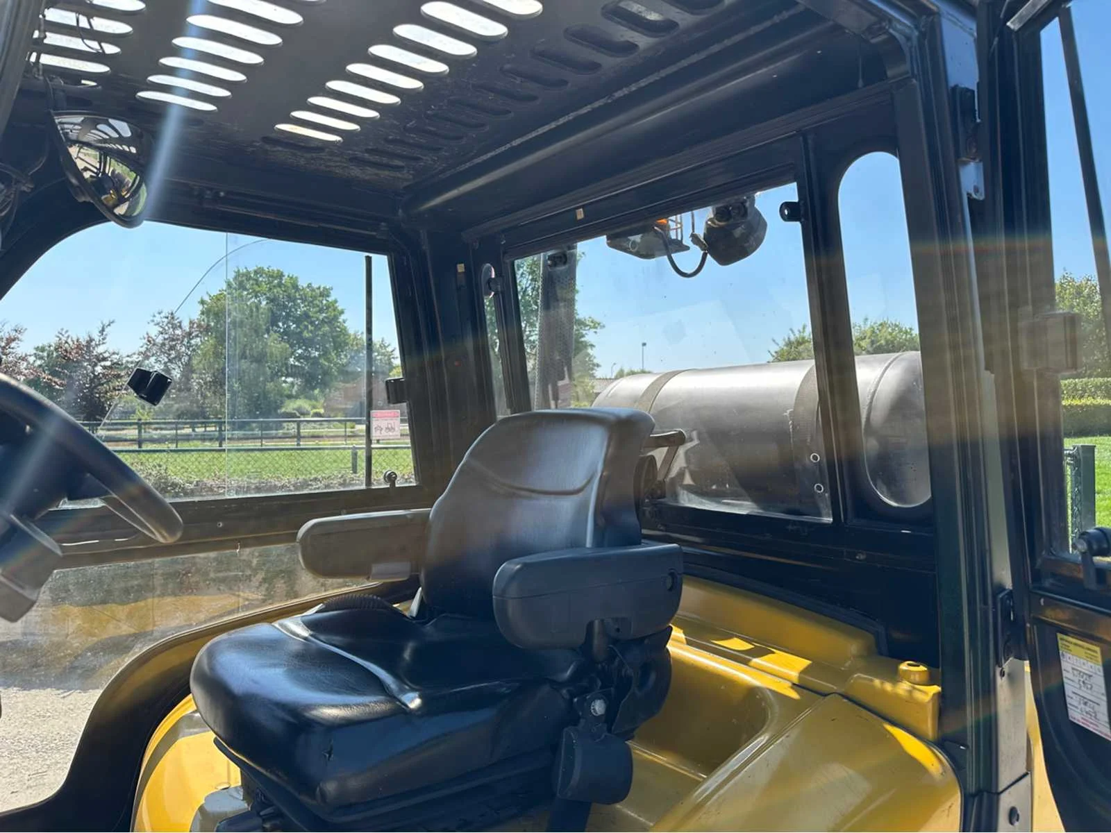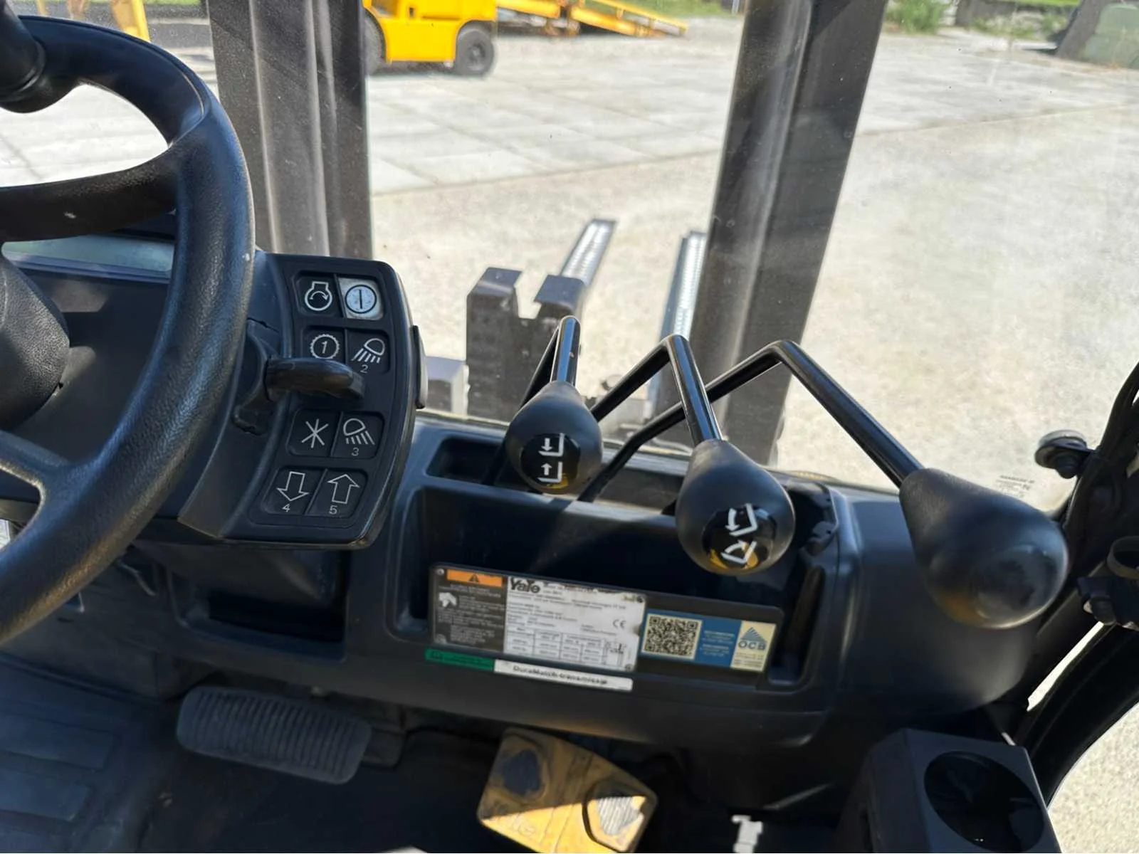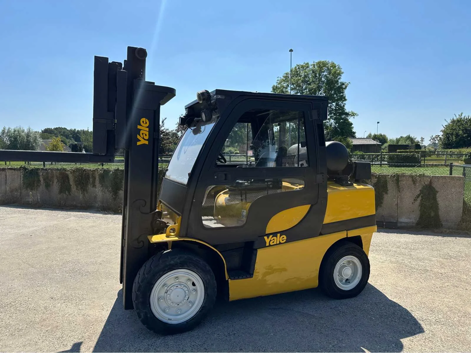 Motor: Kubota WG3800-L-C, Motorvermogen: 63,2 kW bij 2.400 tpm, Cilinderinhoud: 3,769 liter, Aantal cilinders: 4, Emissienorm: Stage IIIA, Transmissie: Hydrostatisch (EW-type),Gewicht: 6.830 kg, Banden: Superelastisch (SE), Draaicirkel: 2,62 m, Maximale rijsnelheid: 25,3 km/u, Cabine: ROPS/FOPS gecertificeerd, zonder lange vorken en contragewicht; Nee Merk: Yale Type: GLP45S Bouwjaar: 2011 Serienummer: G813B02494J Brandstof: LPG Free-lift: true Duplex mast: true Hefvermogen: 4500kg Luchtbanden: true Minimale doorrijhoogte: 2200mm LPG: true