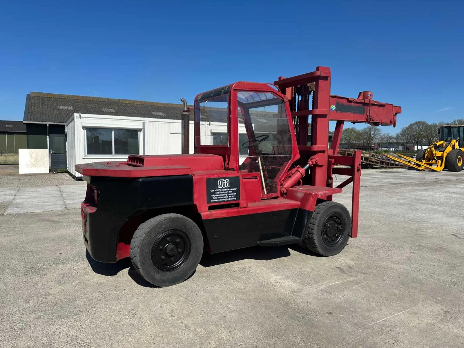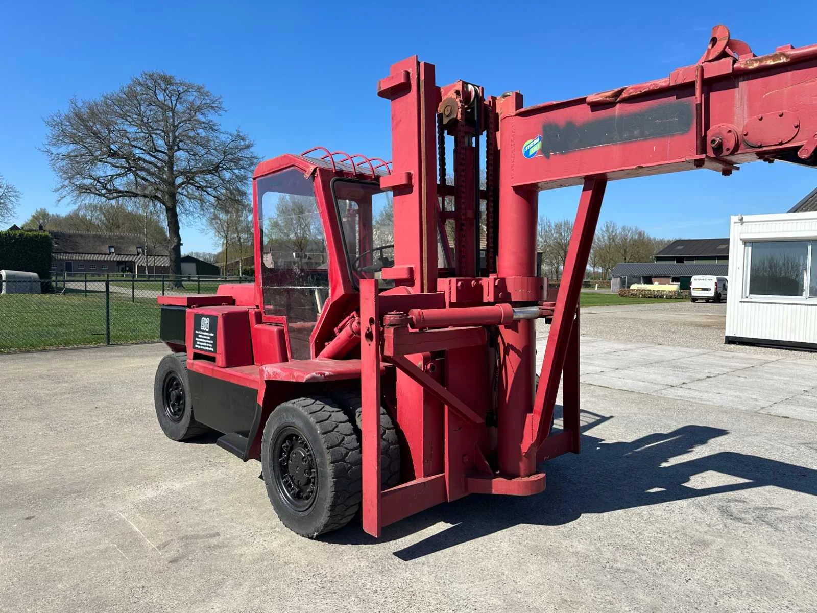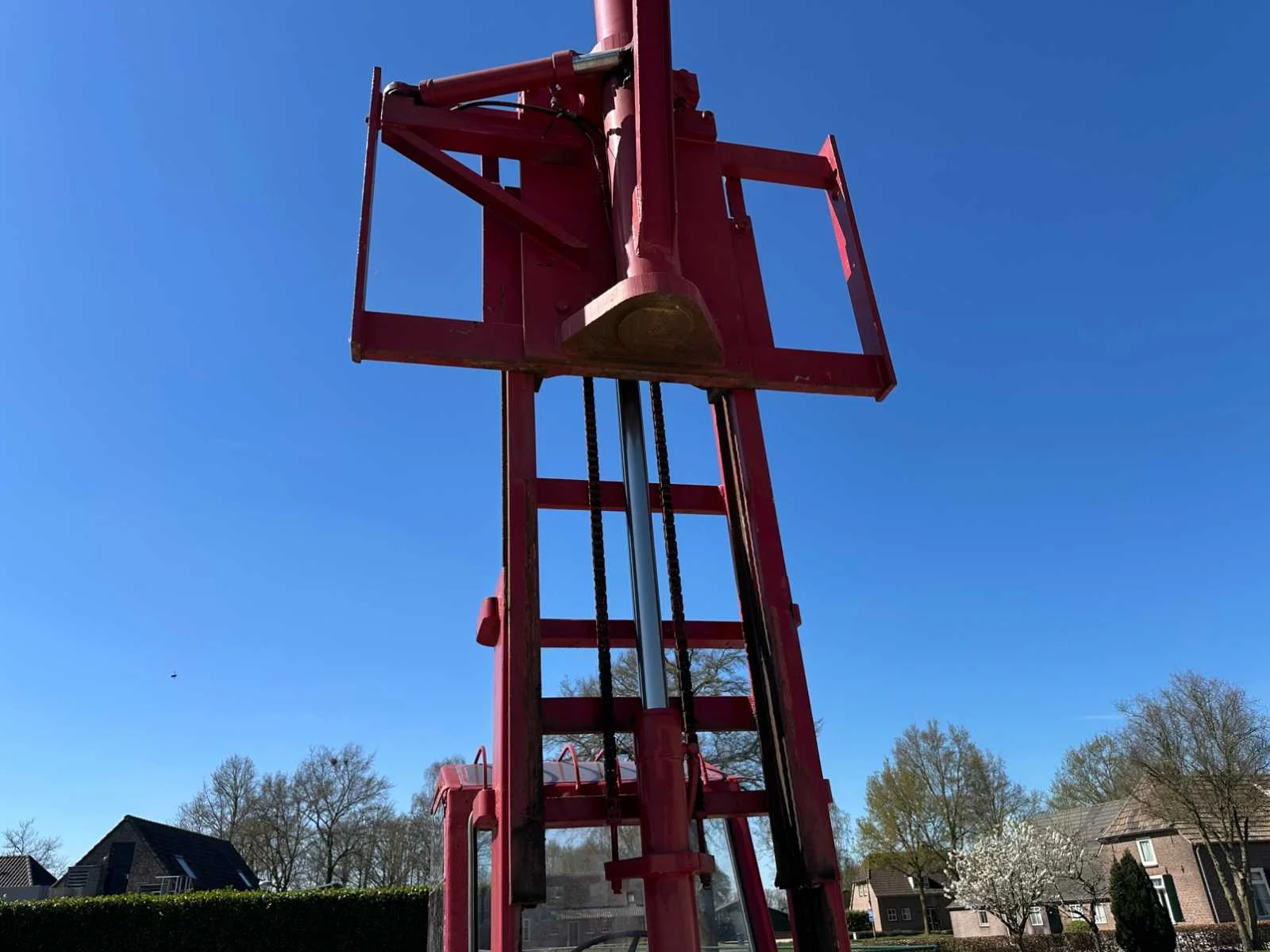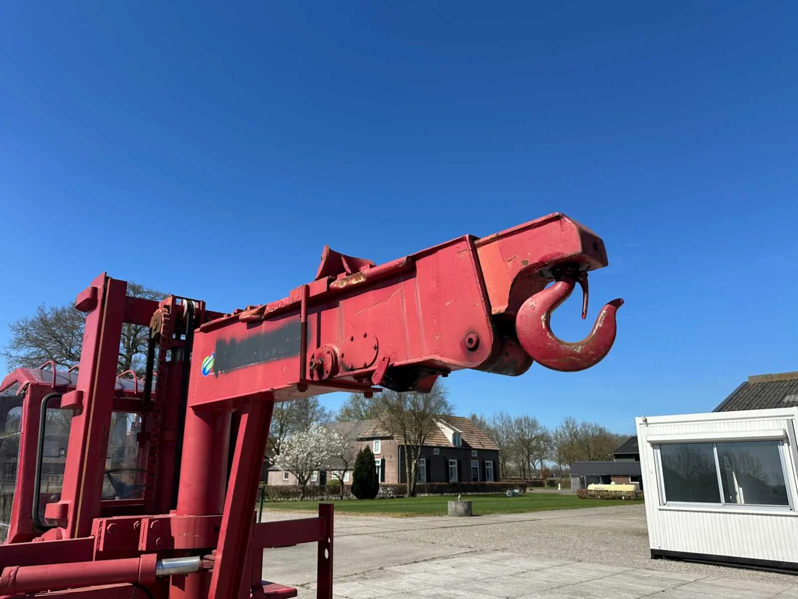Voorzien van: uitschuifbare mast met zwenkfunctie, inclusief rek en stroppen voor boten laden en lossen; start, rijdt heft en daalt; Nee Merk: Clark Brandstof: Diesel Aantal wielen: 6 Afgelezen urenstand: 7992 Roterend vorkenbord: true Eigen gewicht: 11500kg Hefvermogen: 7000kg Vol rubber banden: true Diesel: true