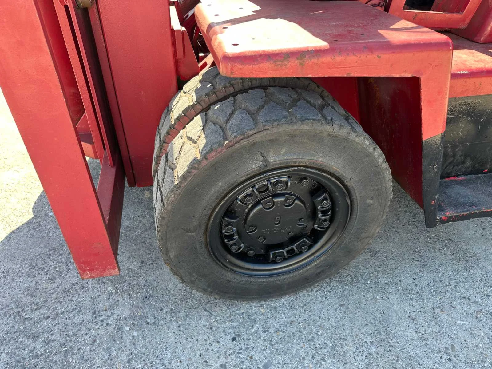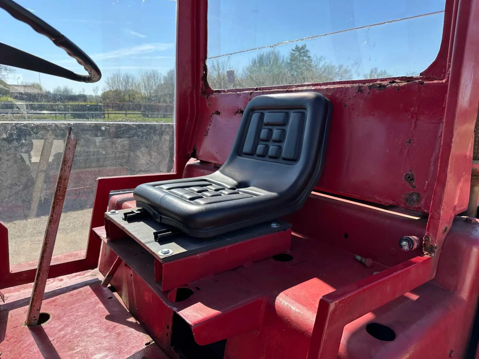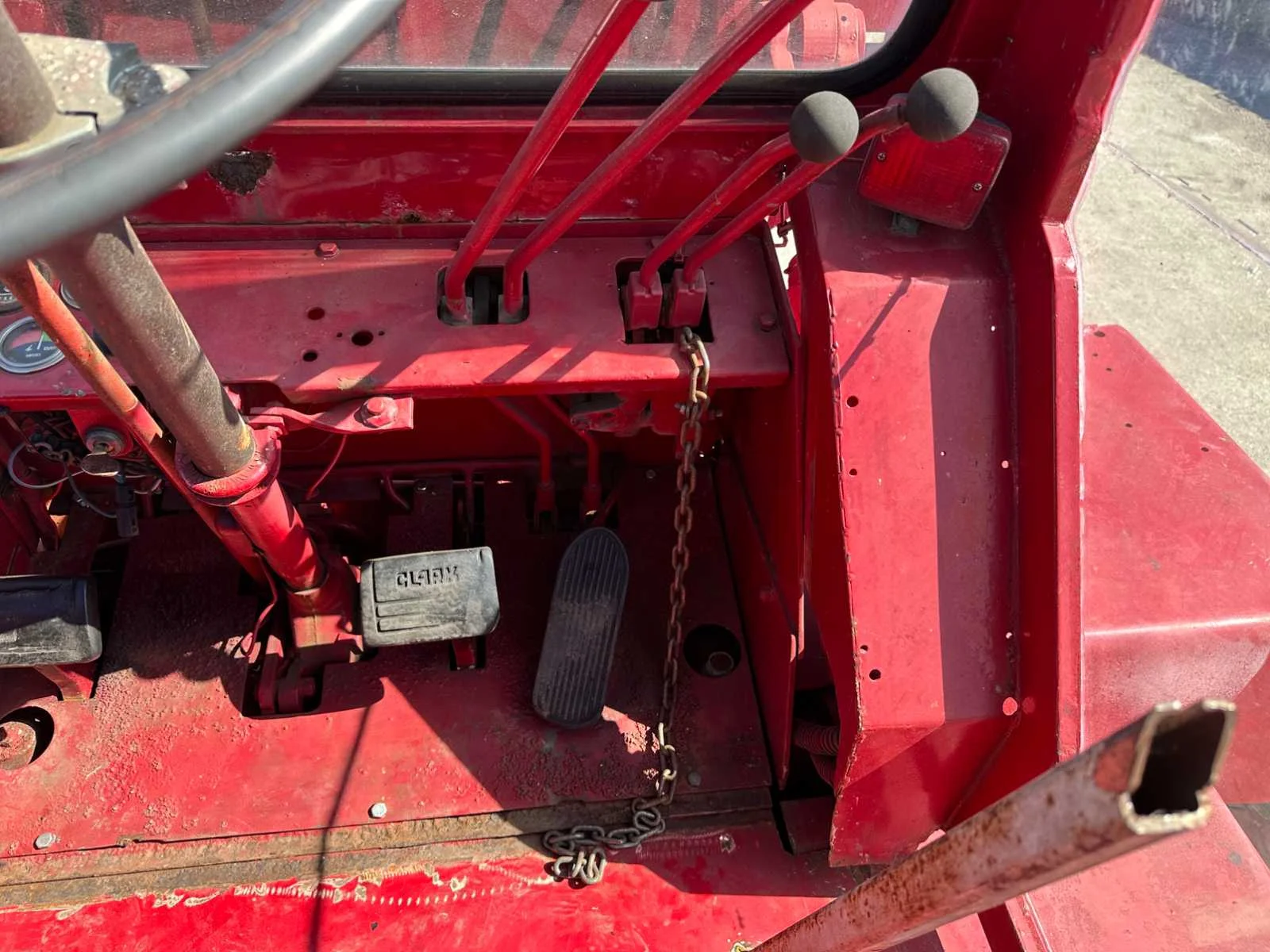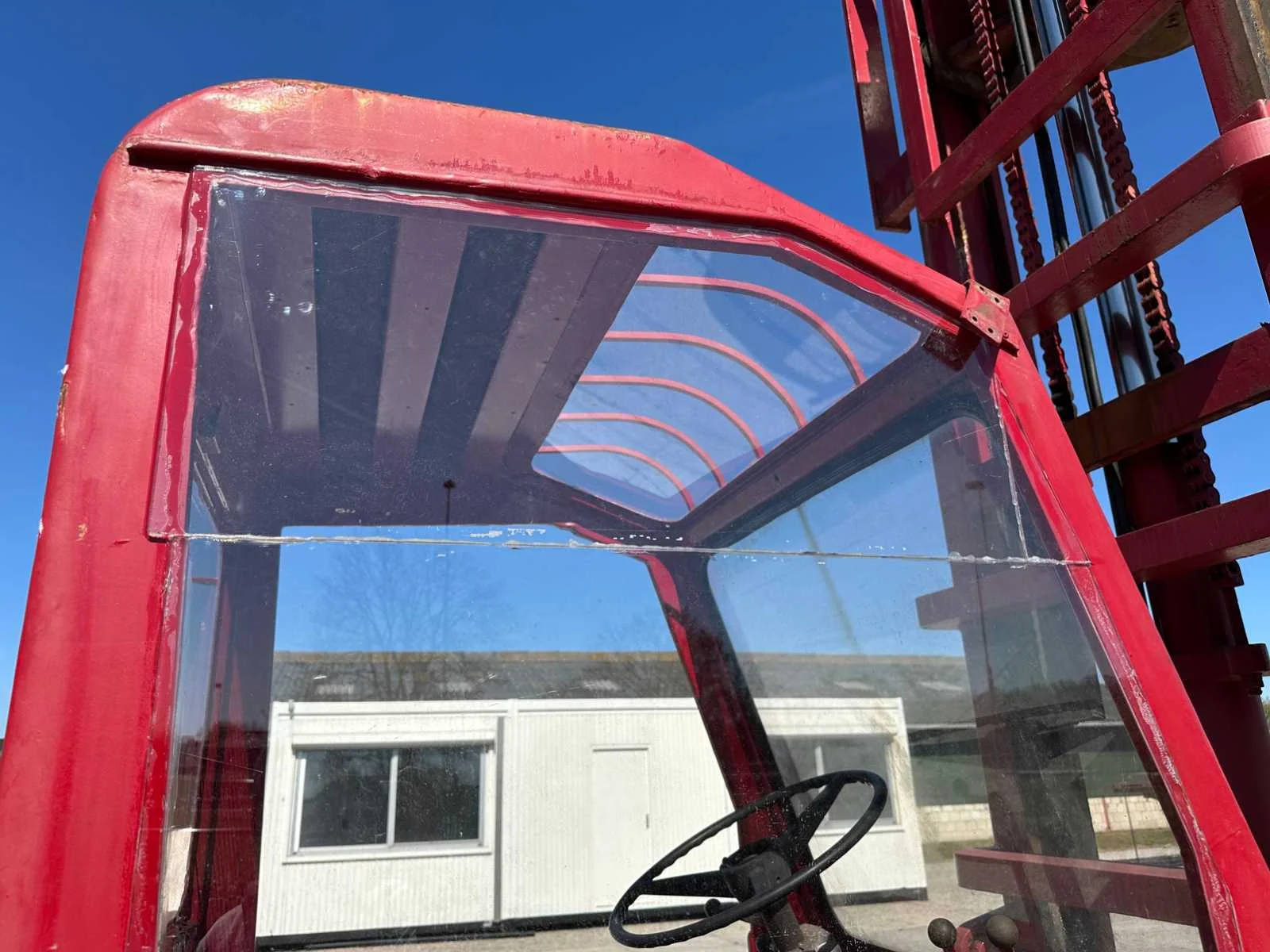 Voorzien van: uitschuifbare mast met zwenkfunctie, inclusief rek en stroppen voor boten laden en lossen; start, rijdt heft en daalt; Nee Merk: Clark Brandstof: Diesel Aantal wielen: 6 Afgelezen urenstand: 7992 Roterend vorkenbord: true Eigen gewicht: 11500kg Hefvermogen: 7000kg Vol rubber banden: true Diesel: true