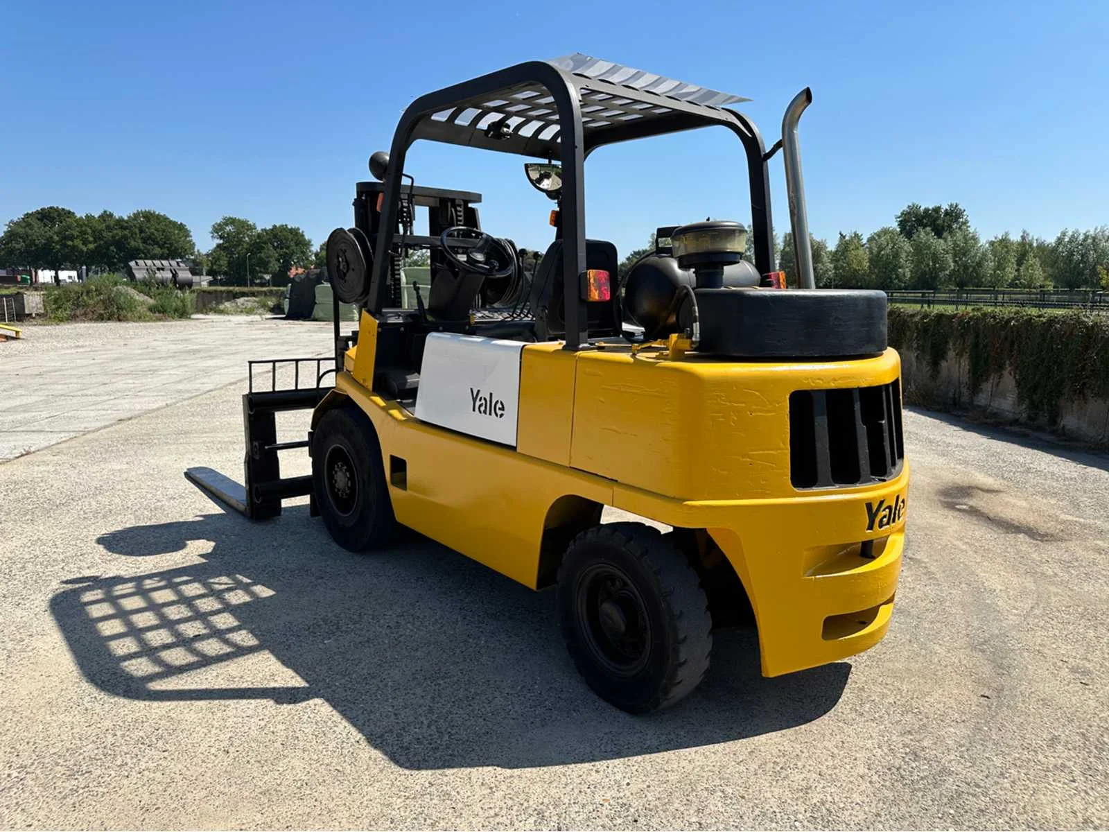 Nee Merk: Yale Type: GLP40MC Bouwjaar: 1991 Serienummer: B00529 Brandstof: LPG Afgelezen urenstand: 6125 Free-lift: true Side-shift: true Hydraulisch verstelbare lepels: true Triple mast: true Hefvermogen: 4000kg Lepellengte: 1500mm Vol rubber banden: true Minimale doorrijhoogte: 2200mm LPG: true