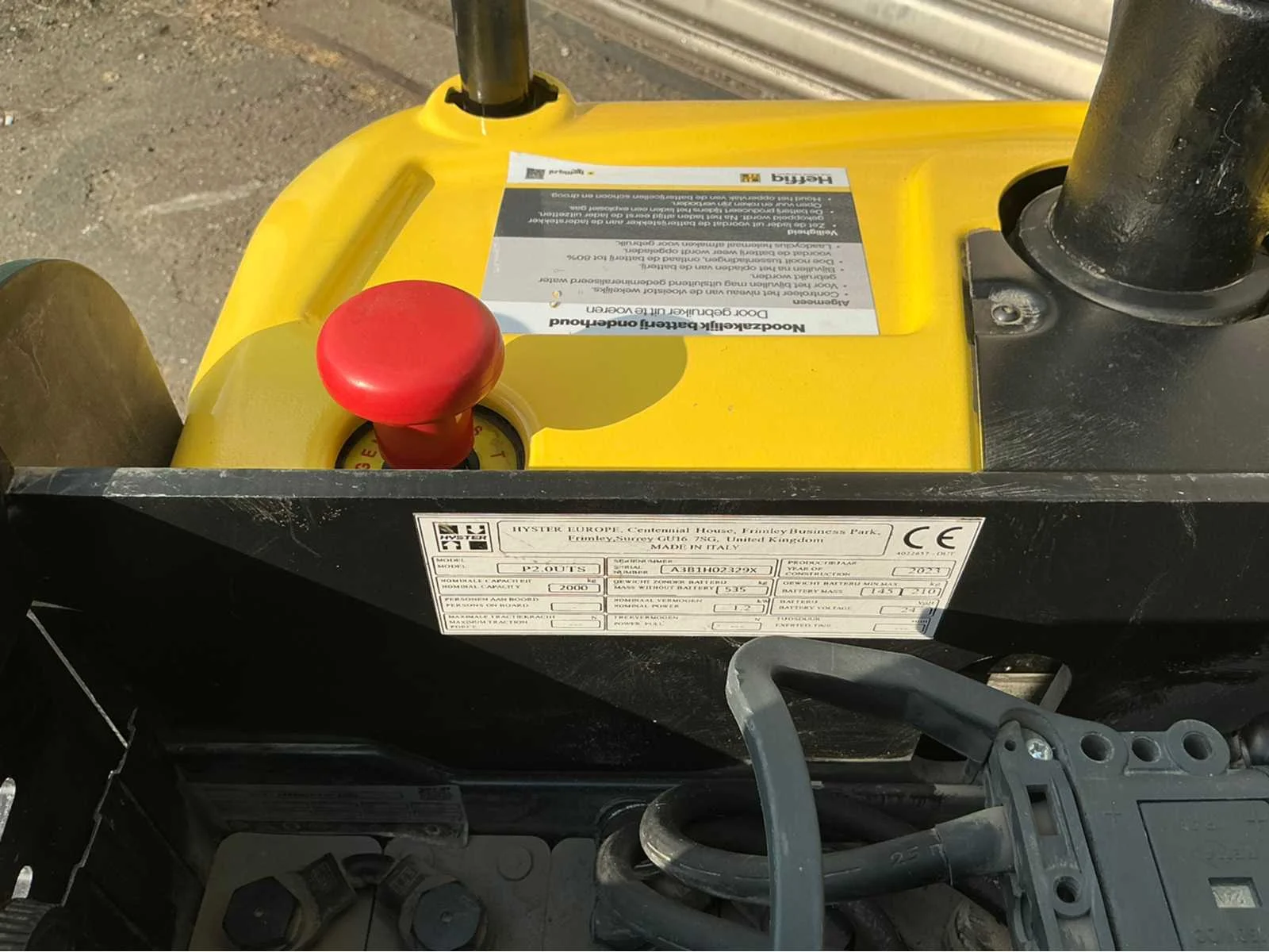 Gewicht zonder batterij 535kg Nee Merk: Hyster Type: P2.0UTS Bouwjaar: 2023 Serienummer: A3B1H02329X Hefvermogen: 2000kg Lepellengte: 1150mm Afgelezen urenstand: 8059 Totale afmeting L: 1800mm Totale afmeting Breedte: 780mm Totale afmeting Hoogte: 1200mm Leveringsvoorwaarden: Heftruck aanwezig op locatie