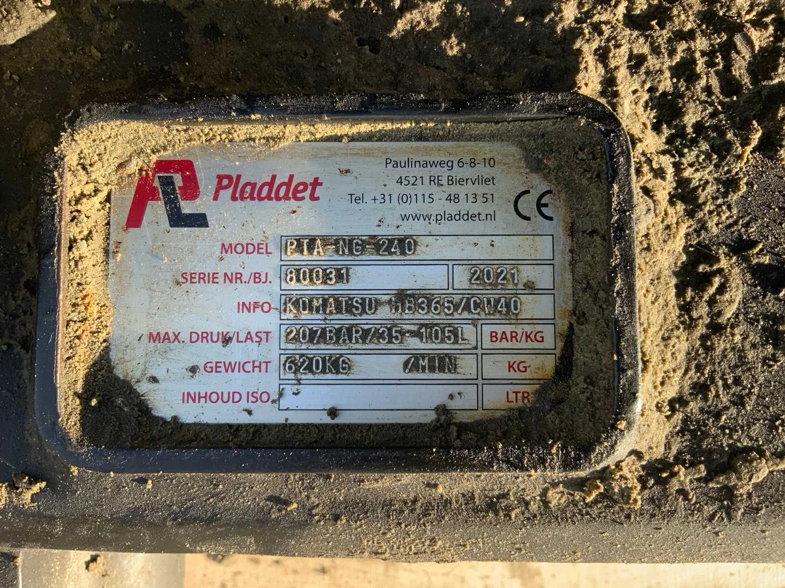 Let op; afdichting van de motor is lek; Pen diameter 2x 80mm; hart op hart ca 5150mm Nee Merk: Pladdet Type: PTA-NG-240 Bouwjaar: 2021 Serienummer: 80031 Bedrijfsgewicht: 620kg Totale afmeting L: 1100mm Totale afmeting Breedte: 660mm Totale afmeting Hoogte: 860mm