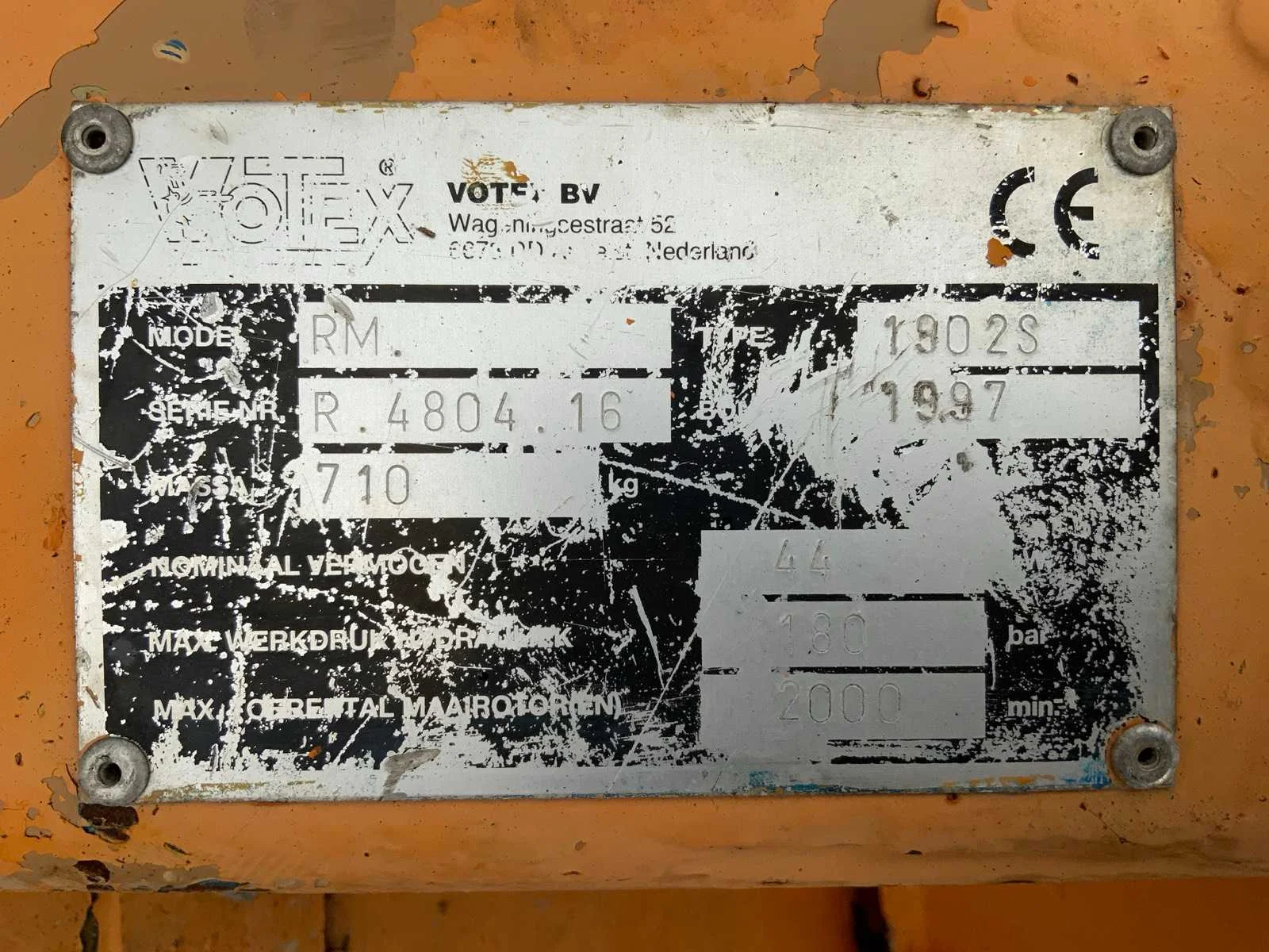 Max toerental 2000; max werkdruk 180 bar; nominale vermogen 44 kW Nee Merk: Votex Type: RM1902S Bouwjaar: 1997 Serienummer: R.4808.16 Gewicht: 710kg Totale afmeting L: 1100mm Totale afmeting Breedte: 1850mm Totale afmeting Hoogte: 2400mm