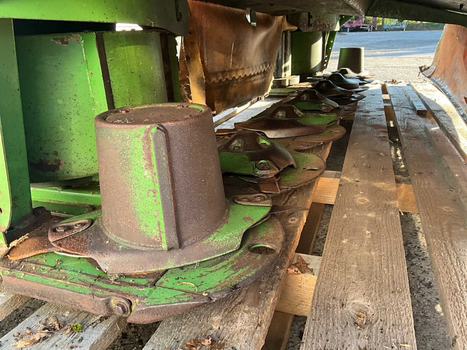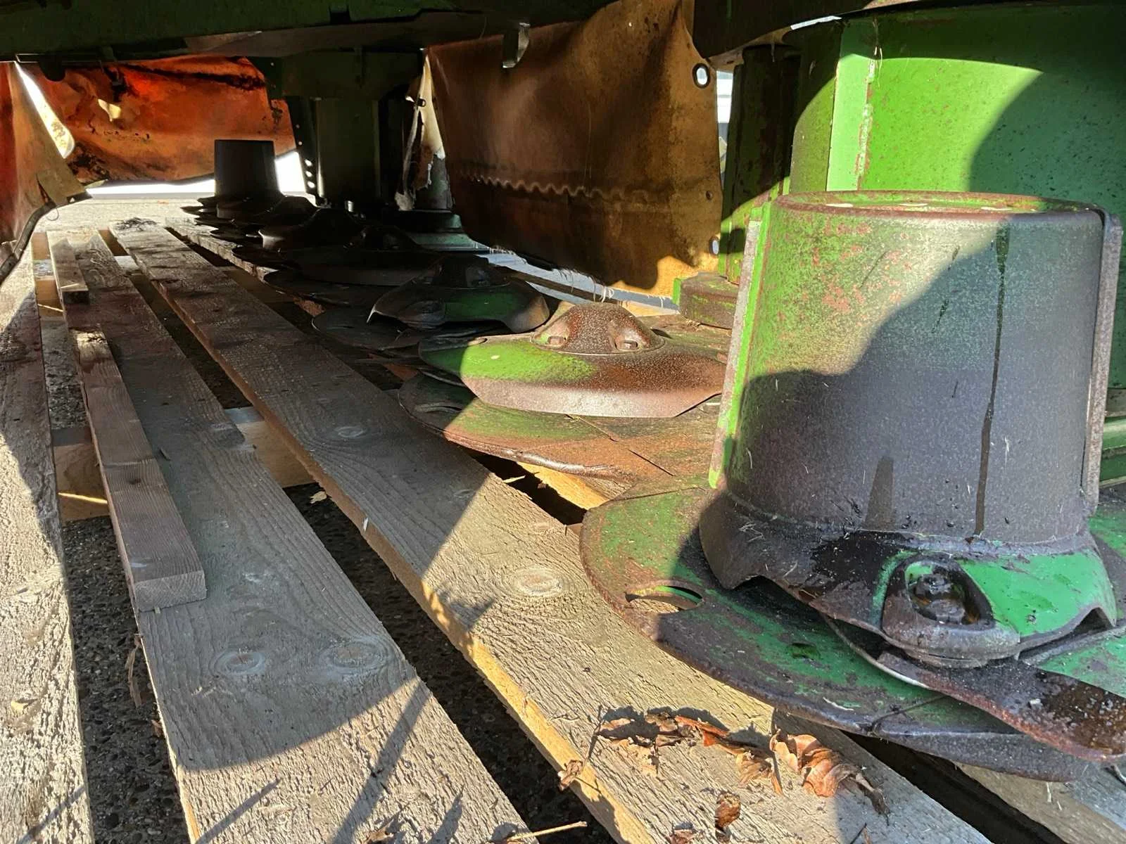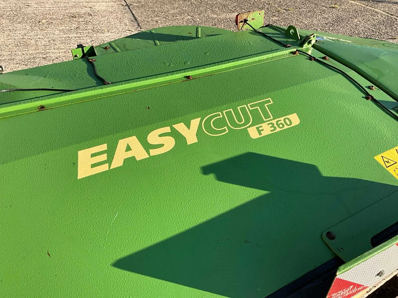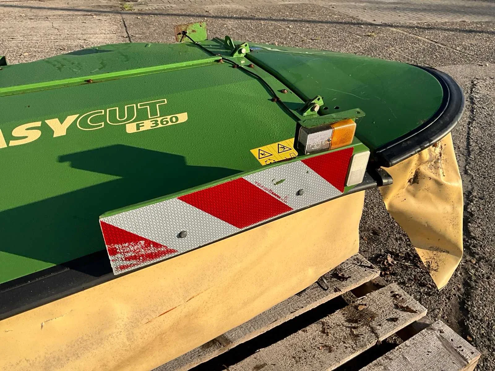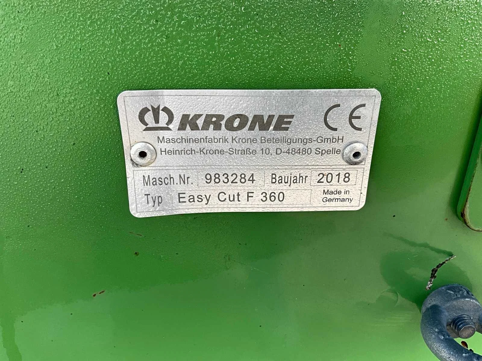 Voorzien van accord aansluiting; 8 schijven met messen; afneembare/ neerklapbare zijschudden; verhoogde slijtschoffen; verlichting Nee Merk: Krone Type: Easy Cut F360 Bouwjaar: 2018 Serienummer: 983284 Werkbreedte: 3600mm