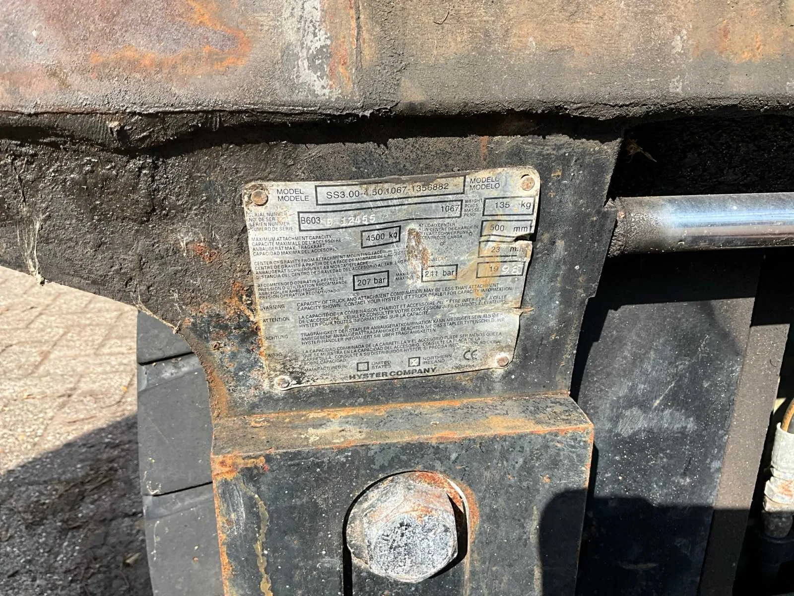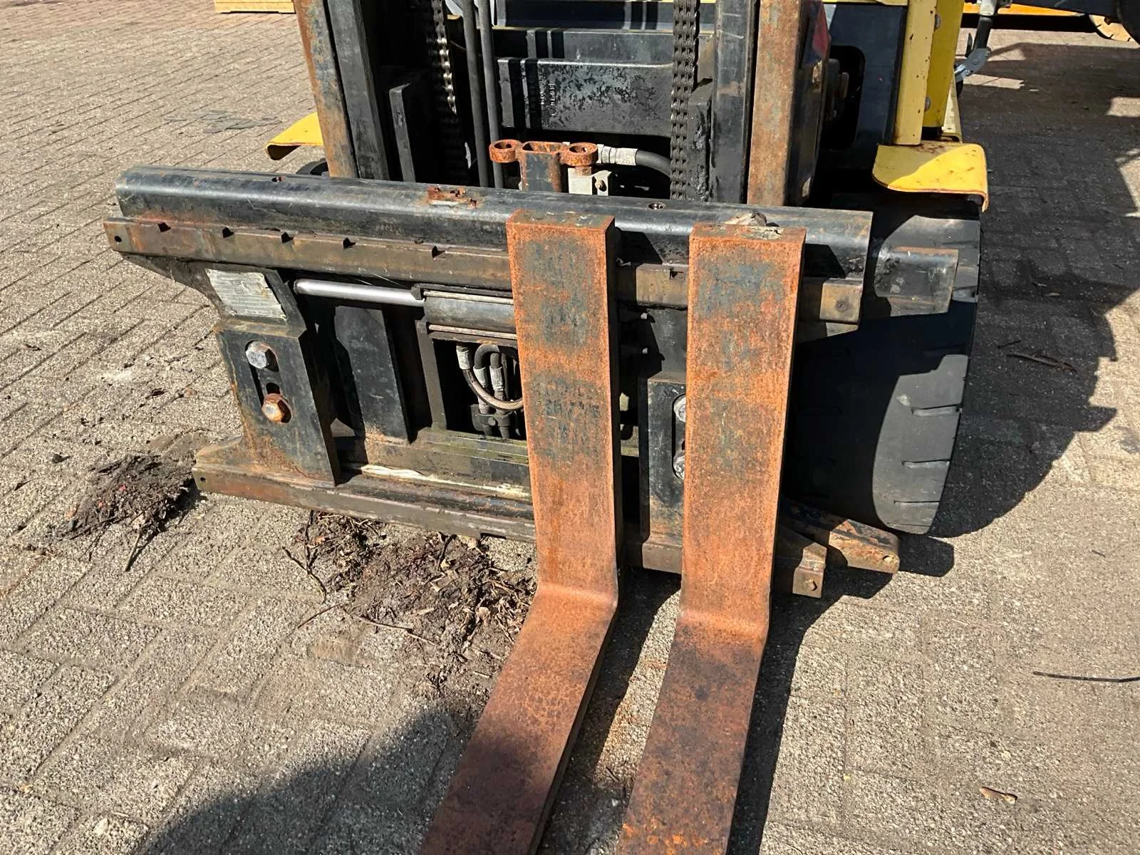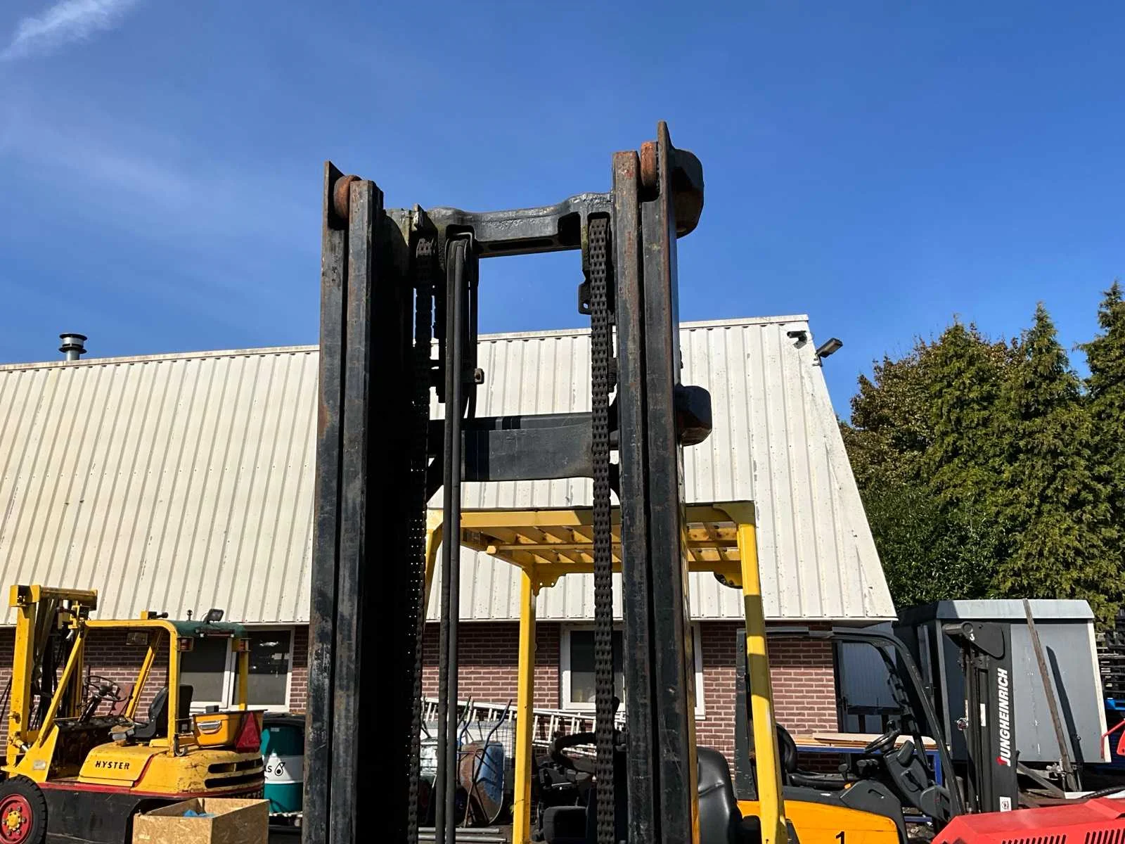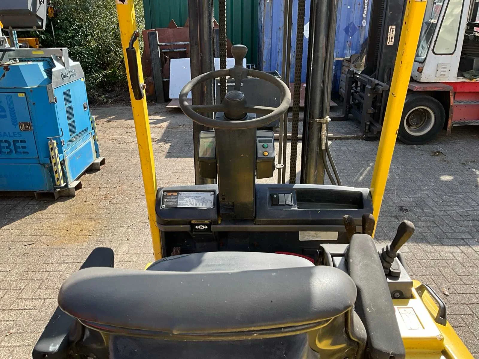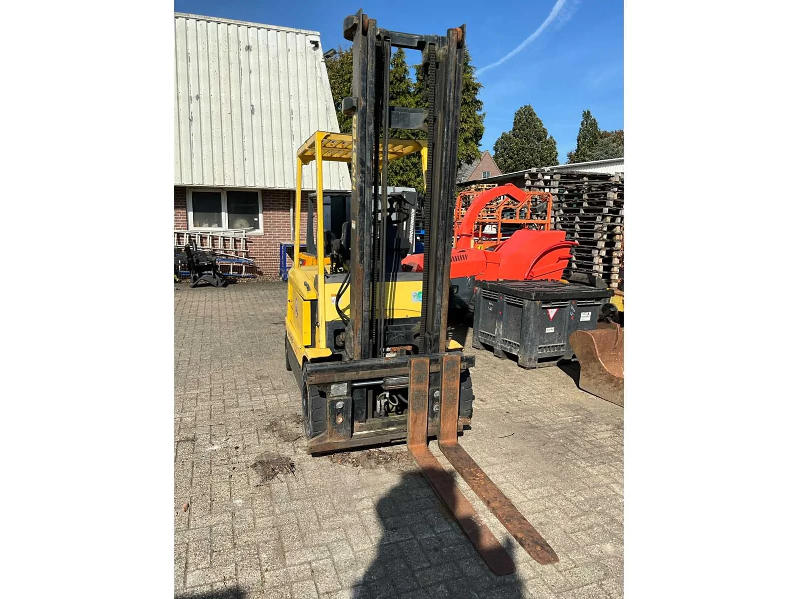 Let op, rijdt niet! Accupakket staat los van de machine i.v.m. transport Nee Merk: Hyster Type: J3.00 XM Bouwjaar: 1999 Serienummer: A216A03810W Brandstof: Elektrisch Mast: Duplex Soort band: Volrubber banden Aantal wielen: 4 Accu lader: true Side-shift: true Duplex mast: true Hefvermogen: 3000kg Lepellengte: 1200mm Max. hefhoogte: 4205mm Vol rubber banden: true Minimale doorrijhoogte: 2750mm Totale afmeting L: 2720mm