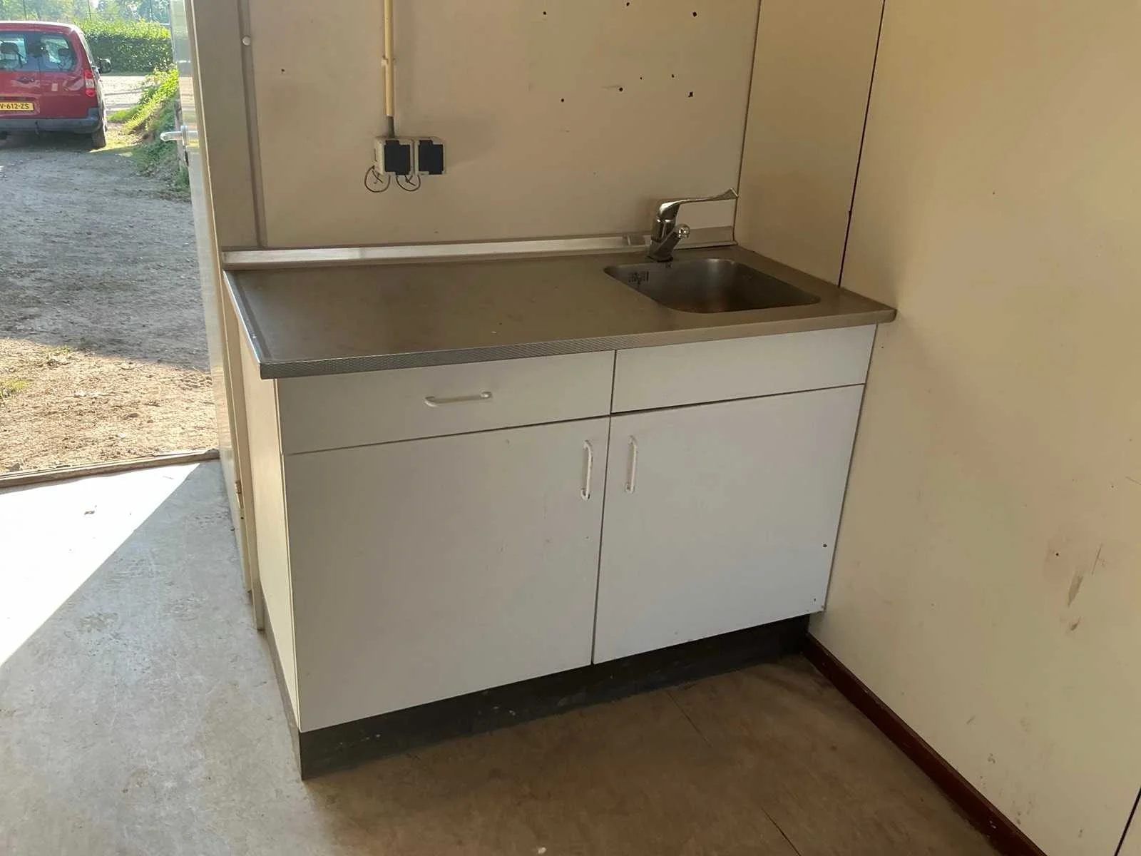 Voorzien van keukenblok met boiler, elektrische radiator, elektra aansluiting, slede, geïsoleerd. Kavel kan geladen worden bij de koper. Nee Aantal ramen: 2 Keukenblok: true Toilet: true Totale afmeting L: 6000mm Totale afmeting Breedte: 2550mm Totale afmeting Hoogte: 2900mm