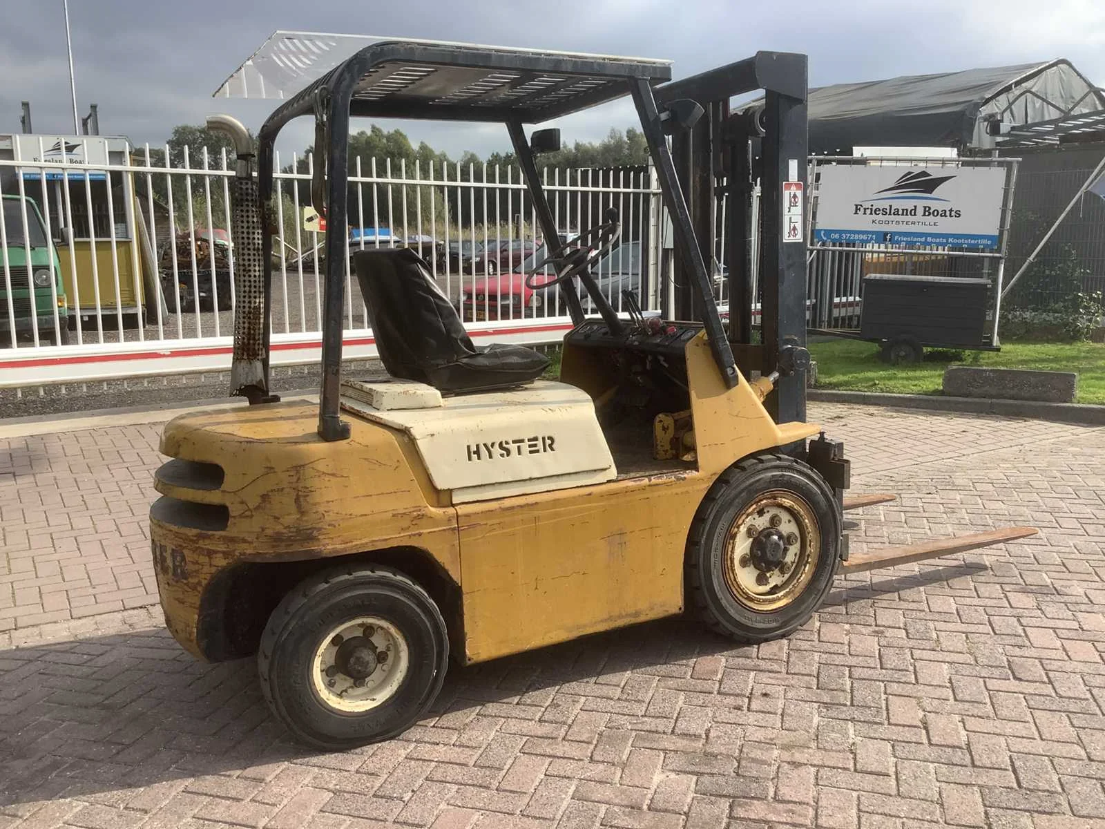 Rijdt en alles functioneert Nee Merk: hyster Type: H50 Bouwjaar: 1995 Serienummer: h503580395 Brandstof: diesel Mast: duplex Aantal wielen: 4 Afgelezen urenstand: 716166 Side-shift: true Duplex mast: true Hefvermogen: 2500kg Lepellengte: 120mm Min. hefhoogte: 10mm Max. hefhoogte: 320mm Hefhoogte: 320mm Vol rubber banden: true Minimale doorrijhoogte: 190mm Totale afmeting L: 380mm Totale afmeting Breedte: 115mm Totale afmeting Hoogte: 220mm Diesel: true