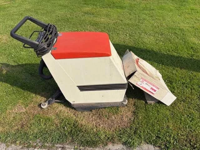 Schrobzuigmachine * Fabrikant: Hako * Model: Hakomatic B43 * Functie: Schrobzuigmachine (ook wel vloerreinigingsmachine genoemd). Kenmerken: Deze machines worden vaak gebruikt in commerciële en industriële omgevingen voor efficiënte vloerreiniging. Ze kunnen worden uitgerust met verschillende accessoires zoals borstels of pads en zuigrubbers No Merk: Hako Model: Hakomatic B43