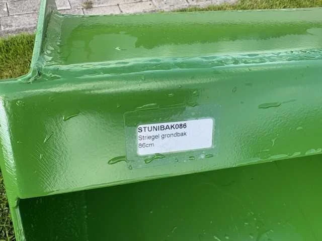 Grondbak tbv Striegel wiellader * 86 cm. breedte * Striegel koppeling No Merk: Striegel Type: bak 86 Afmeting l: 940mm Afmeting b: 860mm Afmeting h: 600mm