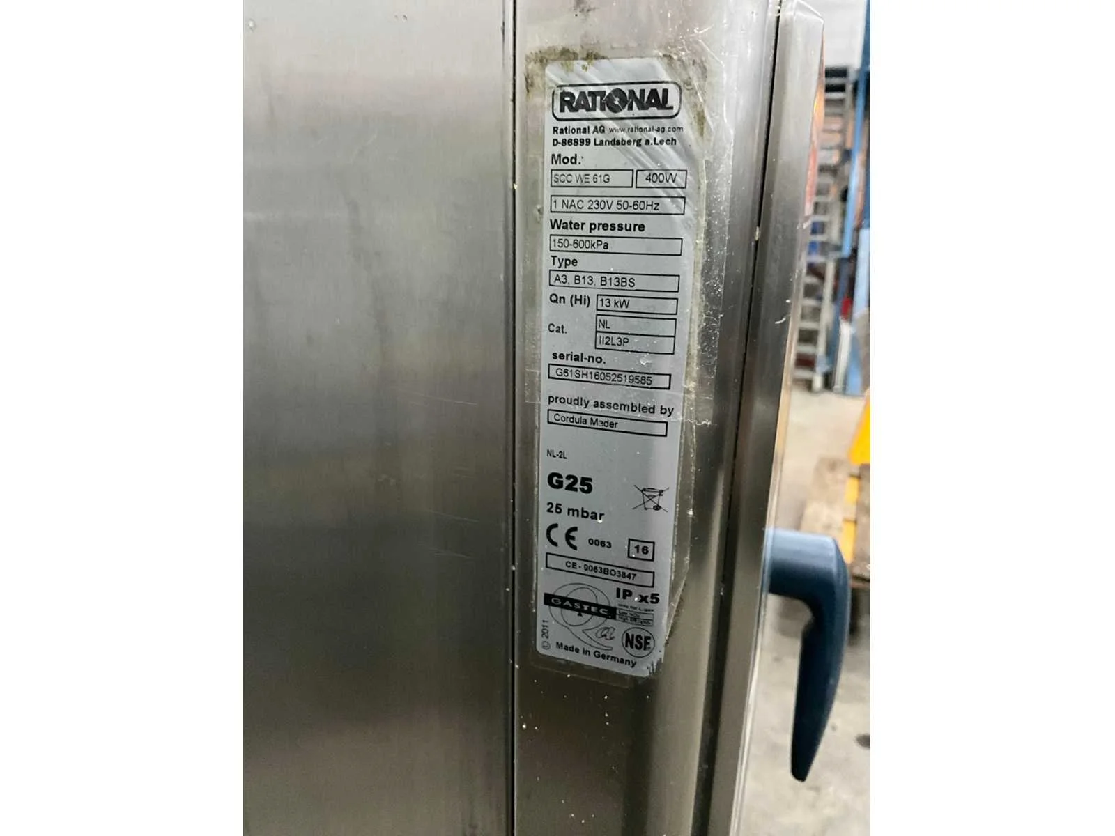 Aardgas; voor 6-laags 1/1 gn.; Nee Merk: Rational Bouwjaar: 2016 Type: SCC WE 61 G Materiaal: rvs Aantal niveau's: 6 Vermogen: 13000W Aansluiting: 230V Touchscreen bediening: true Gas: true Rvs: true Totale afmeting L: 85cm Totale afmeting Breedte: 85cm Totale afmeting Hoogte: 83cm
