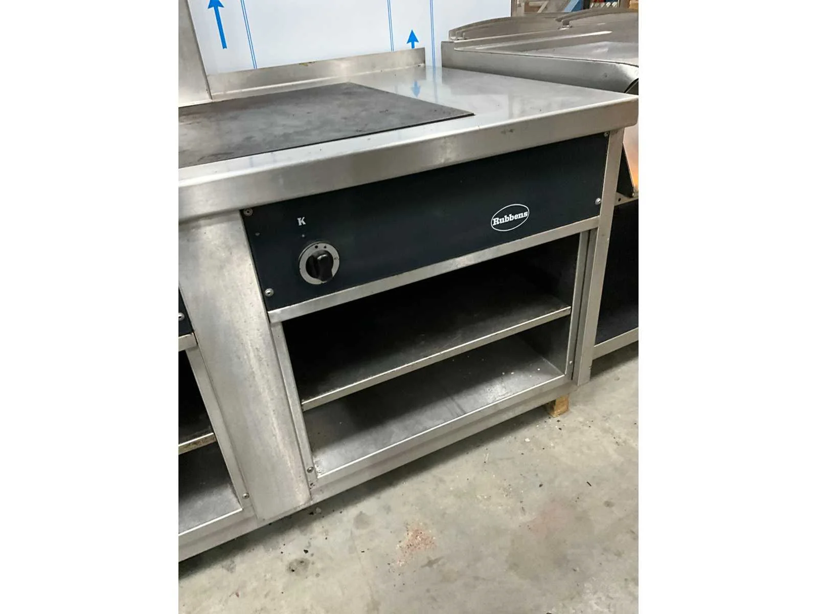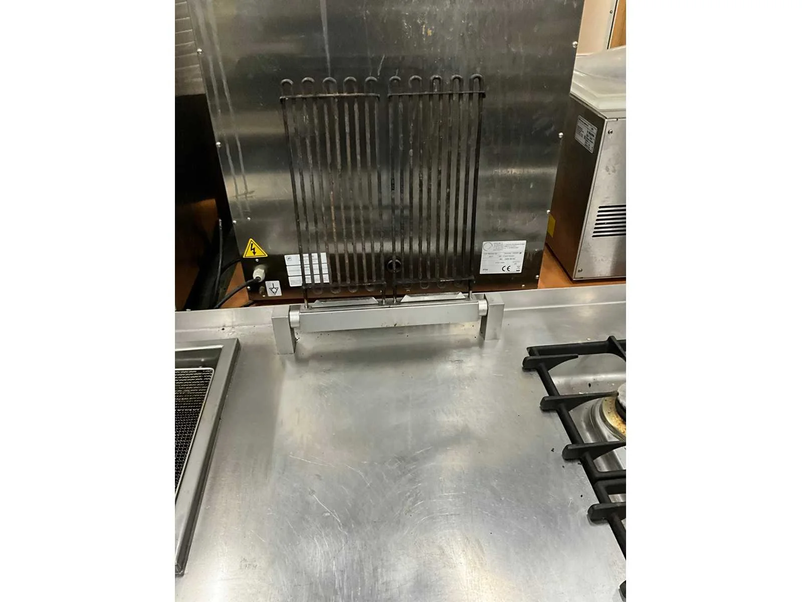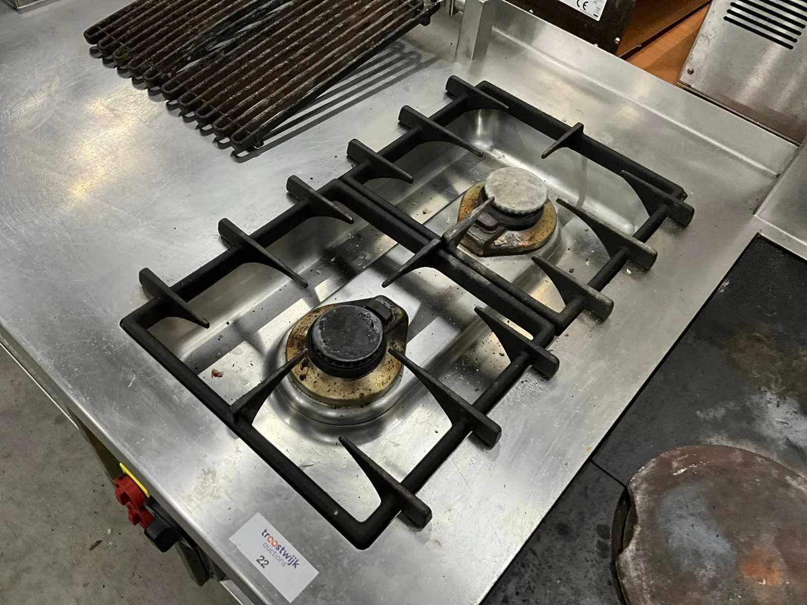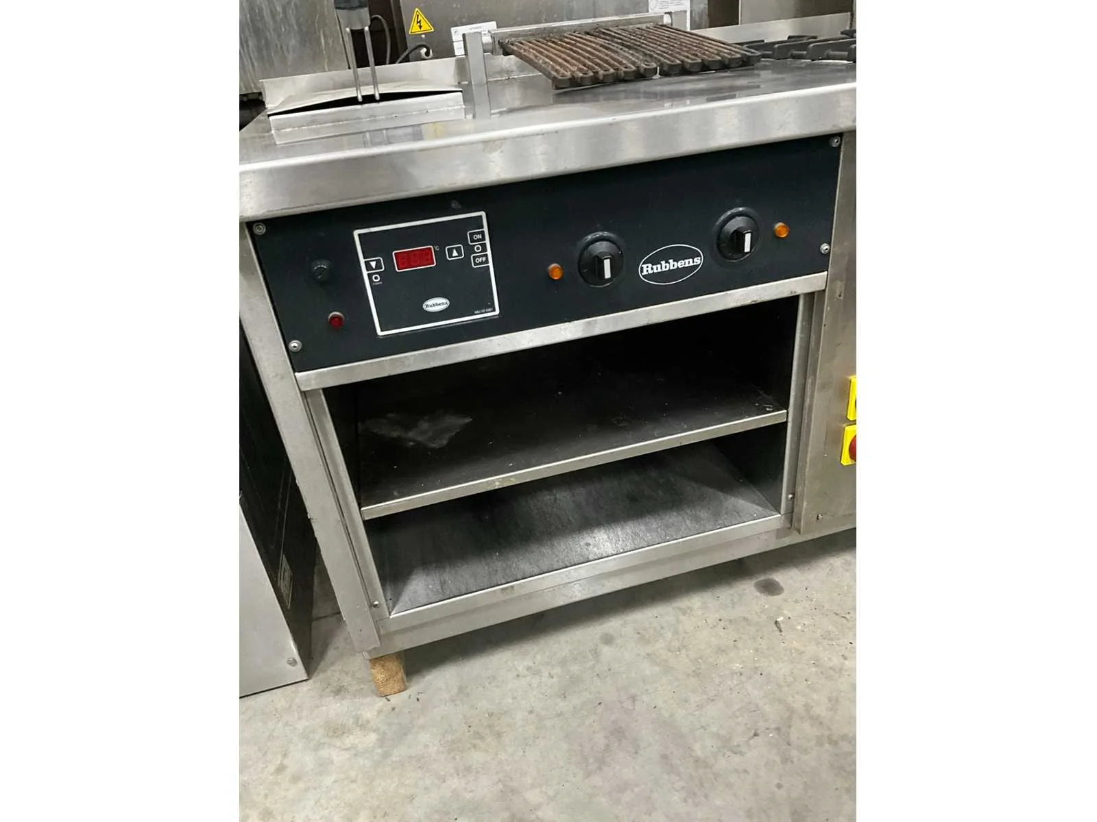 Bestaande uit friteuse 6 kW watergrill 3,2 kW.; 2 pits fornuis 10 kW; doorkookplaat 9,5 kW Nee Merk: Rubbens Model: Bistro-SP Lengte: 235cm Breedte: 80cm Hoogte: 80cm Materiaal: rvs