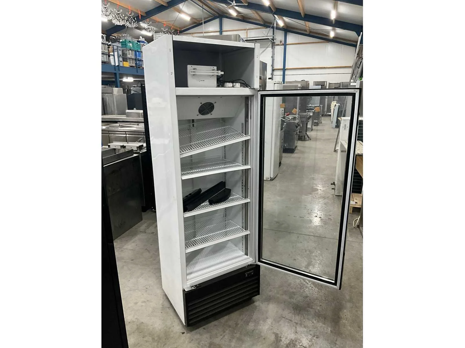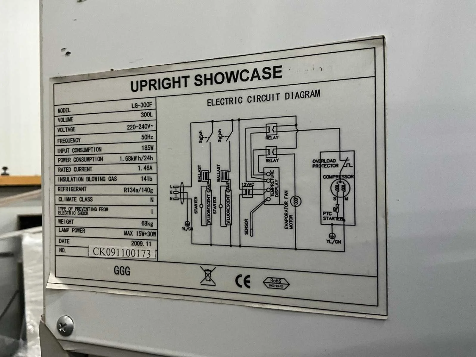 185 watt.; bovenkant verlichtingsbak ontbreekt. Nee Merk: GGG Type: LG-300F Aansluiting: 230V Capaciteit.: 300l Totale afmeting L: 62cm Totale afmeting Breedte: 55cm Totale afmeting Hoogte: 192cm