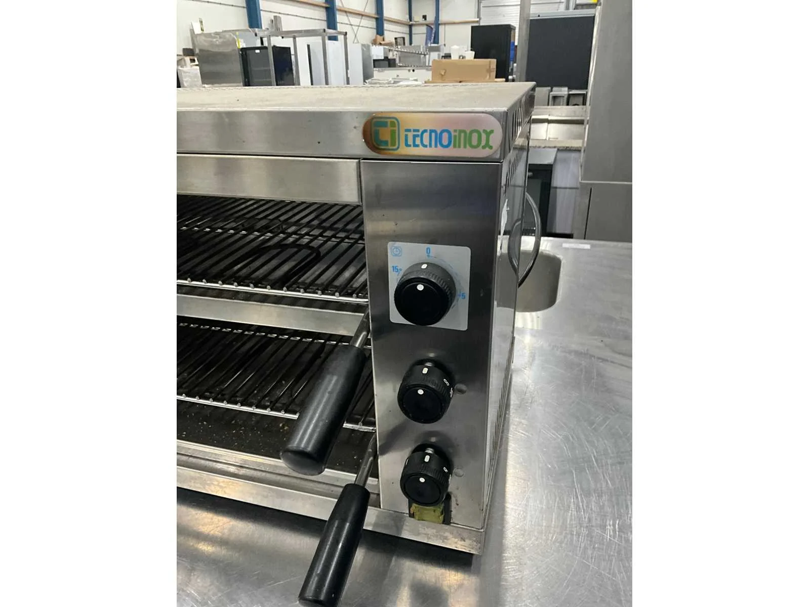 230 volt; 4 kw. Nee Merk: Tecnoinox Type: TSP/0 Materiaal: rvs Totale afmeting Breedte: 670mm Totale afmeting L: 350mm Totale afmeting Hoogte: 370mm