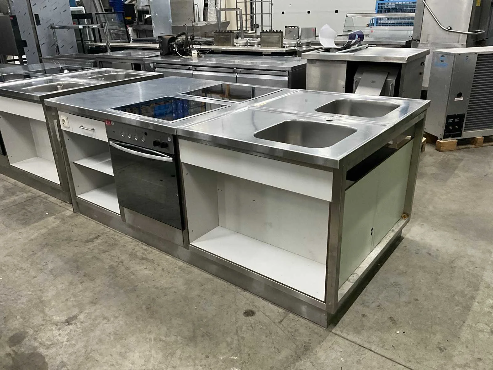 Voorzien van Bosch 4-pits kookplaat; Etna inbouw oven en dubbele spoelbak. Nee Merk: Bosch & Etna Model: A 7300 Materiaal: rvs Totale afmeting Breedte: 2200mm Totale afmeting L: 1200mm Totale afmeting Hoogte: 900mm