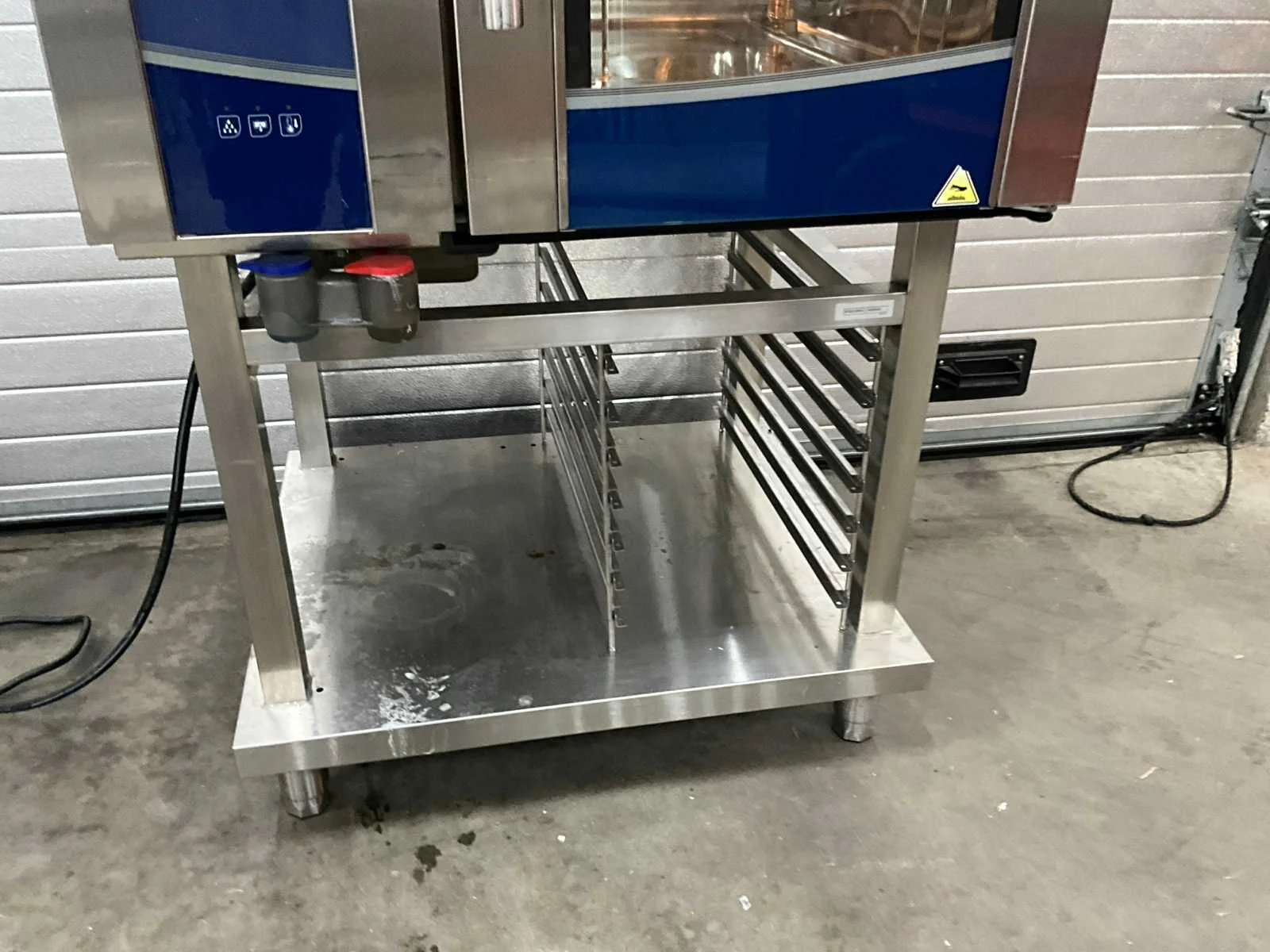 Voorzien van rvs onderstel van 1 x 7-laags 1/1 gn. Nee Merk: Electrolux Bouwjaar: 2009 Type: AOS061EAA1 Aantal niveau's: 6 Vermogen: 10100W Aansluiting: 400V Elektrisch: true Rvs: true Totale afmeting L: 90cm Totale afmeting Breedte: 93cm Totale afmeting Hoogte: 150cm