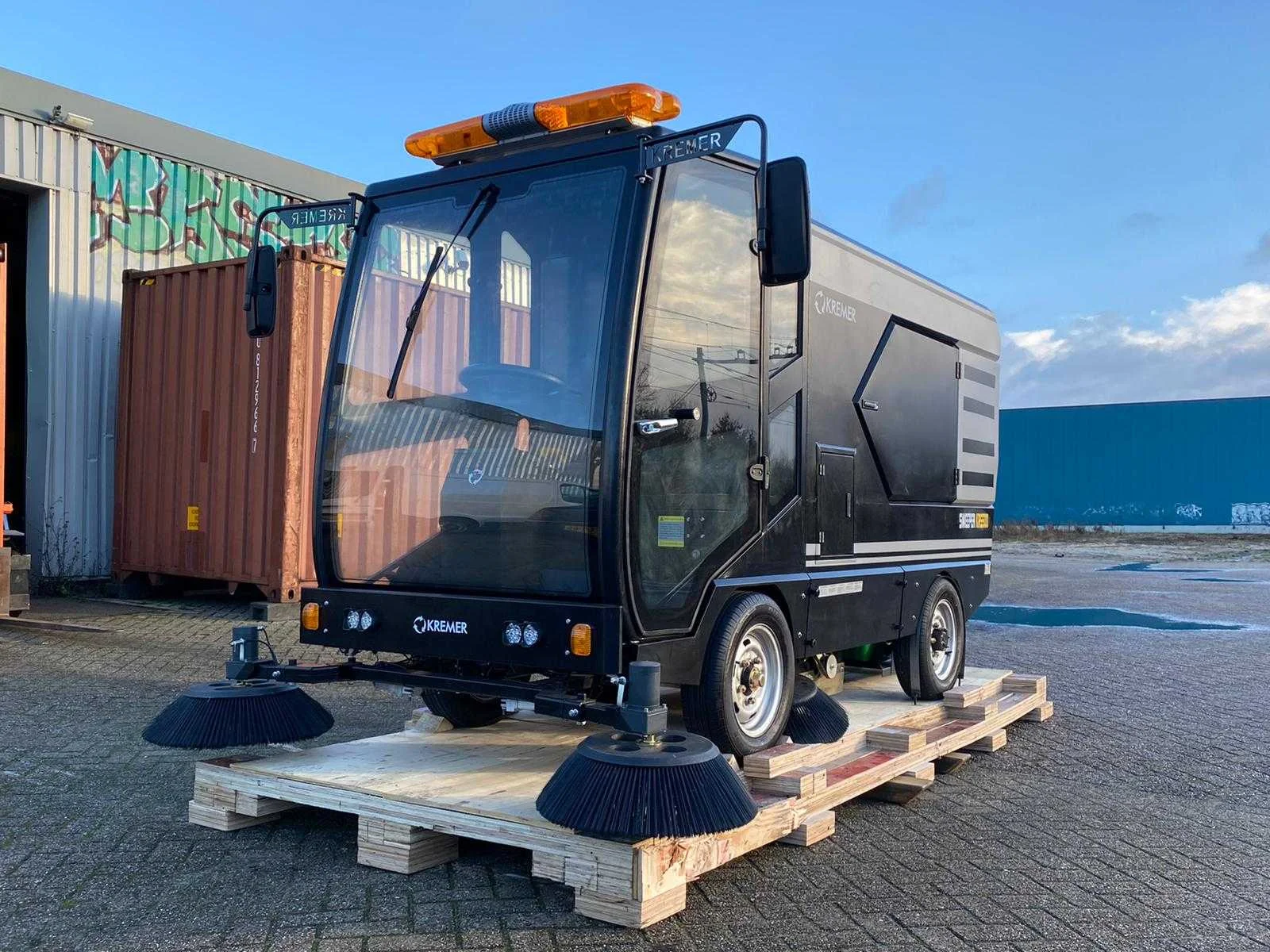 Ongebruikt Veegbreedte: 2.200 mm Inhoud vuilcontainer: 240 liter Laadtijd: 6,5 uur Werkduur: 5 uur Totaalgewicht: 1.580 kg Aandrijving: 48 V / 300 Ah accu Hoofdborstelmotor: 800 W × 2 Zijborstelmotor: 90 W × 4 Zuigmotor: 50 W × 2 Aandrijfmotor: 500 W Stoftrilmotor: 50 W × 2 Maximale hellingshoek: 25 % Rijsnelheid: 0 – 25 km/u Antislipregeling: Ja Beizichting op afspraak Nee Merk: Kremer Type: KRS500 Bouwjaar: 2025 Werkbreedte: 2200mm Elektrisch: true Afgelezen urenstand: 1hr Accu lader: true Aansluiting: 48V Eigen gewicht: 780kg Totale afmeting L: 3950mm Totale afmeting Breedte: 2050mm Totale afmeting Hoogte: 2000mm