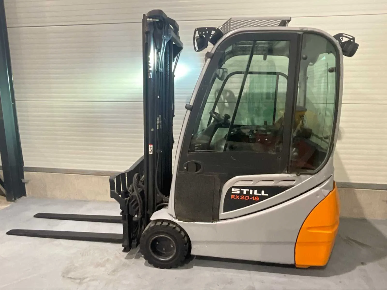 Extra opties : Accu uit 2020 , Led verlichting voor en achter , blue spot , volledige cabine , lepelversteller , verwarming , Nee Merk: Still Type: RX20-18 Bouwjaar: 2017 Serienummer: 516213H00032 Mast: Triple Soort band: Volrubber banden Aantal wielen: 3 Free-lift: true Side-shift: true Hydraulisch verstelbare lepels: true Triple mast: true Eigen gewicht: 3477kg Hefvermogen: 1800kg Hefhoogte: 5070mm Totale afmeting L: 3450mm Totale afmeting Breedte: 1150mm Totale afmeting Hoogte: 2280mm