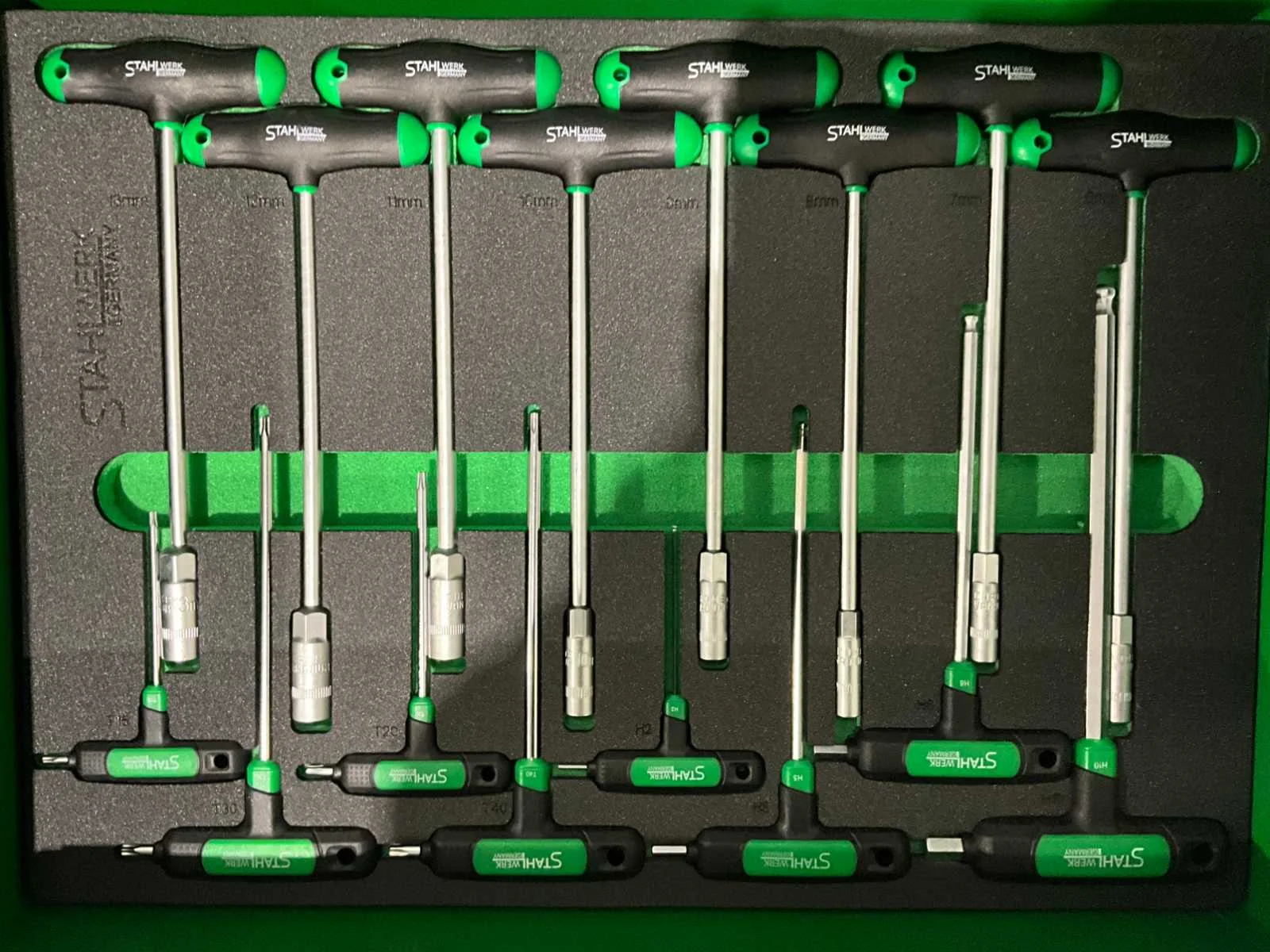 Ongebruikt , 3 stopcontacten , 2 usb poorten 13 stuks 1/4” doppen: 4-4,5-5-5,5-6-7-8-9-10-11-12-13-14mm 10 stuks 3/8” doppen: 13-14-15-16-17-18-19-20-21-22mm 14 stuks 1/2” doppen: 12-13-14-15-17-18-19-21-22-23-24-27-30-32mm 12 st. 1/2” dopsleutel: 12-13-14-15-16-17-18-19-21-22-24mm 3 stuks 1/4“ 3/8” 1/2” duwstang 3 stuks 1/4“ 3/8” 1/2” kruiskoppeling 2 st. 1/4“ maat 2” & 4” verlengstang 2 st. 3/8“ maat 3”&6” verlengstang 2 st. 1/2“ maat 5”&10” verlengstang 3 stuks 1/4“ 3/8” 1/2” ratelhandgreep 72T 1 st. 1/4“ snijhendel 1/2” Dr. koppeling 10 st. Bits PH3-4, PZ3-4, SL8, T40-45-50, H7-8; 12 st. 1/2” inbusbits maat: H14-17-19, M16, M9, MP9, M16, T80, M14, T40-45-50. 45 stuks 1/4” dopsleutels: SL4-SL5,5-... (en zo verder volgens uw lijst) 12 stuks 1/2” Pneumatische doppen: 10-11-12... (enzovoort) 9 stuks Lange inbussleutels: 1,5-2-2,5-... (enzovoort) 14 stuks schroevendraaiers: SL8*175-SL8*150-... (enzovoort) 7 stuks schroevendraaiers: SL6*38-SL5*100-... (enzovoort) 9 stuks. Flachringschlüssel:8-9-10-11-... (enzovoort) 21 stuks Kombischlüssel:6-7-8-9-10-11-... (enzovoort) 1 st. 8” verstelbare moersleutel 9 stuks schroevendraaiers: H2*100-5*150-... (enzovoort) 8 stuks T-Stecknuss:6-7-8-9-10-11-12-13mm 1 st. 8” combinatietang 1 stuk 8” naaldneuzen 1 x 8” zijkniptang 1 x 10” waterpomptang 1 x 10” vergrendeltang 1 stuk 7” binnenringtang recht 1 stuk 7” binnenringtang gebogen 1 x 7” buitenringtang recht 1 st. 7” buitenringtang gebogen 1 st. Meetlint 5 Nee Merk: Stahlwerk Type: SW 7 Bouwjaar: 2025 Aantal laden: 7 Met inhoud: true