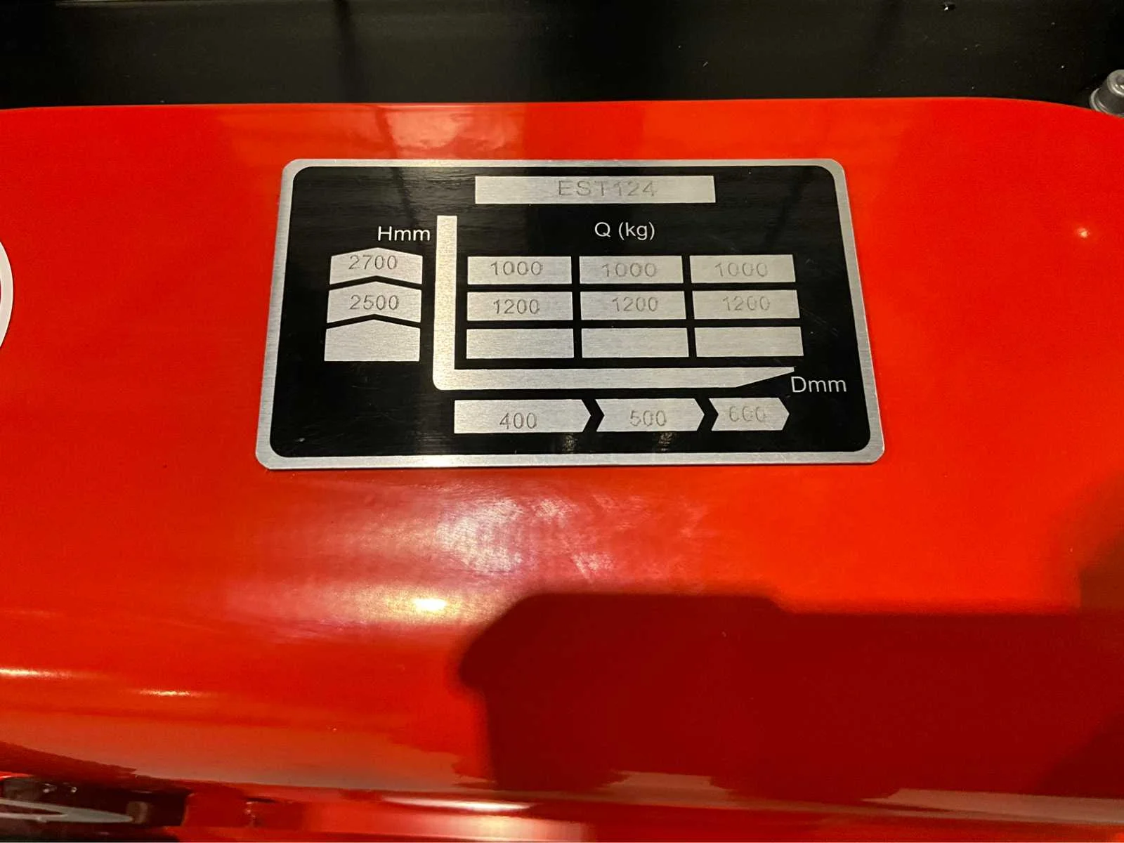 Ongebruikt , 2024 model , interne lader ingebouwd Nee Merk: EP Type: EST 124 2,7 meter Bouwjaar: 2025 Hefvermogen: 1200kg Hefhoogte: 2700mm Lepellengte: 1150mm Afgelezen urenstand: 1 Eigen gewicht: 462kg Totale afmeting L: 1720mm Totale afmeting Breedte: 800mm Totale afmeting Hoogte: 1910mm Accu lader: true